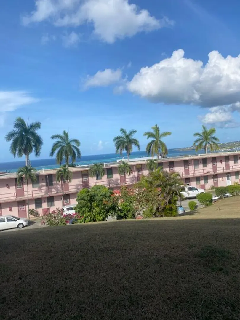 Bottom floor, 1bedroom, open floor plan condo in Bay Gardens. New window A/C Unit in bedroom with recessed ceilings and lighting. In demand water heater, new plumbing and appliances have been installed. Enjoy the breezes off the sea and views of Christiansted Harbour and Buck Island from your unit. This unit is located close to town, shopping, and restaurants. Gated community with onsite laundry facilities and pool.