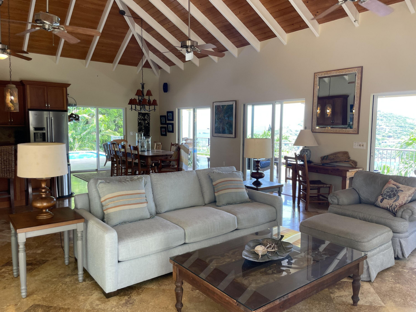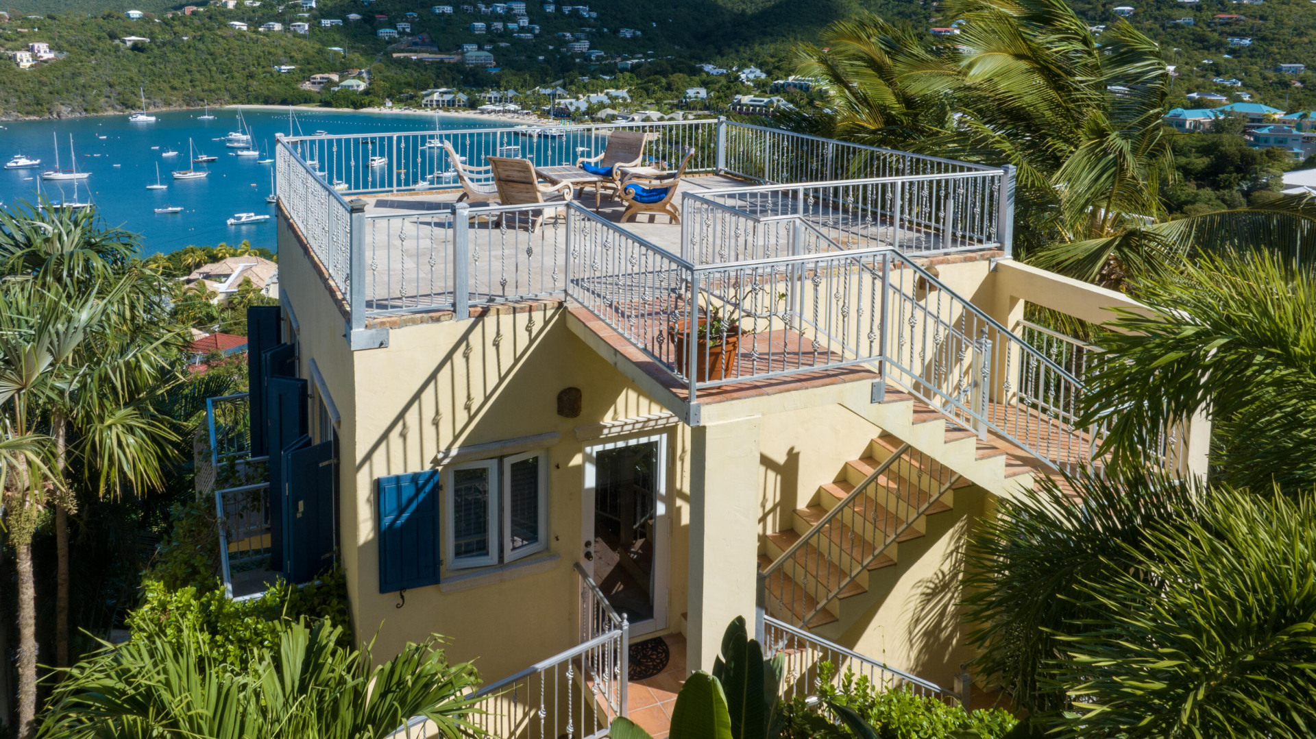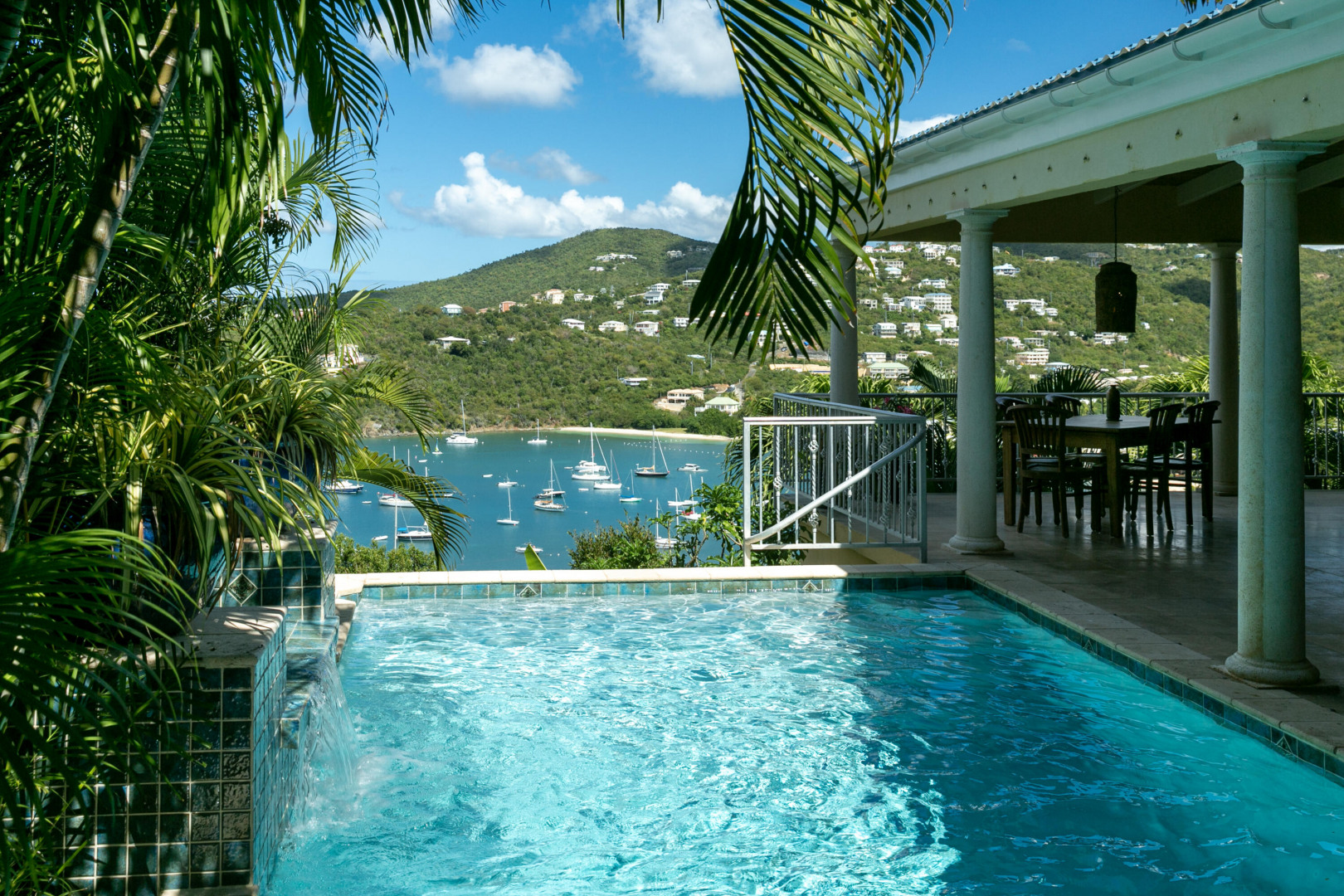 Perched above Great Cruz Bay with sweeping views to St. Thomas, Indigo Villa captures the essence of Caribbean elegance. This meticulously maintained retreat features an inviting pool, a spacious wrap-around veranda, and a stunning rooftop deck\u2014ideal for relaxing or hosting gatherings under the stars. Inside, the villa offers four generously sized bedrooms, a custom-designed kitchen, and seamless indoor-outdoor living. Boating enthusiasts will appreciate the proximity to the HOA dock to access a boat. Experience the tropical charm and luxury living at Indigo Villa.