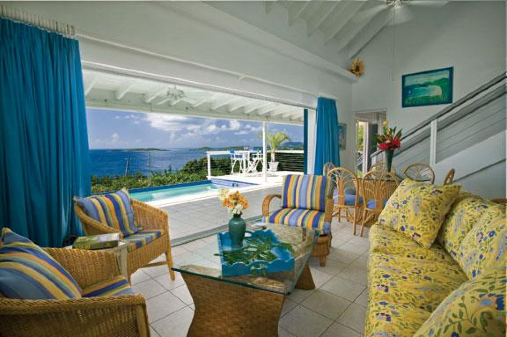 $100,000 price reduction on AMANI, owner is motivated, bring an offer. This charming villa w/cottage offers spectacular sunsets year round & exceptional 180 degree views from a hillside location on prestigious Maria Bluff in Great Cruz Bay. 3 colorful bdrms w/baths are located in the main building, w/delightful & private self-contained guest cottage w/covered veranda & spa set on far side of the property. Pocket sliders in great room of main allow enjoyment of outdoor living space on covered veranda. A very popular rental home w/many repeat guests and impressive rental history. Homeowner's deeded dinghy landing nearby, moor your boat in Great Cruz Bay. Buyer shall honor all rental reservations confirmed at time of Closing & pay tax stamps.