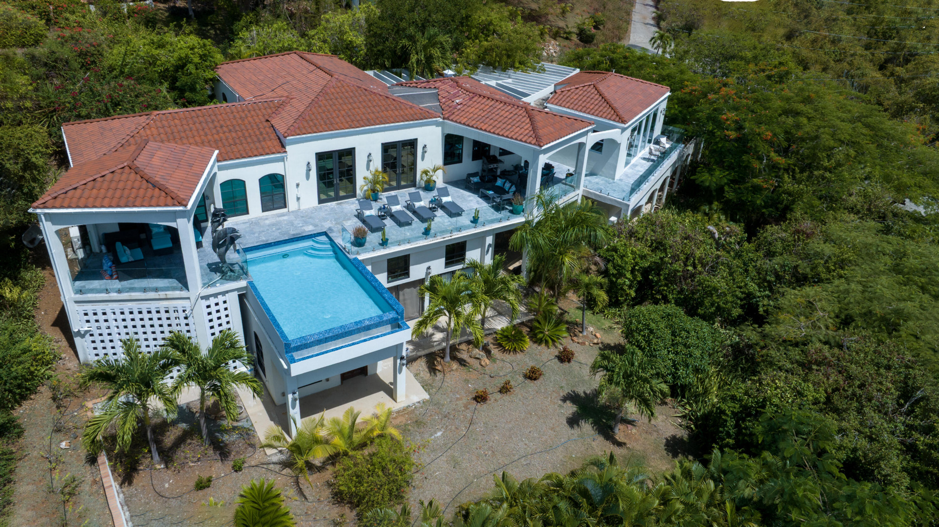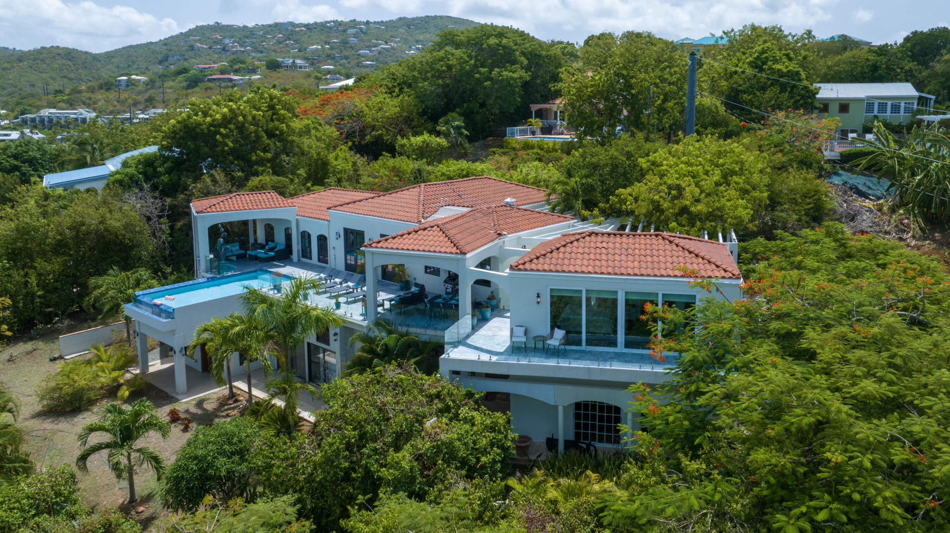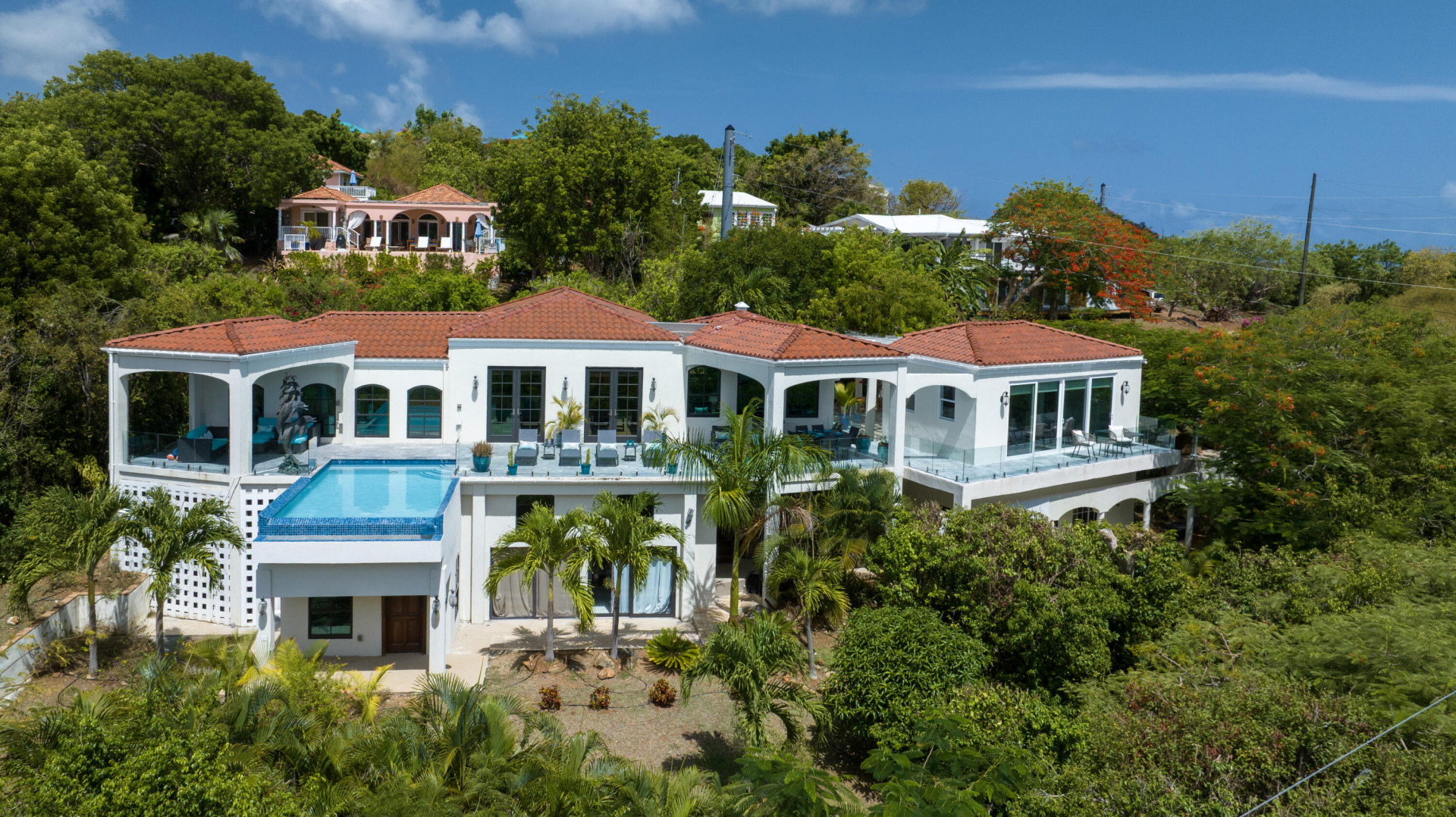 Perched on the ridge between Great Cruz Bay and Chocolate Hole, Blue Dolphin Villa is a stunning blend of modern elegance and Caribbean charm. Now expanded with over 1,000 sq ft of additional living space, the villa features a brand new primary suite, a private gym, and a playroom, enhancing both luxury and versatility. The pool deck, with its sleek glass railings, showcases sweeping views of Great Cruz Bay, while lush gardens, grand arches, and a covered pavilion create a serene outdoor retreat. Inside, the updated kitchen, charming stonework, and inviting bedrooms, make this home as comfortable as it is beautiful. With thoughtful upgrades and endless potential, Blue Dolphin Villa is a true island gem. SELLER FINANCING AVAILABLE