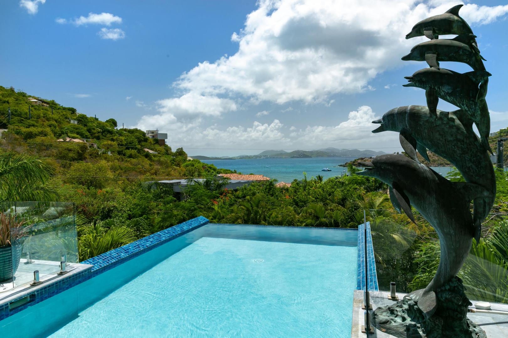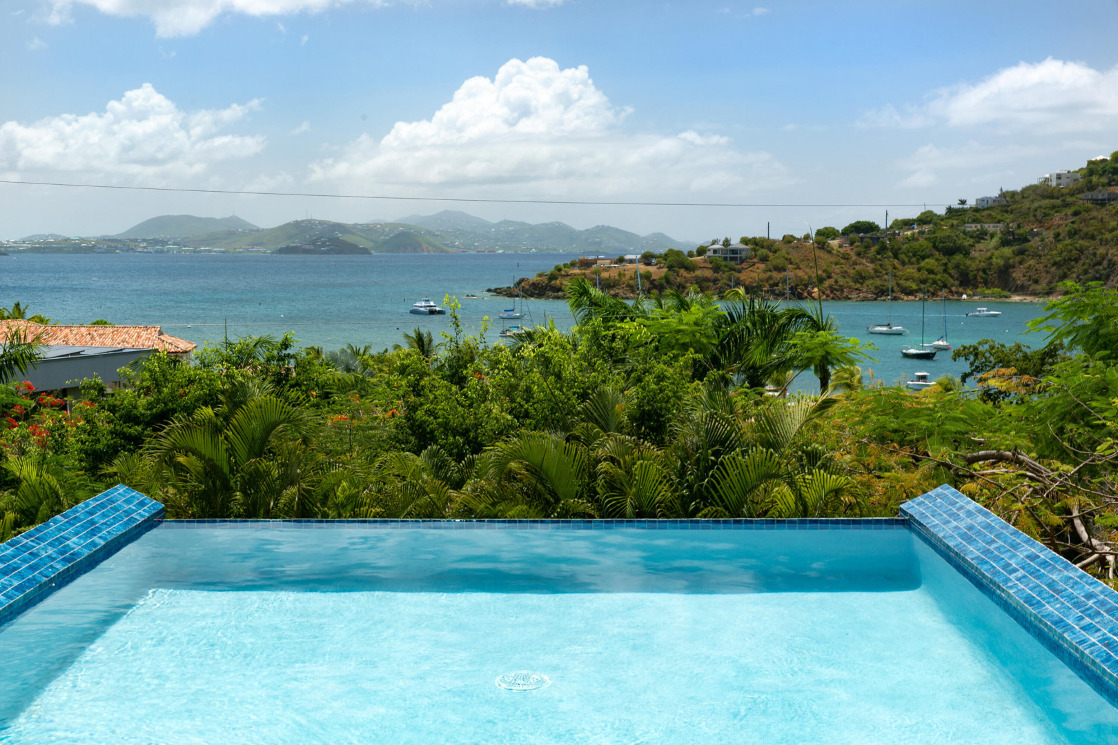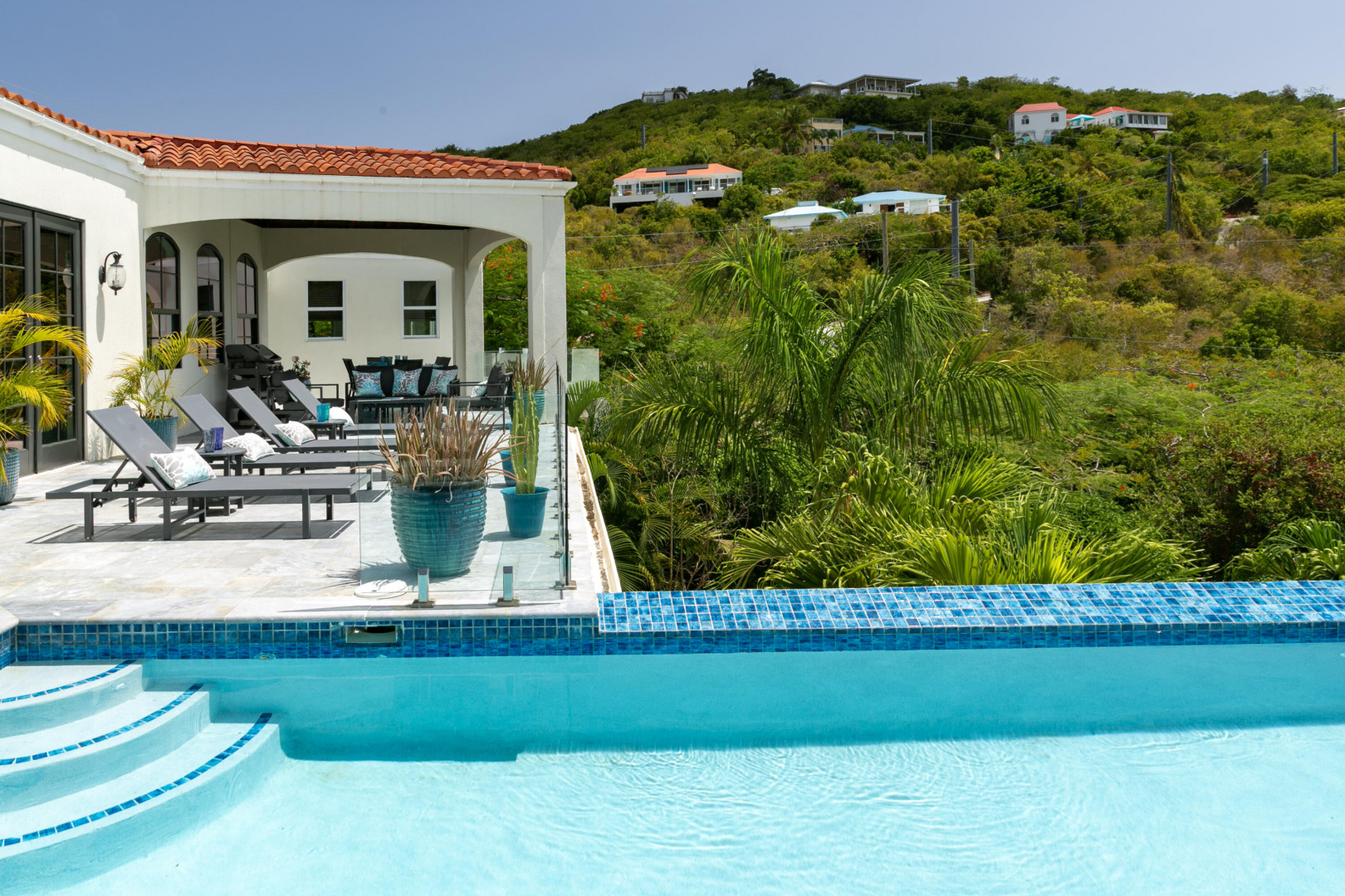 Perched on the ridge between Great Cruz Bay and Chocolate Hole, Blue Dolphin Villa is a stunning blend of modern elegance and Caribbean charm. Now expanded with over 1,000 sq ft of additional living space, the villa features a brand new primary suite, a private gym, and a playroom, enhancing both luxury and versatility. The pool deck, with its sleek glass railings, showcases sweeping views of Great Cruz Bay, while lush gardens, grand arches, and a covered pavilion create a serene outdoor retreat. Inside, the updated kitchen, charming stonework, and inviting bedrooms, make this home as comfortable as it is beautiful. With thoughtful upgrades and endless potential, Blue Dolphin Villa is a true island gem. SELLER FINANCING AVAILABLE