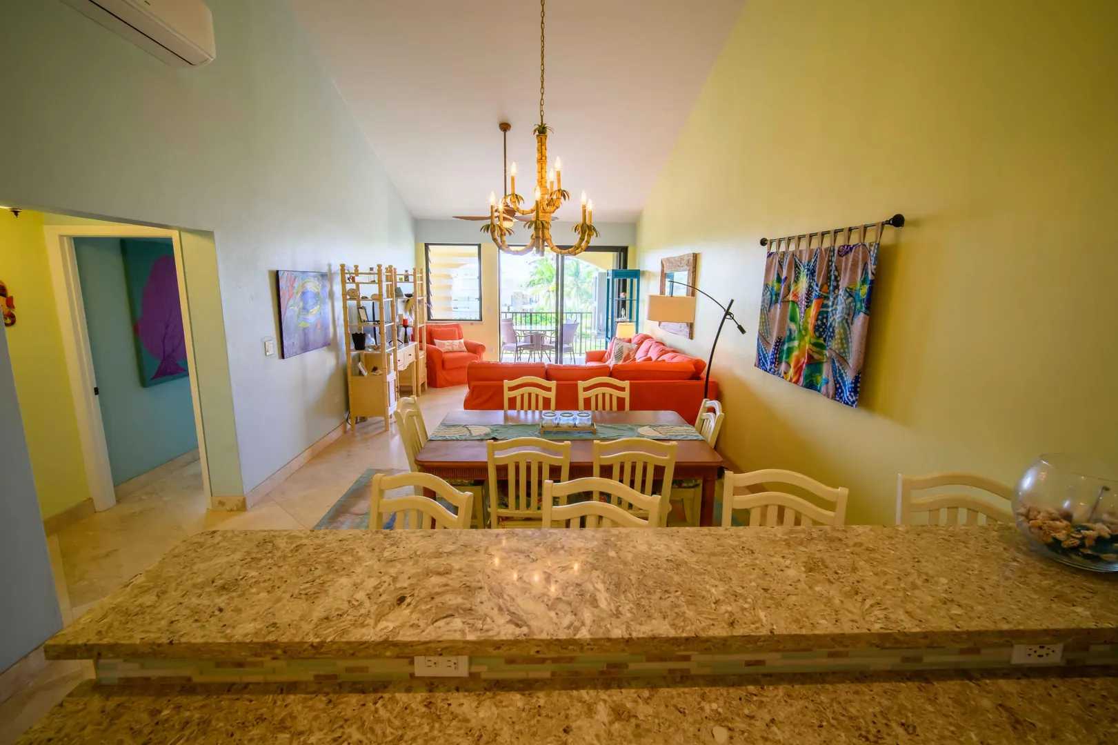 Welcome to your tropical sanctuary! Nestled in the heart of a serene, gated beachfront complex on St. Croix, this exquisite 2-bedroom, 2-bathroom condo offers 1250 sq ft of beautifully renovated living space. Perched on the third floor, this gem boasts breathtaking ocean views that can be savored from a large, airy gallery accessible from both the open-plan living room and the luxurious primary bedroom suite.Step inside and be greeted by a sense of tranquility as natural light floods through the expansive windows, illuminating the modern, high-end finishes throughout. The spacious living area seamlessly flows into the dining and kitchen spaces, perfect for entertaining or simply enjoying the gentle sea breeze.