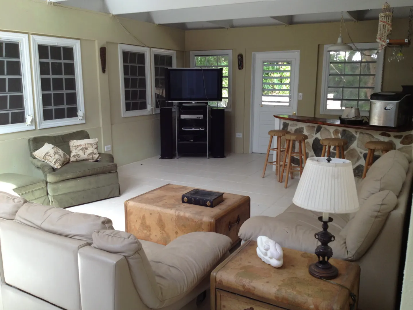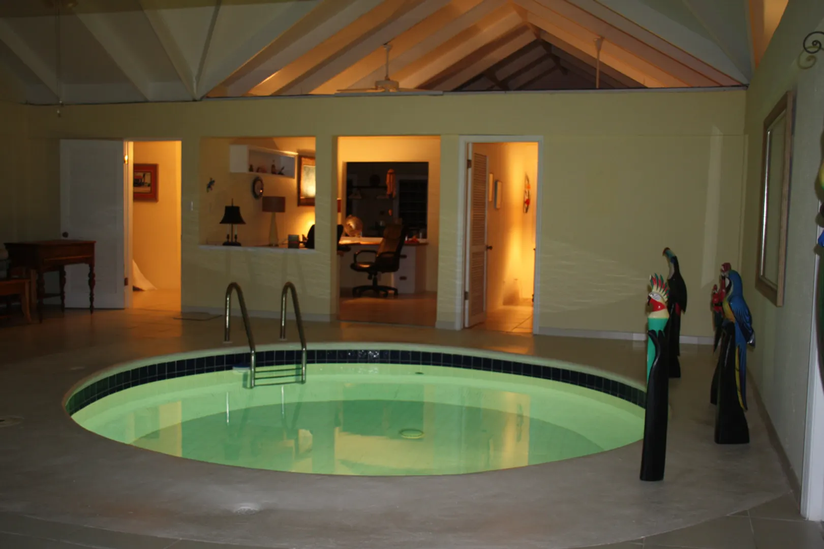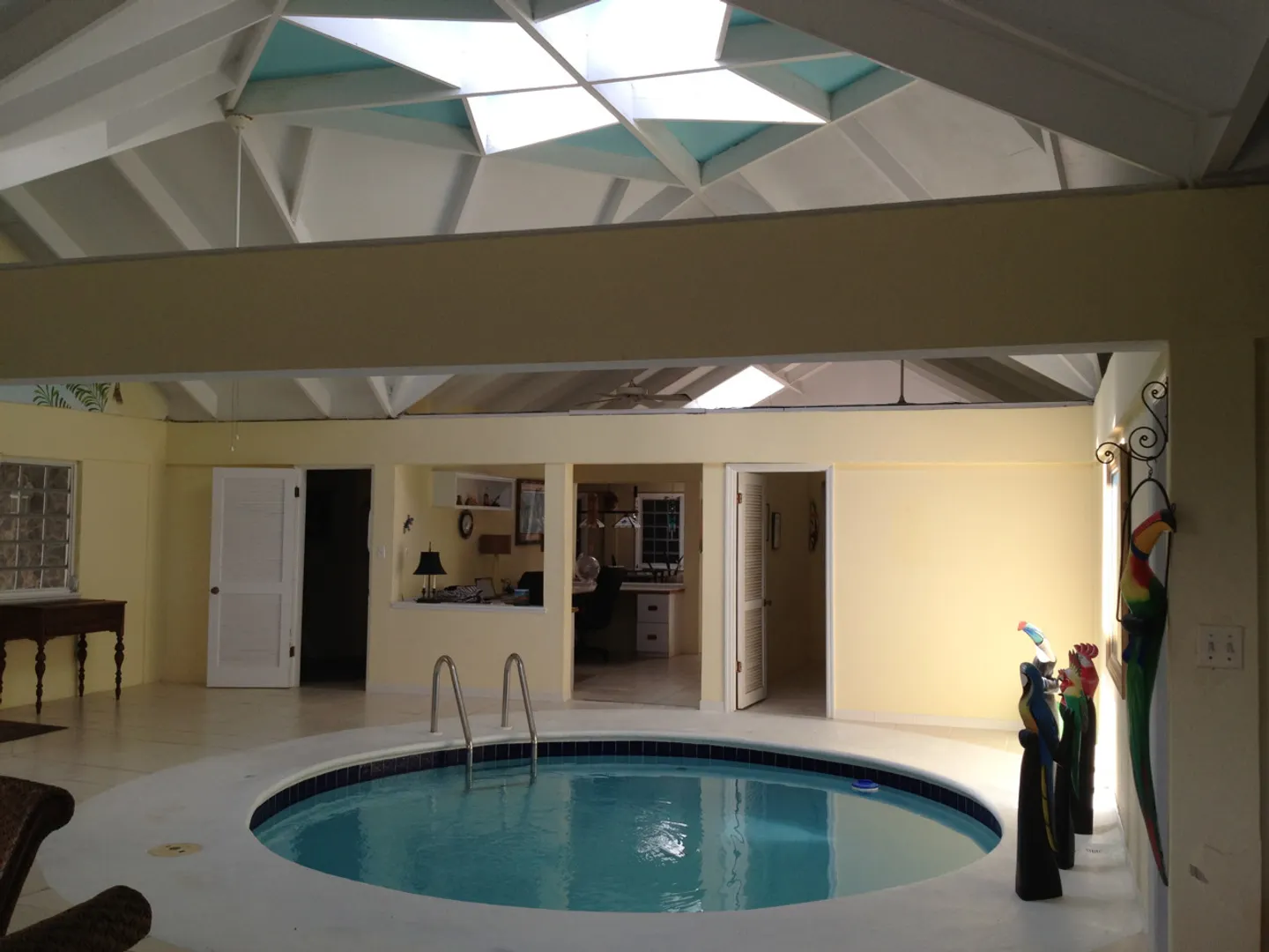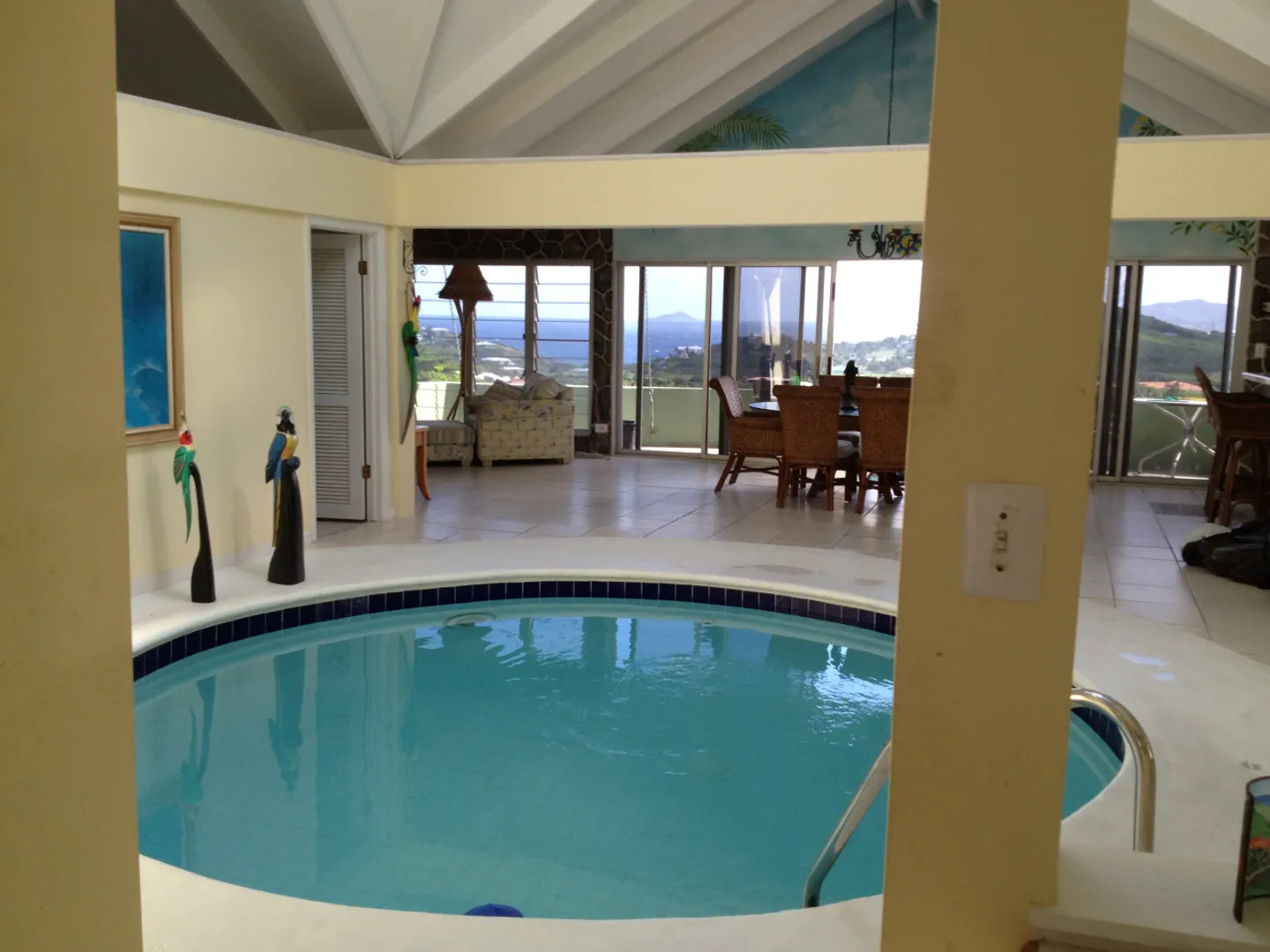 This very unique and spacious home is a delight to the senses! Huge open floor plan, ''dual'' office, pool in center of house, awesome views, pool table, mahogany bar in ''entertainment room,'' 3 bedrooms, each with private full bath. Has large back patio and nice gallery in front. Not well suited for families with small children due to indoor pool. Owner is licensed VI RE agent