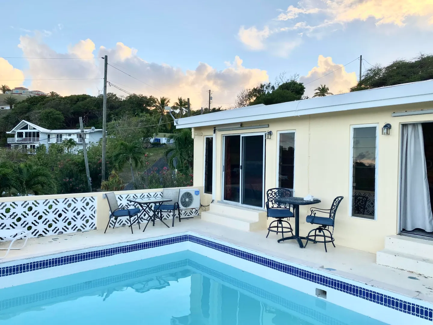 Fully furnished 1 Bedroom 1 Bath cottage located in Judith's Fancy with it's own private pool overlooking the Caribbean Sea. The spacious cottage features Split A/C units in the living area and bedroom. Washer and Dryer are located downstairs in the laundry room. The cottage has back up generator. Wi-Fi and Cable TV included. Tenant is responsible for: Electricity, Gas, Water, and swimming pool maintenance.