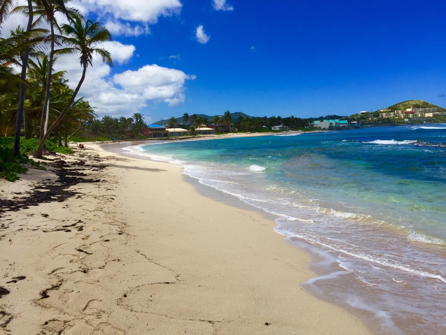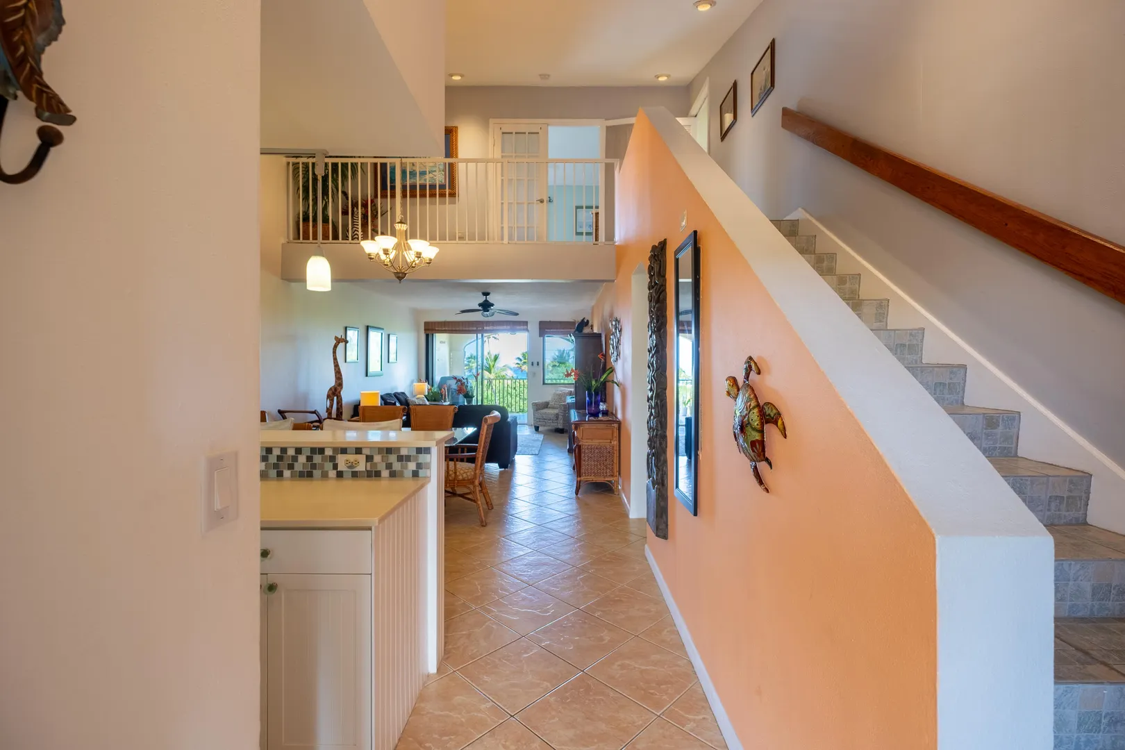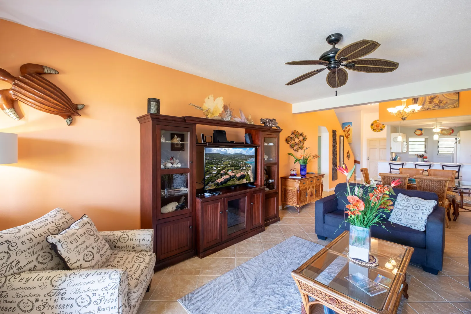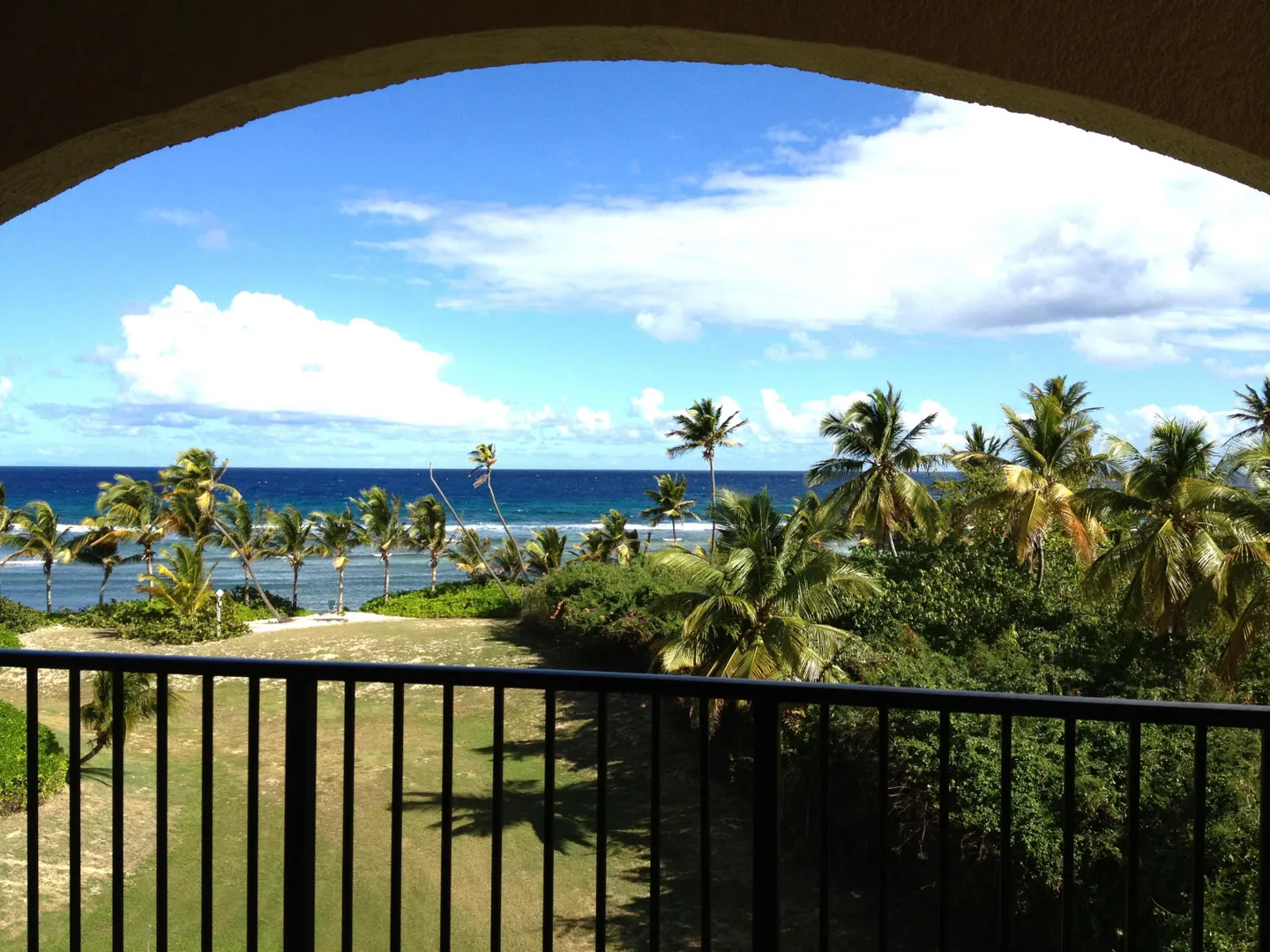 A fantastic top floor penthouse at beautiful Pelican Cove is now available! There are few 3-bedroom condos on St Croix, and this gem is right on the beach, surrounded by tropical landscaping and coconut palms. The complex has a gorgeous pool, gated entry, and peaceful surroundings on a lovely beach. It's been a popular vacation rental due to its size, location, and furnishings. Cathedral ceilings, big porches, A/C in every room, open-concept kitchen with nice breakfast bar, generous bedrooms, large hall bath, plus a convenient half bath are some of its features. The fabulous main bedroom on the top floor has a second large private porch overlooking the Caribbean Sea, and a spacious marble bath with a view of the sea too! This unit has a rare, ample laundry room with a big storage area.
