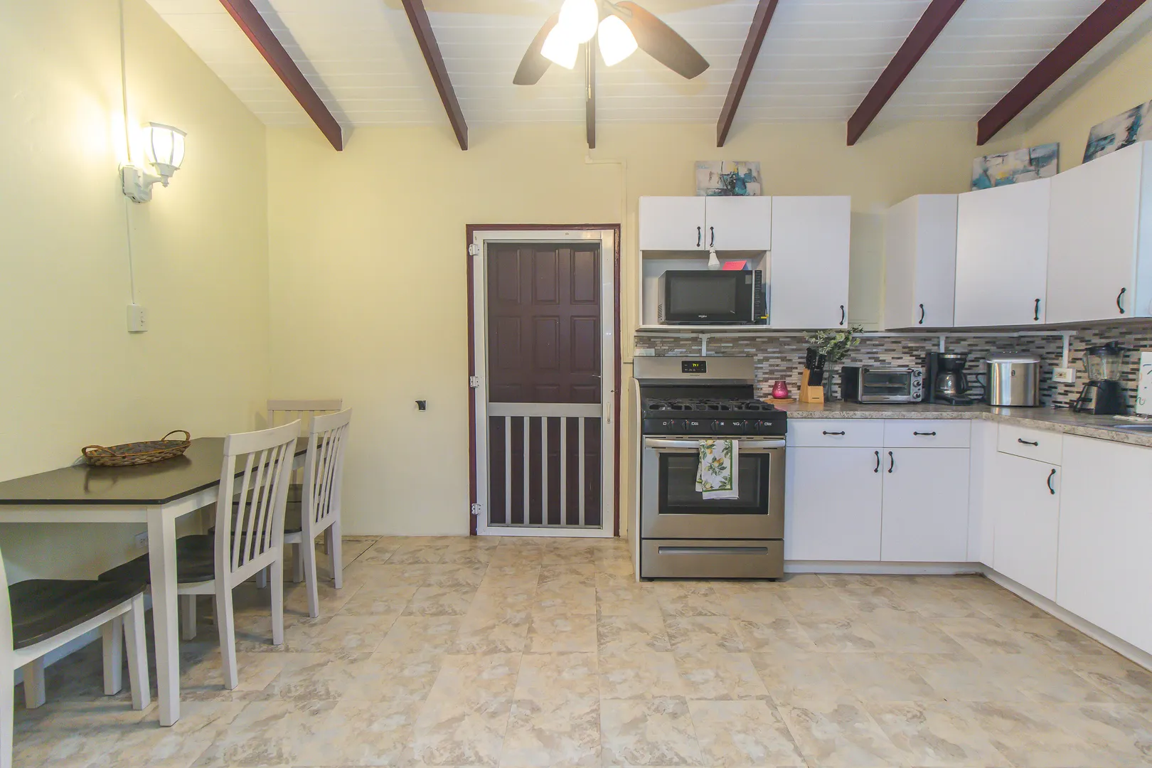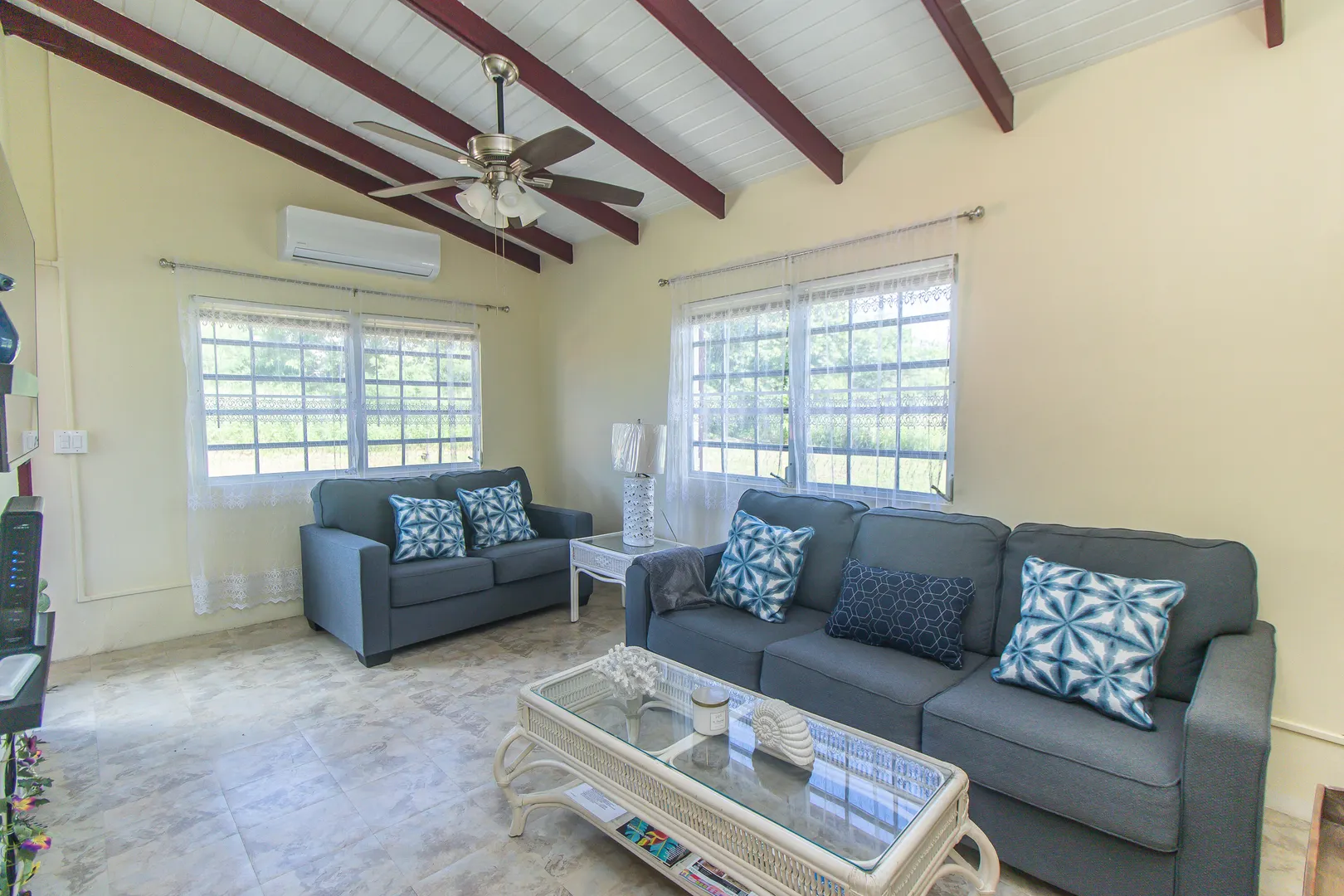 Wonderful 3 bedroom, 1 bath home east of Buccaneer. The large yard is perfect for a small dog. This house comes fully furnished, AC throughout, and washer/dryer. Tenant pays WAPA and internet.