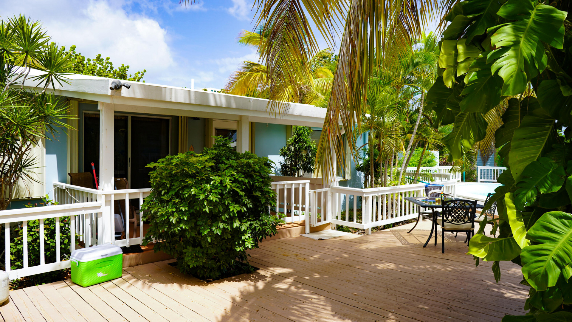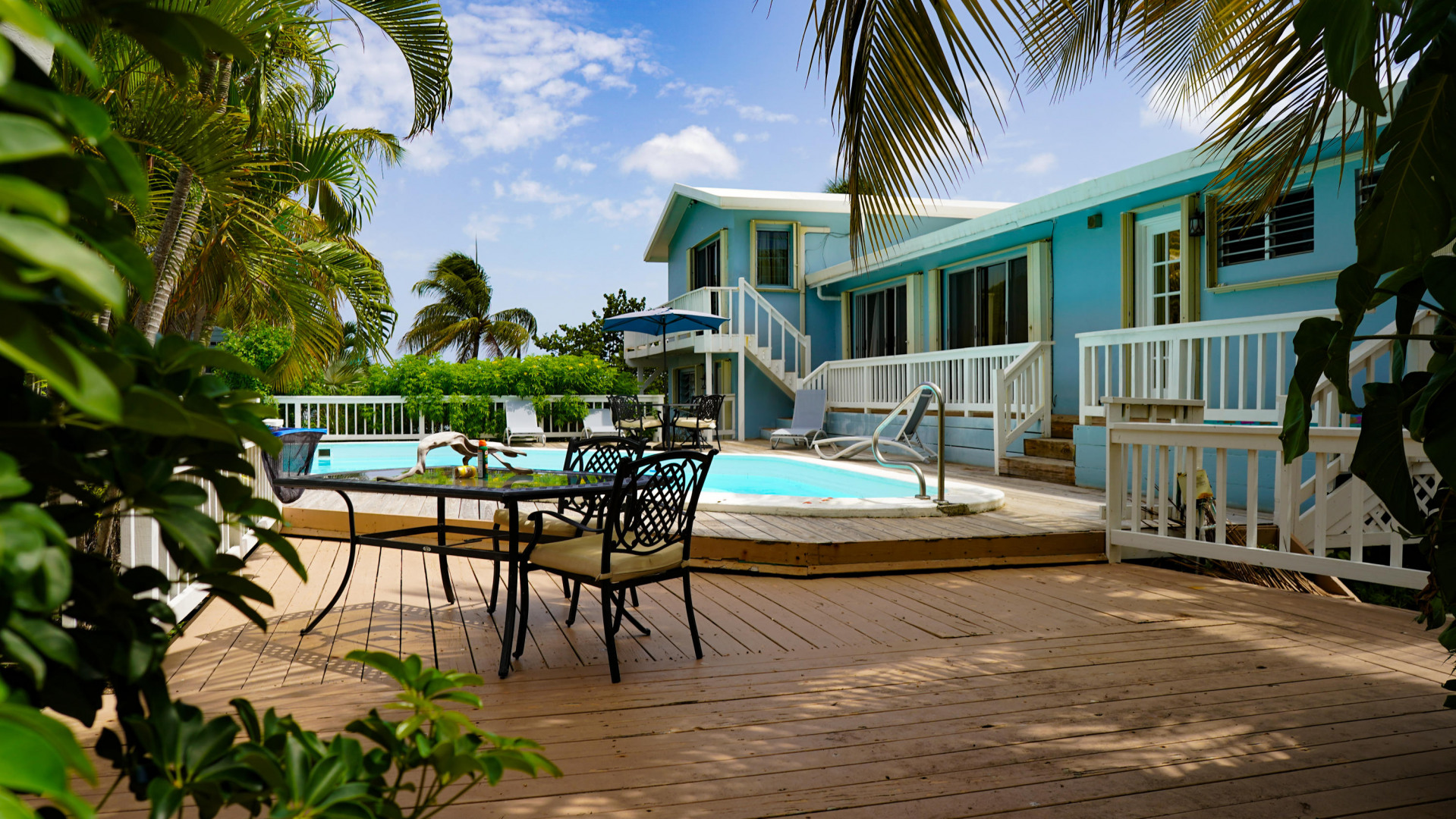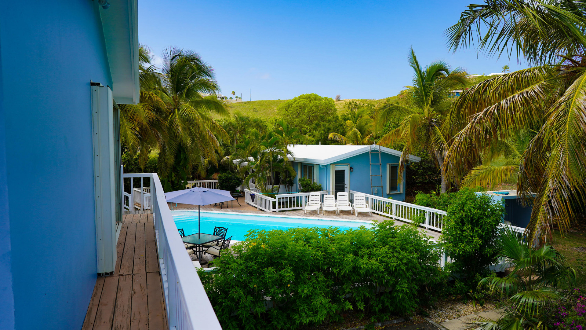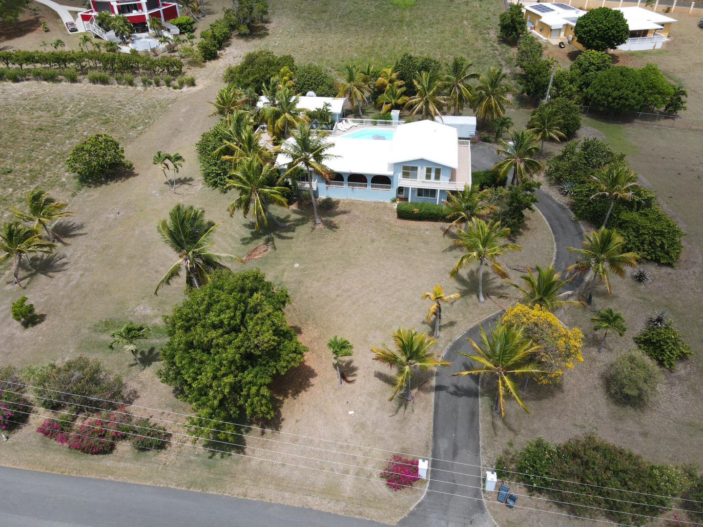 This beautiful 3 bedroom, 3.5 bath Southgate home gorgeously landscaped and surrounded by palm, seagrape and mango trees, is the perfect island home. The driveway is lined with palm trees. Close to 2,300 square feet of outdoor space including a multi layered pool deck, decks circling the bedrooms, dining room and a large patio off the living room. One bedroom, one bath apartment is perfect for rental income or as an in-law suite. One car garage. Views east of the Ms. Bea Road sugar mill and south of Southgate Farms, 7 Hills and All for the Better. Lots of storage space including a shed in back yard.