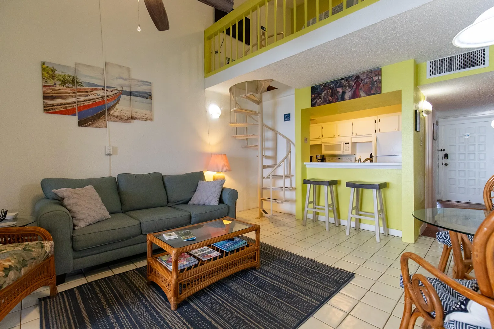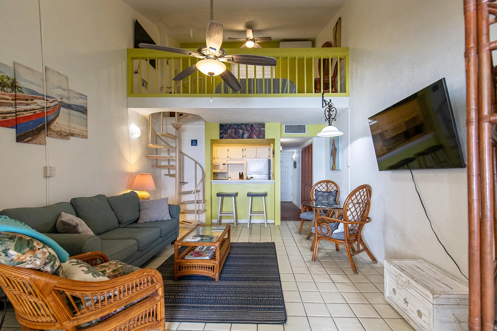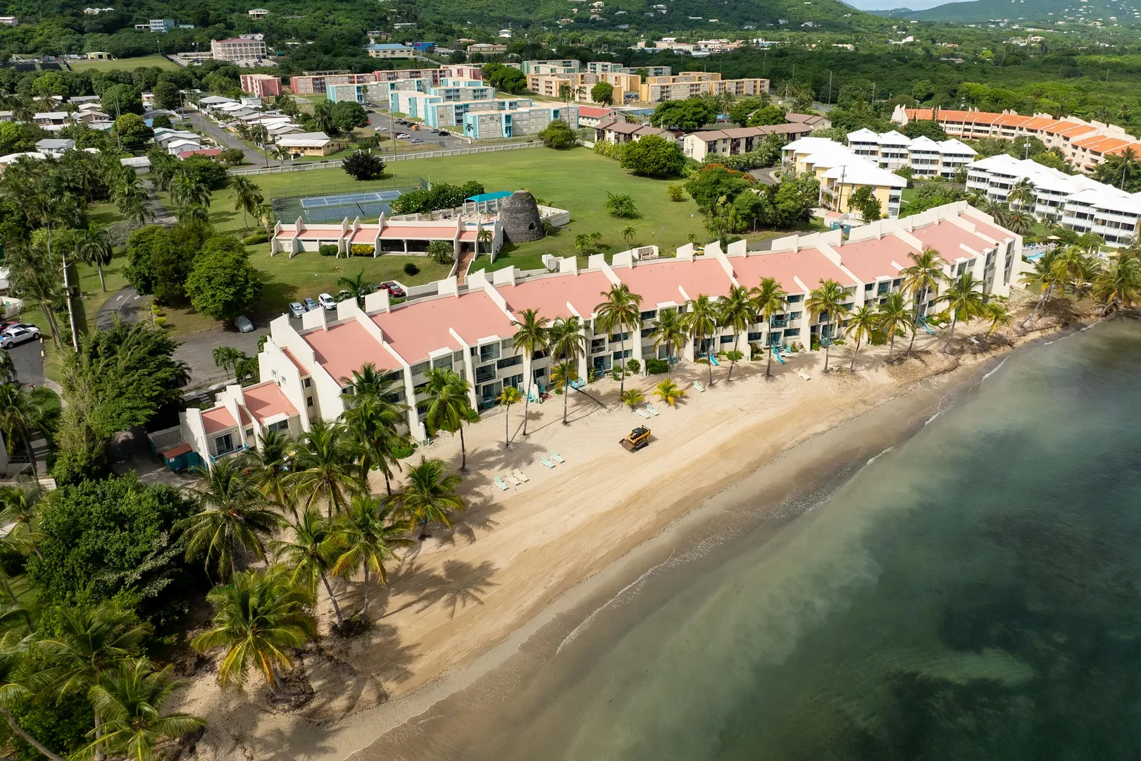 Wake up to the ocean at this loft-style beachfront condo at Sugar Beach. From the covered deck, soak in views of the sand, sea, Buck Island and beyond. The open living area is designed for easy island living with counter seating, dining space and relaxed lounge seating, while the loft bedroom offers a quiet retreat. A/C, washer/dryer and updated furnishings make it move-in ready or rental-ready. Step outside to swim at the beach or the resort-style pool, play tennis or explore the grounds with historic ruins. Sugar Beach is a well-managed waterfront community, ideal for a personal hideaway or rental property with authentic Caribbean charm.