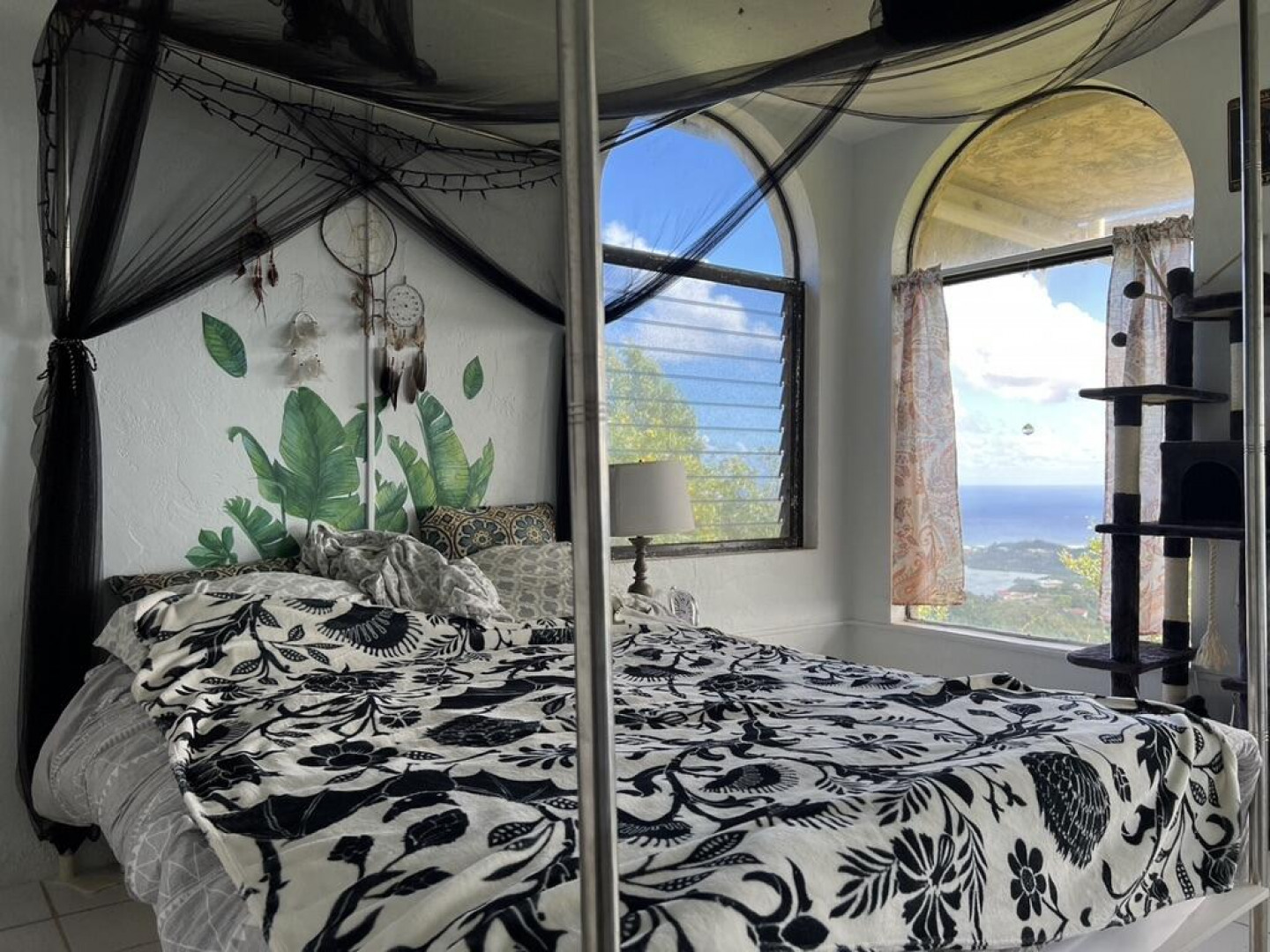 INCREDIBLE SWEEPING VIEW! The vast panoramic view from north shore to south shore at 820' above sea level will take your breath away & make you feel that you are at the very top of the island! Upstairs is 2/2 main house, with 1/1 apartment downstairs. There is a huge pool, large pool deck with newly built gazebo for lounging, & even a garage. With views of so much of St. Croix, you will be mesmerized by the ever changing scene. The breeze is so constant that there is no need for AC! TV is currently streamed & projected onto a 4.5' x 7.5' roll-down screen in the great room. The downstairs 1/1 apartment is currently rented at $2,000 per month. with separate parking & entrance. The pool has recently been resealed & painted, new tile border installed, & hydrostatic valves replaced.