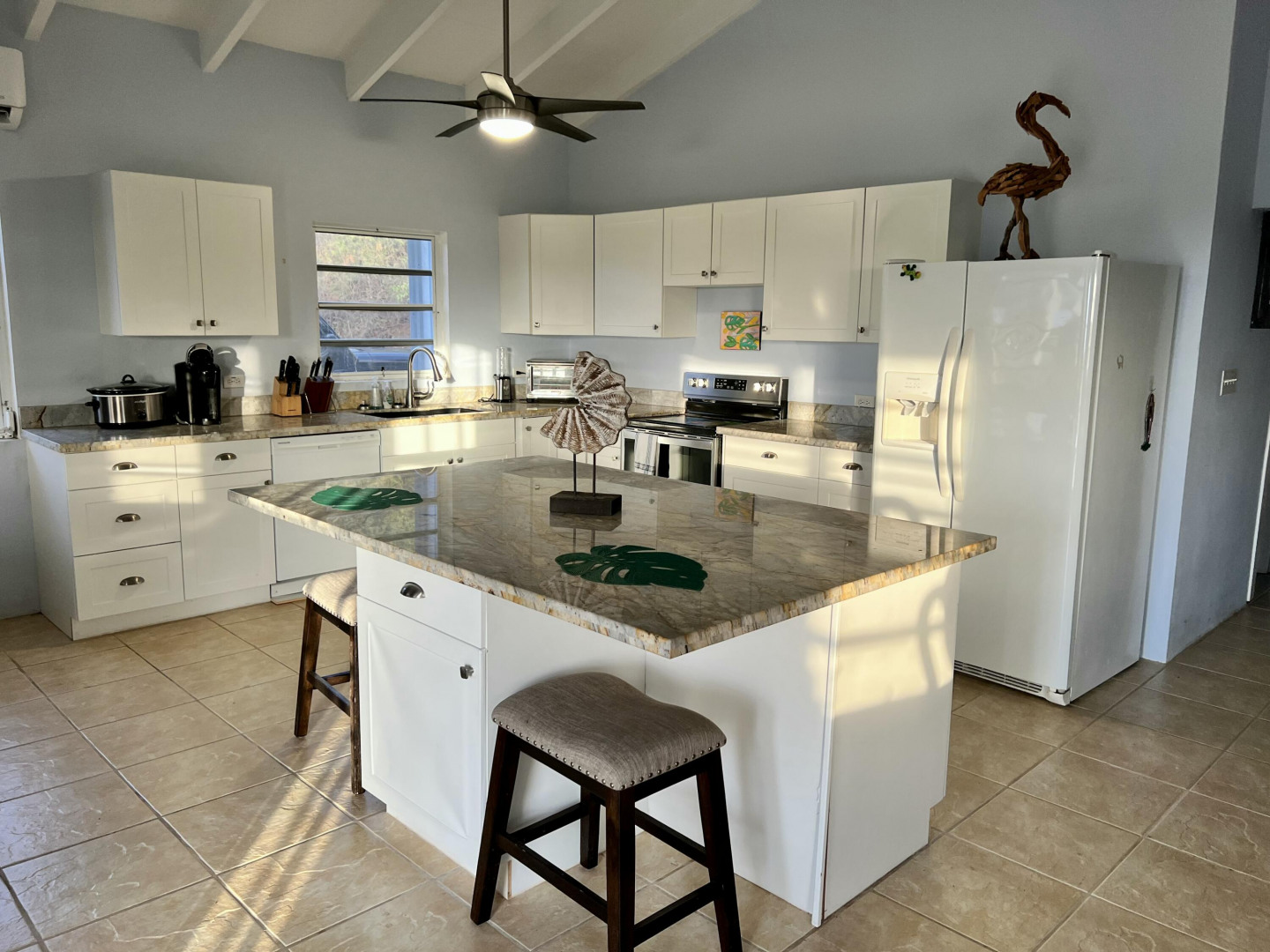 Modern 2BD/1BA rental in Cotton Valley with wide ocean views and a partial Buck Island glimpse. Fully furnished with renovated interiors, granite kitchen, and large island. Enjoy split ACs, solar with WAPA backup, and Starlink Wi-Fi. Covered porch with sea breeze is perfect for relaxing. Bedrooms are spacious and comfortable. Convenient East End location near beaches, hiking, and Duggan's Reef. Pets considered. 6-month minimum lease. Property is owned by a licensed USVI real estate agent.Welcome to 337-A Cotton Valleya thoughtfully renovated and fully furnished 2-bedroom, 1-bathroom hillside home nestled in the heart of St. Croix's sought-after East End.