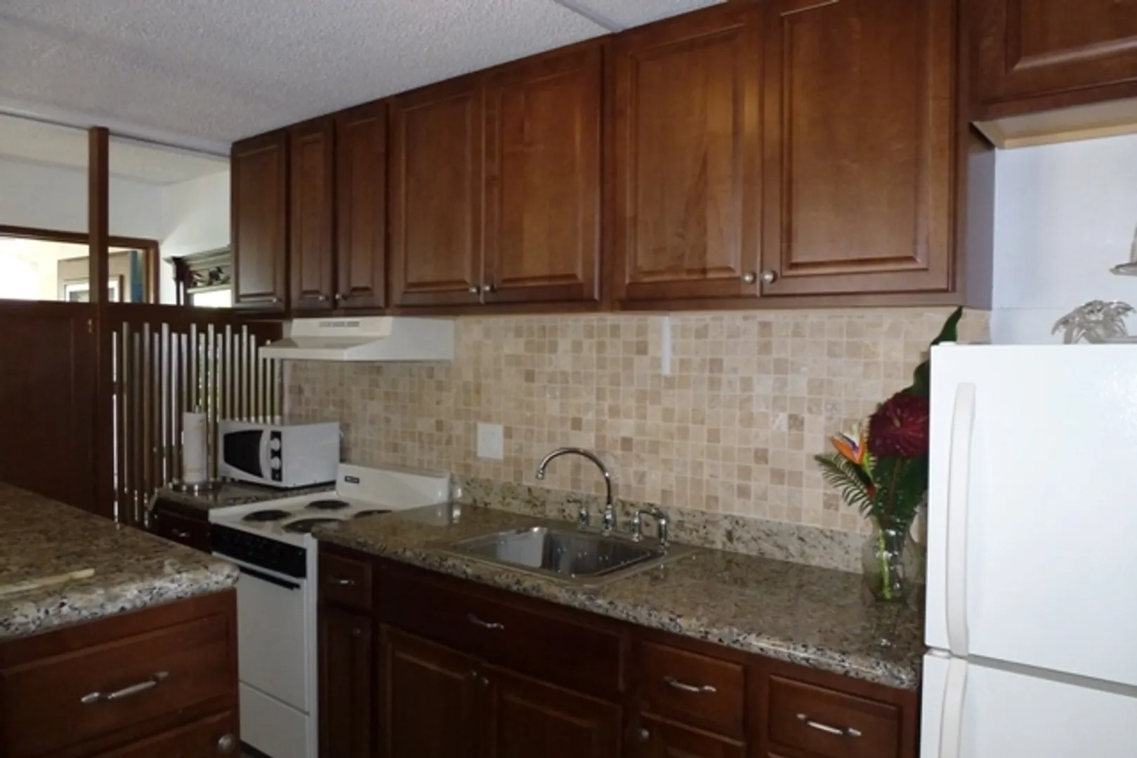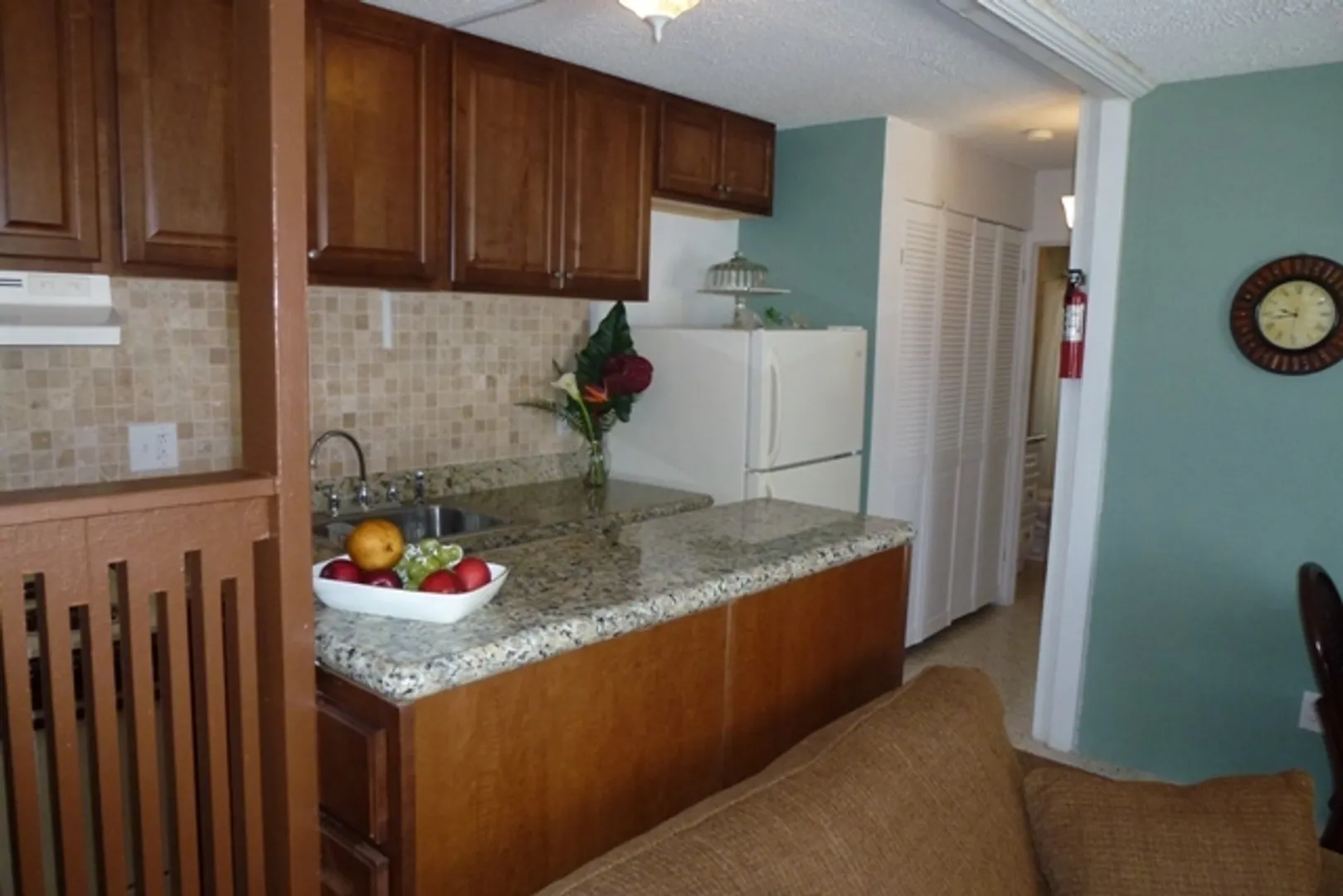 Enjoy natural cross ventilation & natural light in the master bedroom and living room from this end unit with granite countertops, new light fixtures, new appliances includes instant hot water heater, completely remodeled bathroom. New cabinets, Tavertine backsplash. Includes Buck Island view from second floor. Sold unfurnished. Show & Sell! Pool, Security Gate, Great Location!