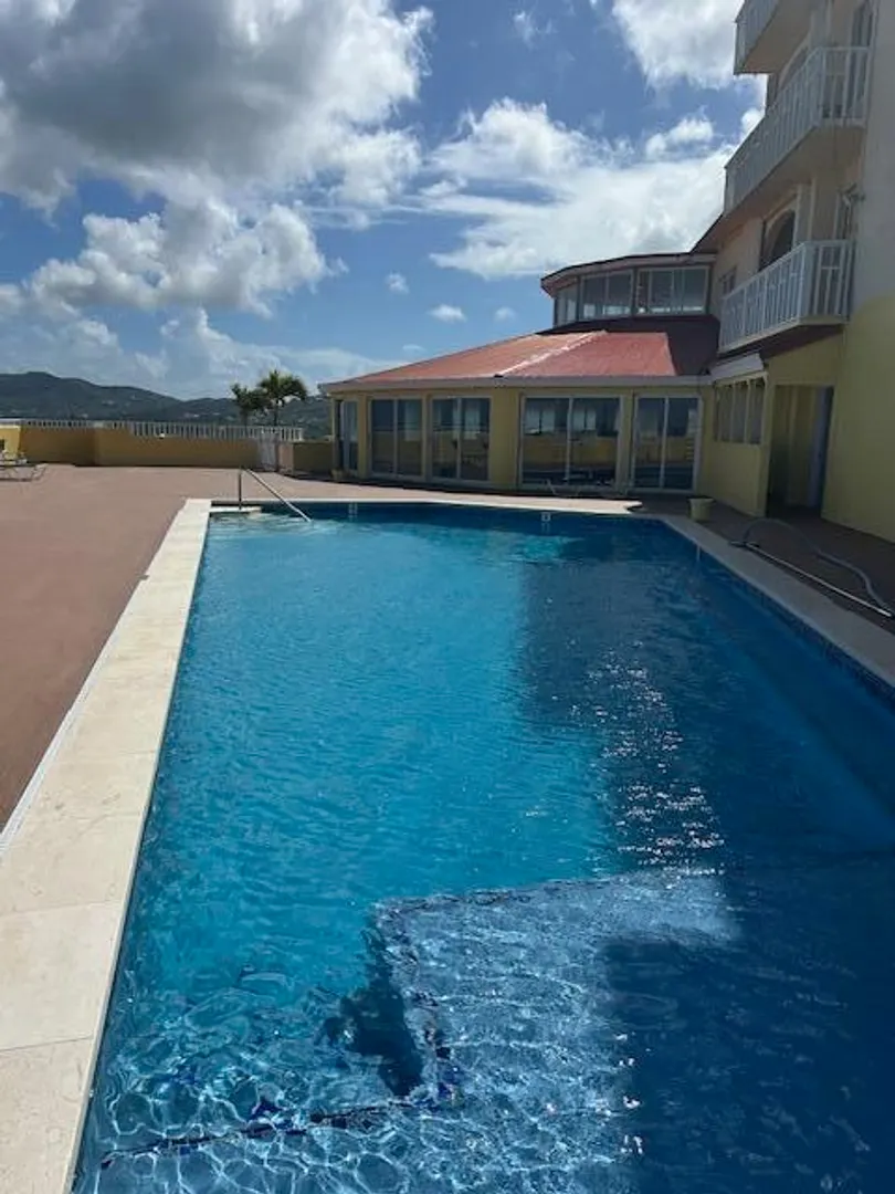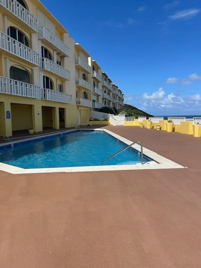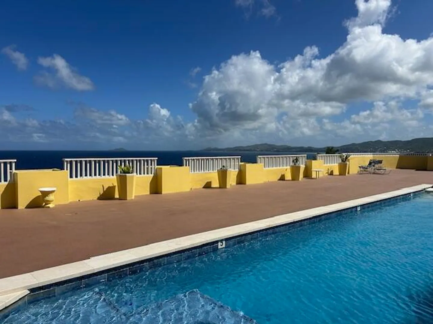 Create your own heaven with this outstanding end unit with gorgeous views of St.Thomas and St.John, and even Tortola on a clear day. Buck Island, town, and maybe the whales swimming by are yours to enjoy! This upper floor end unit offers maximum privacy, has stunning views of rock formations and cliffs, as well as a dramatic sea view without all of the Salt Spray. All appliances are in good shape and the ac in the bedroom is a real plus. There is ample storage as well as added cabinetry for all of your treasures. St.C is conveniently located to shopping, beaches, restaurants, and town. It is an extremely well maintained condominium with lush grounds and a stunning pool overlooking the sea and beyond. Come be a part of this close knit group of wonderful neighbors .