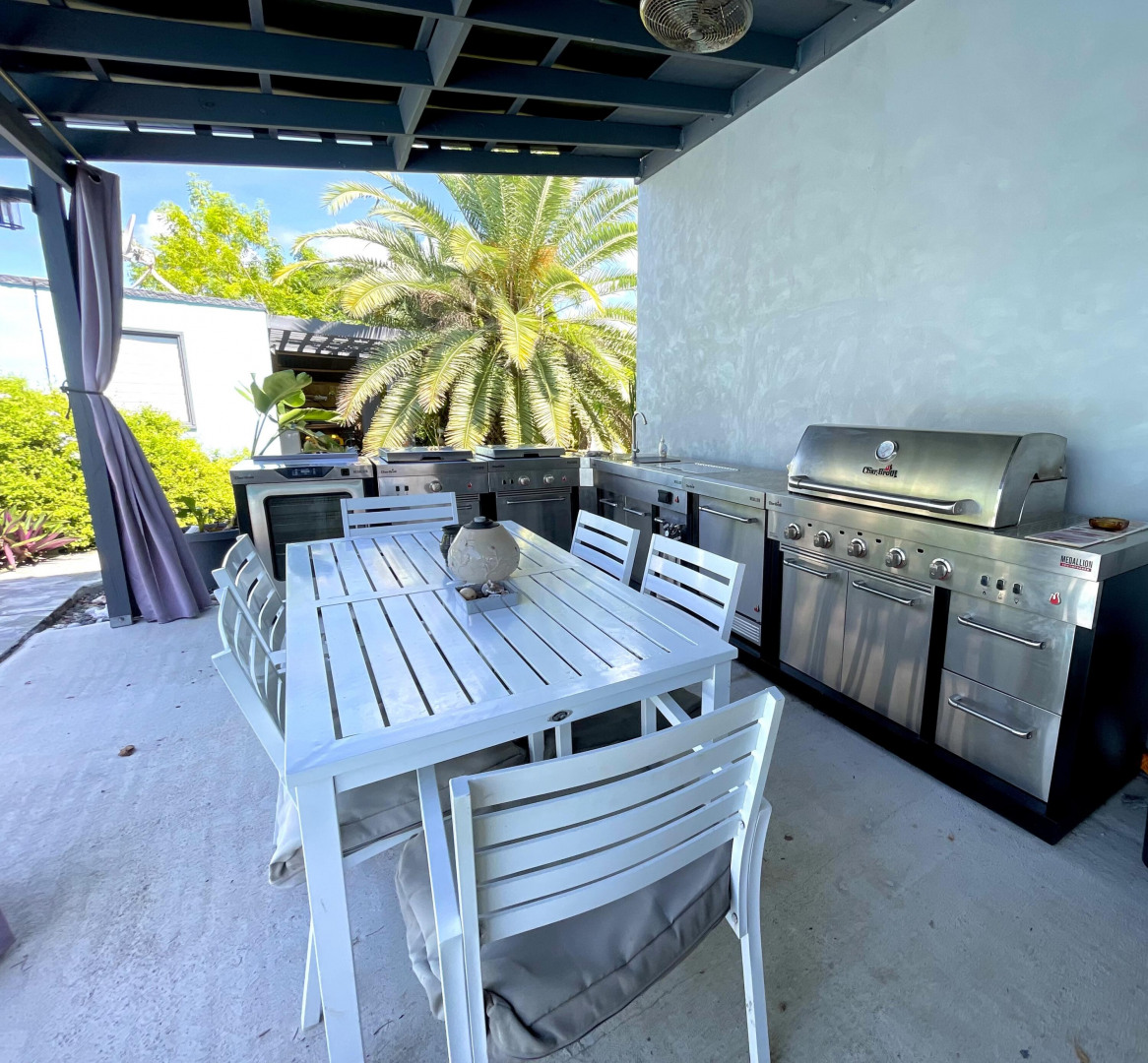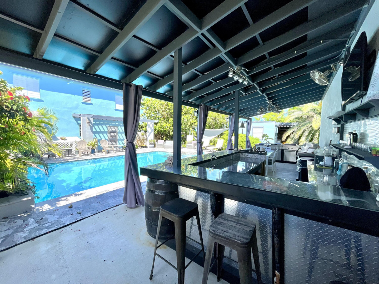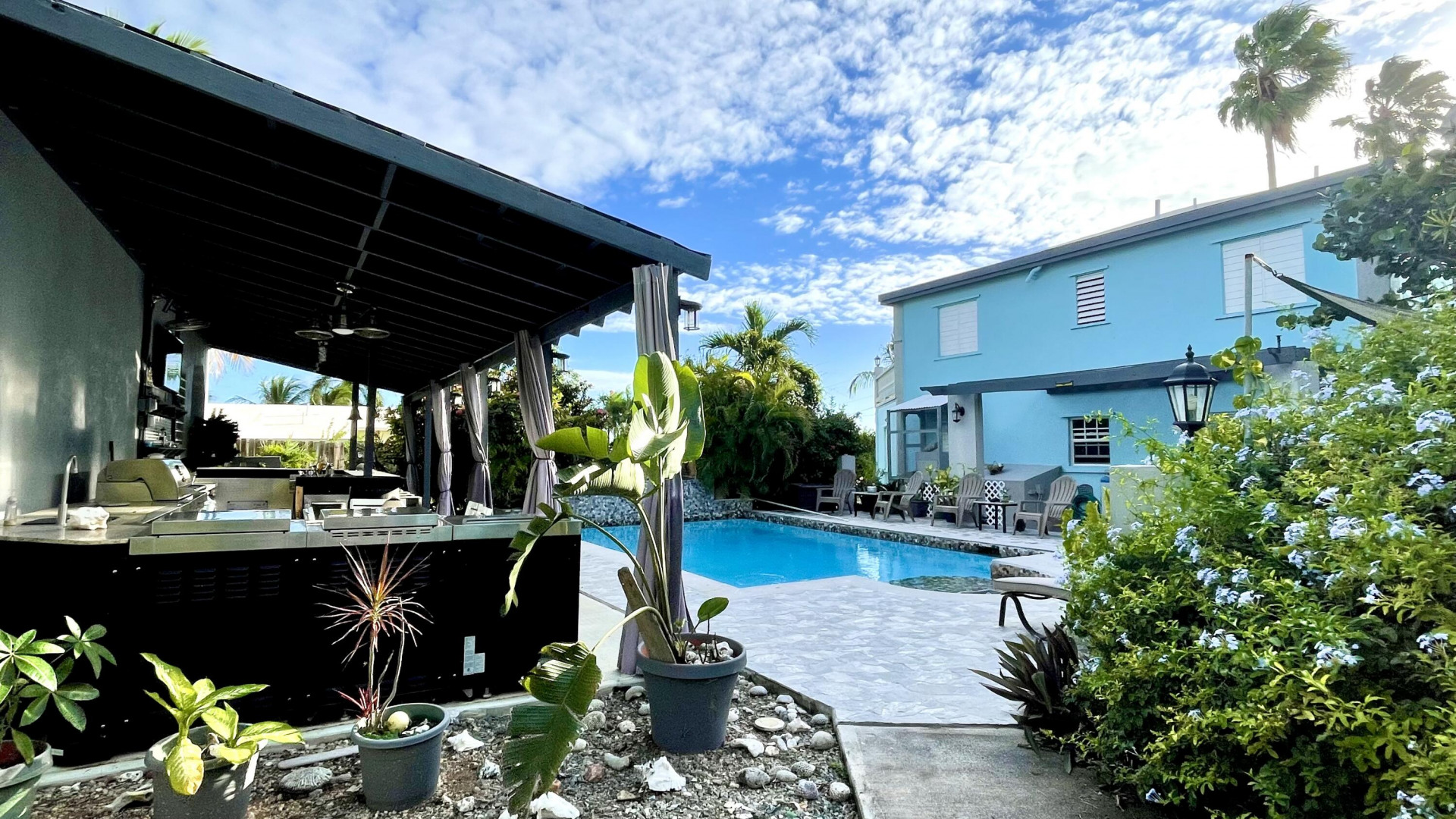 Sea view, gated, multi-unit estate minutes walk to Breids Bay in this gated beachside neighborhood. Resort-style, large, sparkling blue pool, soothing koi pond, outdoor kitchen & bar (griddle, stovetop, grill, fridge, micah granite countertop, outdoor TV, smoker, restaurant-style bar cabinet, dining table and an amazing bar top perfect for hosting). Two-level main building features large living room, open concept kitchen, laundry room (washer/dryer included), guest room & bath downstairs, office, 3BR/1BA upstairs & 2 decks to enjoy the stunning sea view. Across the pool is a fully furnished 1BR/1BA apartment with kitchenette, A/C, private driveway & private patio. Includes detached accessory building with outdoor shower & latrine installed. Minutes to sparkling blue beaches & stores.