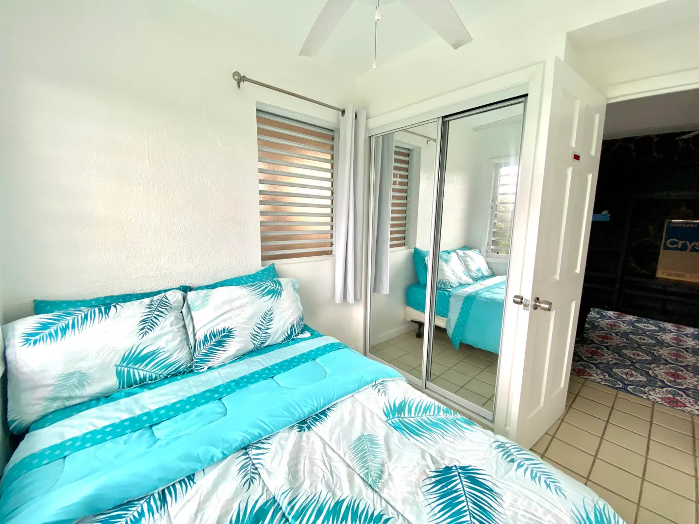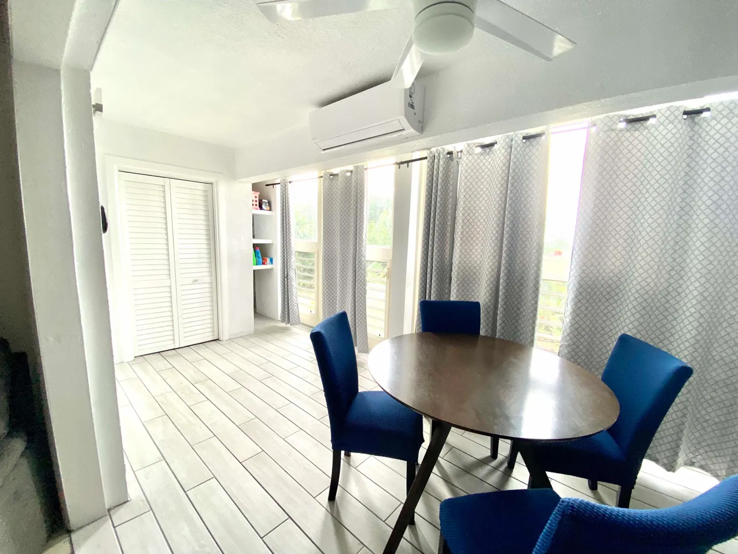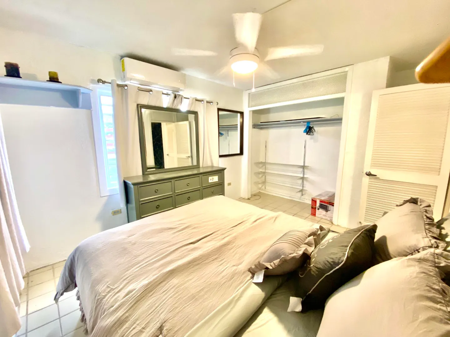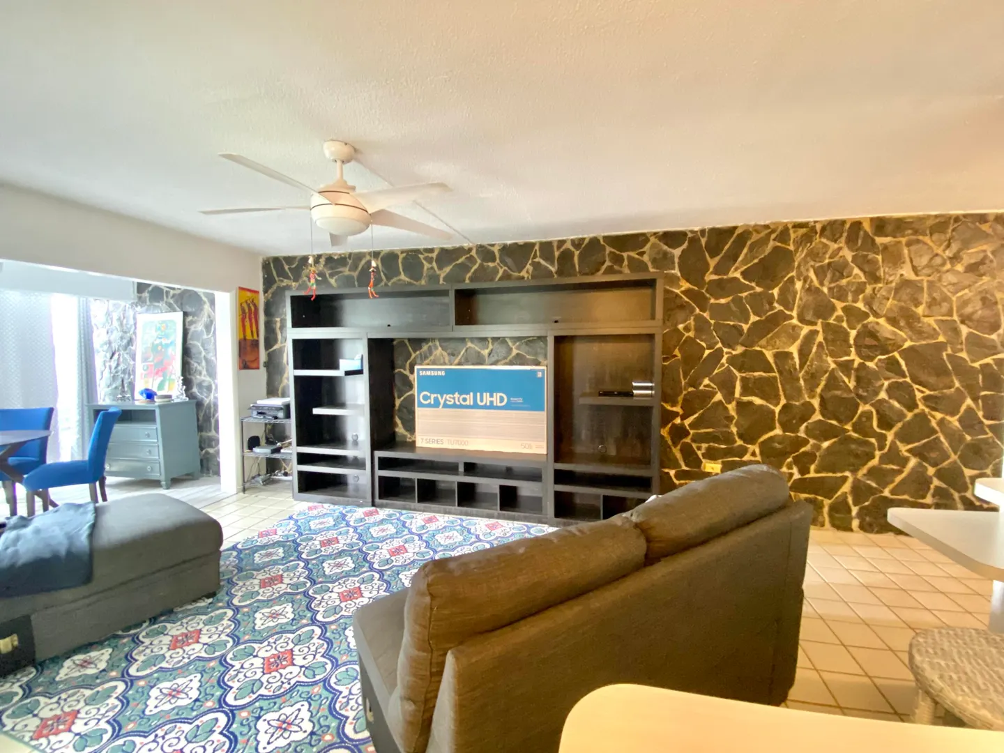 Everything is NEW! This beautifully redone unit now has an additional bedroom, and closed in patio area with in-unit laundry. It's very spacious and hip! Rock wall adds character, and small kitchen is has all new appliances and a very modern feel.Just steps away from the pool, and a sea view from the back yard too! Condo fees are lowest on island at only $250 per month. No insurance - but concrete construction, including a concrete roof. Must be a cash purchase. Water billed at $.15 a gallon. Up to 2 pets OK..
