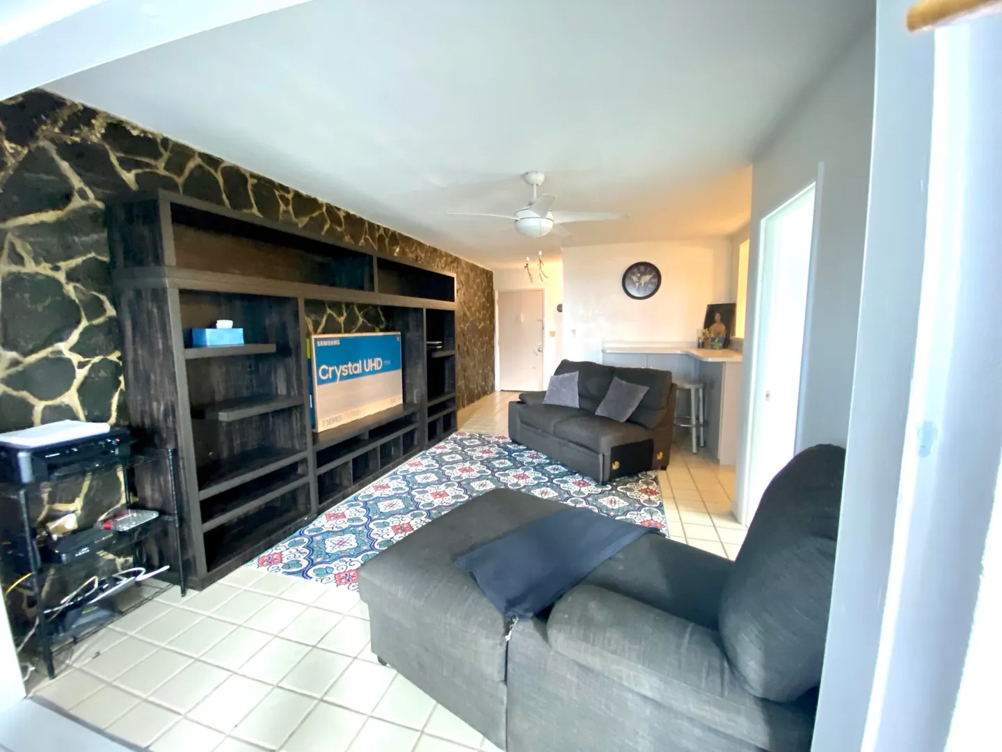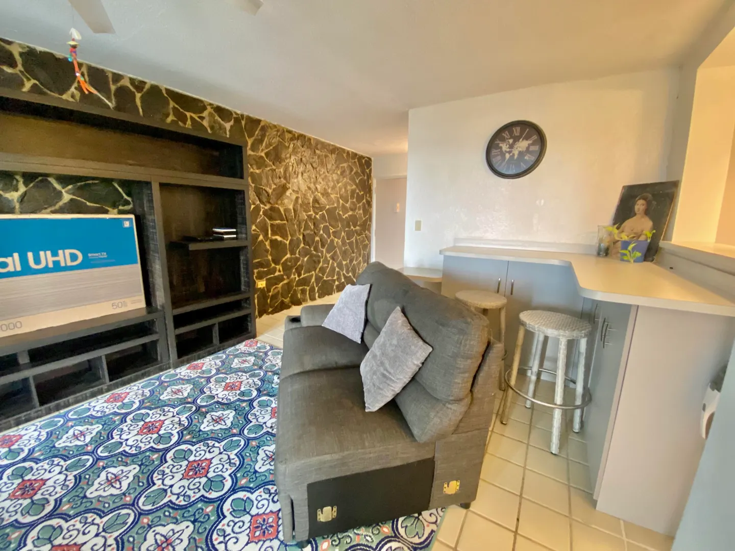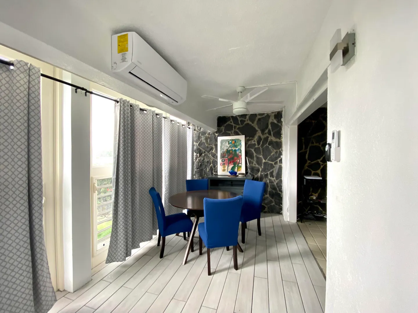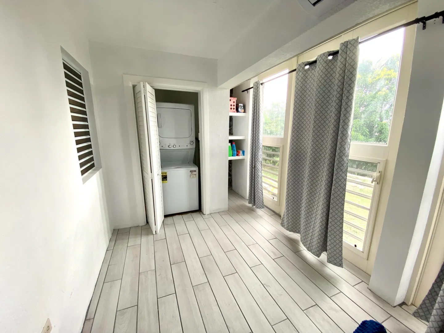Everything is NEW! This beautifully redone unit now has an additional bedroom, and closed in patio area with in-unit laundry. It's very spacious and hip! Rock wall adds character, and small kitchen is has all new appliances and a very modern feel.Just steps away from the pool, and a sea view from the back yard too! Condo fees are lowest on island at only $250 per month. No insurance - but concrete construction, including a concrete roof. Must be a cash purchase. Water billed at $.15 a gallon. Up to 2 pets OK..