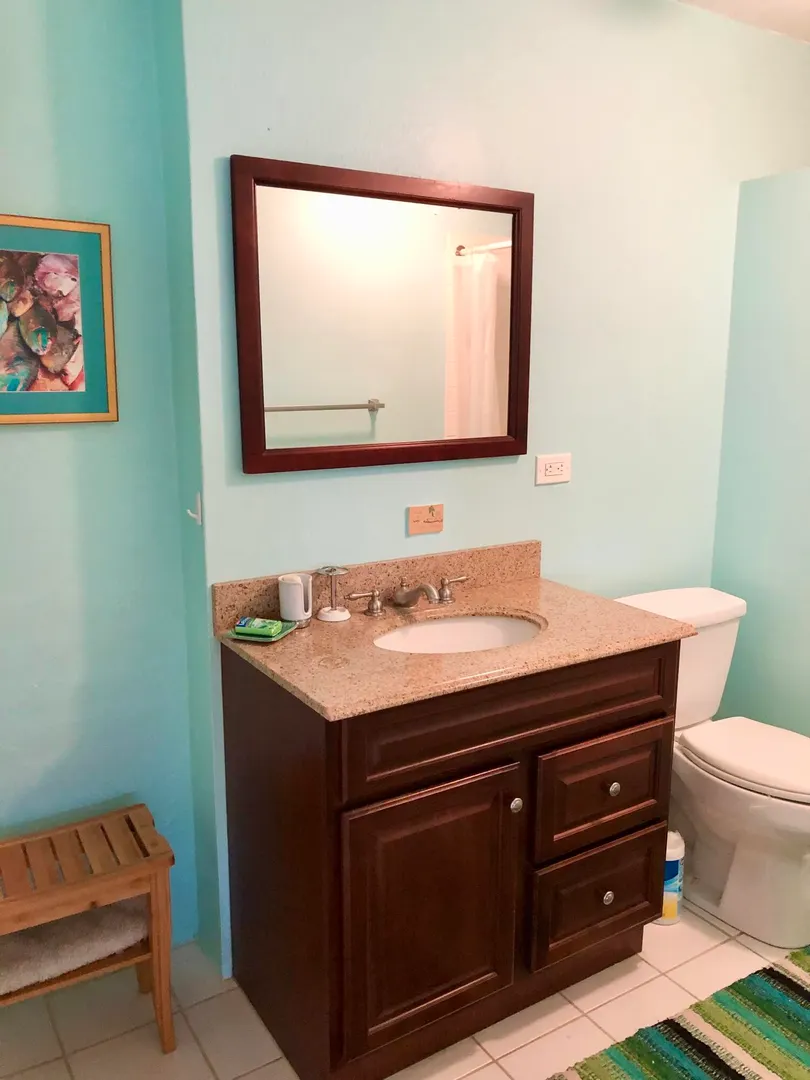 This newly remodeled bright and airy studio apartment is located in a peaceful upscale community of Southgate. The fully furnished unit is adorned with stylish finishes including new appliances, television and AC, and features a large outdoor patio space. Conveniently located minutes from downtown Christiansted, this unit is within walking distance to Tamarind Reef Resort where you will find restaurants, beach access, and wonderful views of the marina and Caribbean.The property features new solar panels and a back up generator. Rent includes electric, WiFi, dish, pest control and landscaping. Dryer to be used during daylight hours only.