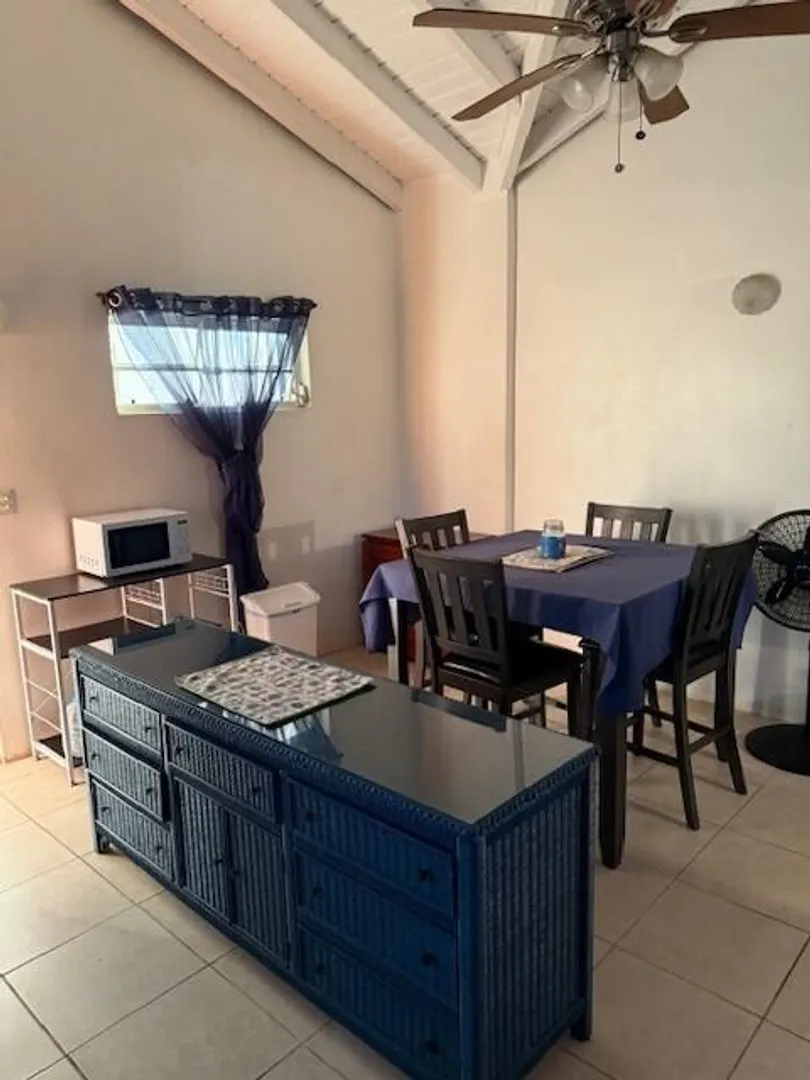 This peaceful apartment has high ceilings and natural light, is completely furnished with air conditioning in the bedroom. Offers cable TV, a full kitchen, a sunken tub, and convenient access to washer/dryer. In an unbeatable location for mid-island, it's a 2-minute drive to Sunny Isle Shopping Center, Caribbean Cinemas Theater, Juan F. Luis Hospital and Medical Center, stores, restaurants, banks, pharmacies, and is close to public transportation. Monthly rent includes $100 cap towards electricity, water usage, and gas. Generator on-site, trash removal, and off-street parking. Move-in ready!