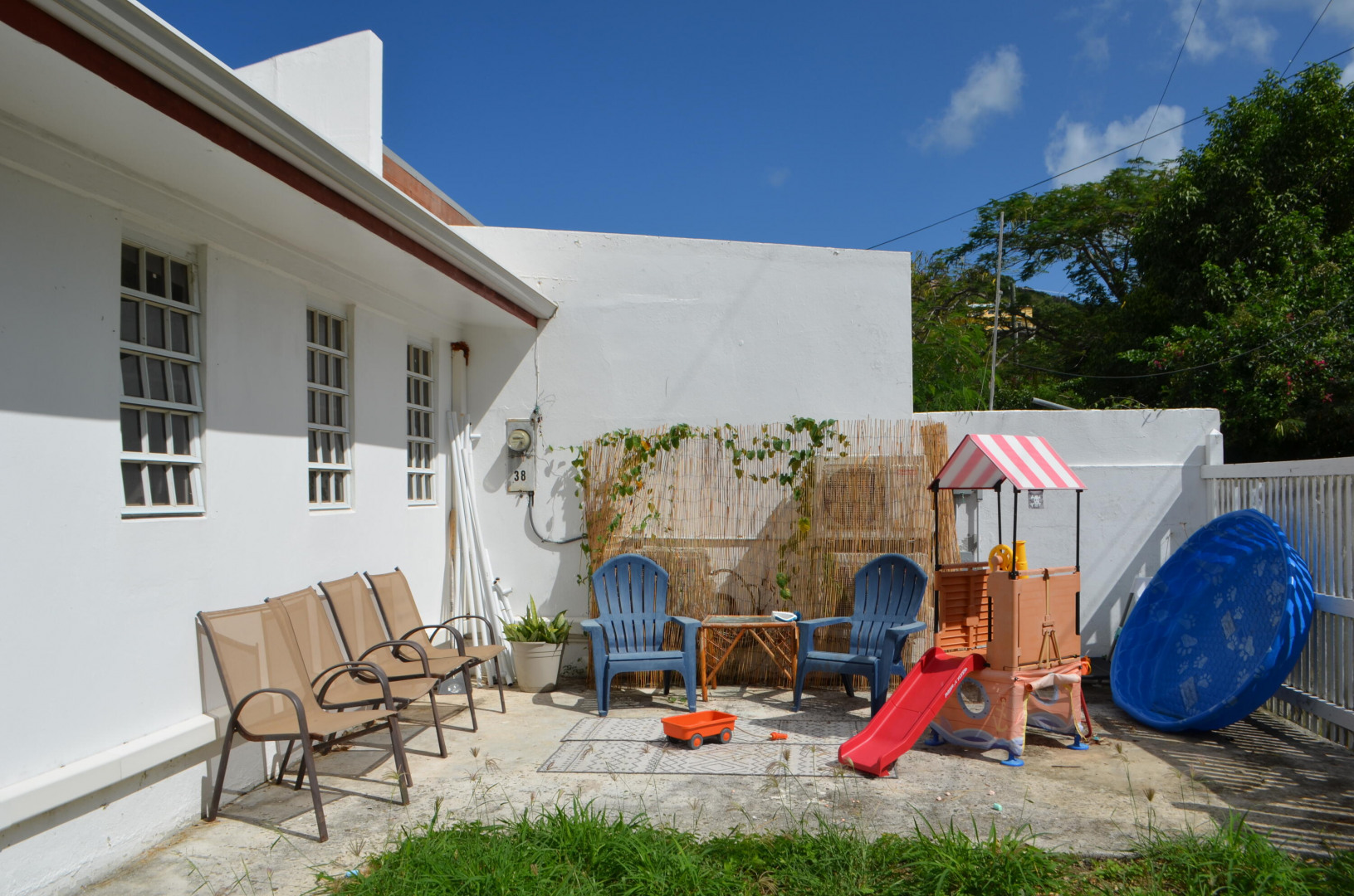 A small front patio welcomes you to this cozy 3 bedroom/ 2 bathroom townhouse. The kitchen and bathrooms are newly remodeled, and the roof was resealed this year (2022). Split A/C units in every room Located in quiet neighborhood just East of Christiansted, minutes from restaurants, supermarkets, and downtown Christiansted. A privately fenced back yard is suitable for outdoor dining or can be used as children's play area.