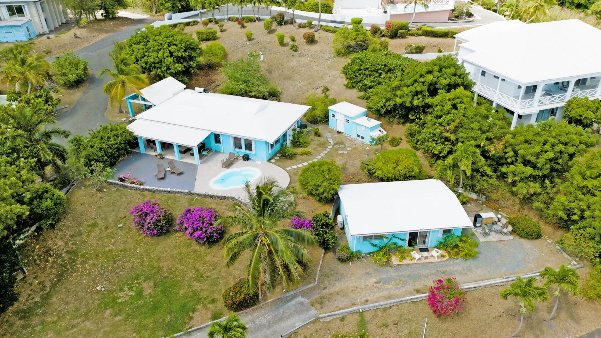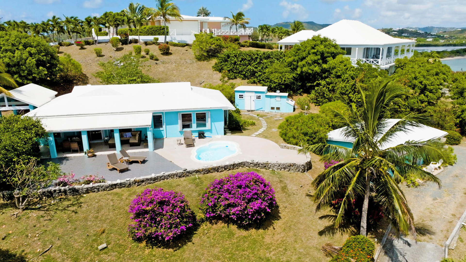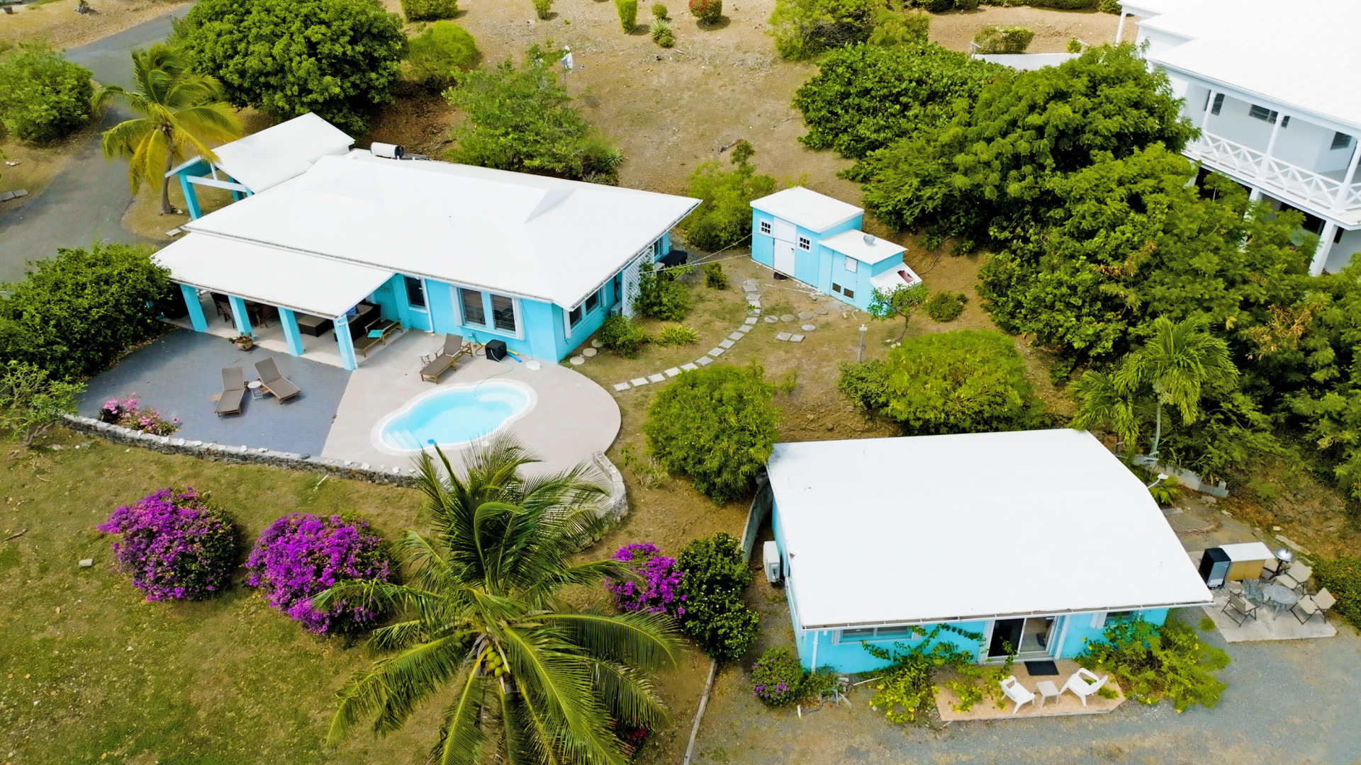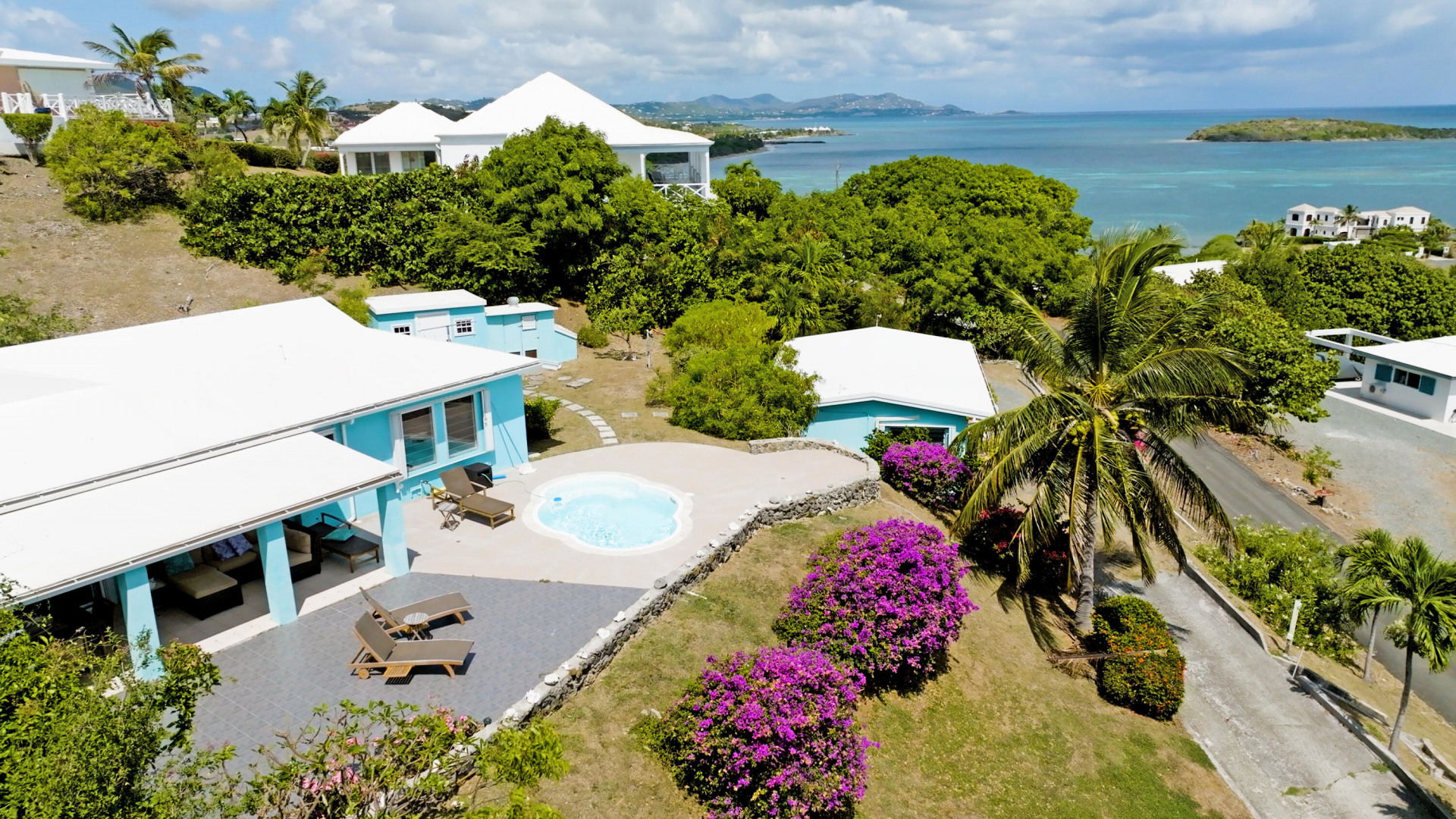 Enjoy amazing views of Buck Island and Pull Point from this well maintained villa located in the East end neighborhood of Green Cay. The main home features quality finishes throughout, and has an open floor plan with three bedrooms, two baths, and large living room. The spacious patio is trimmed with views of the beautiful Caribbean water and features a covered dining area and refreshing swimming pool. Plenty of parking is available in the large driveway that leads to the carport, and the property also has a storage shed and generator room equipped with a 17KW auto transfer generator. The one bedroom cottage has a separate driveway, and boasts the same quality finishes and amazing views. Prime location in a peaceful neighborhood with beaches just a few blocks away.