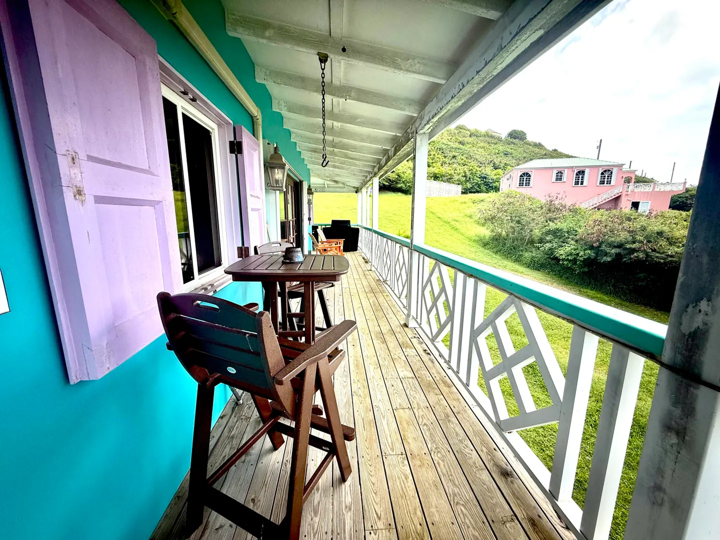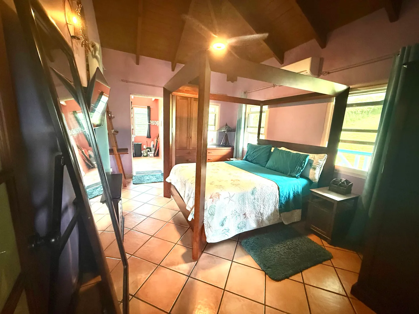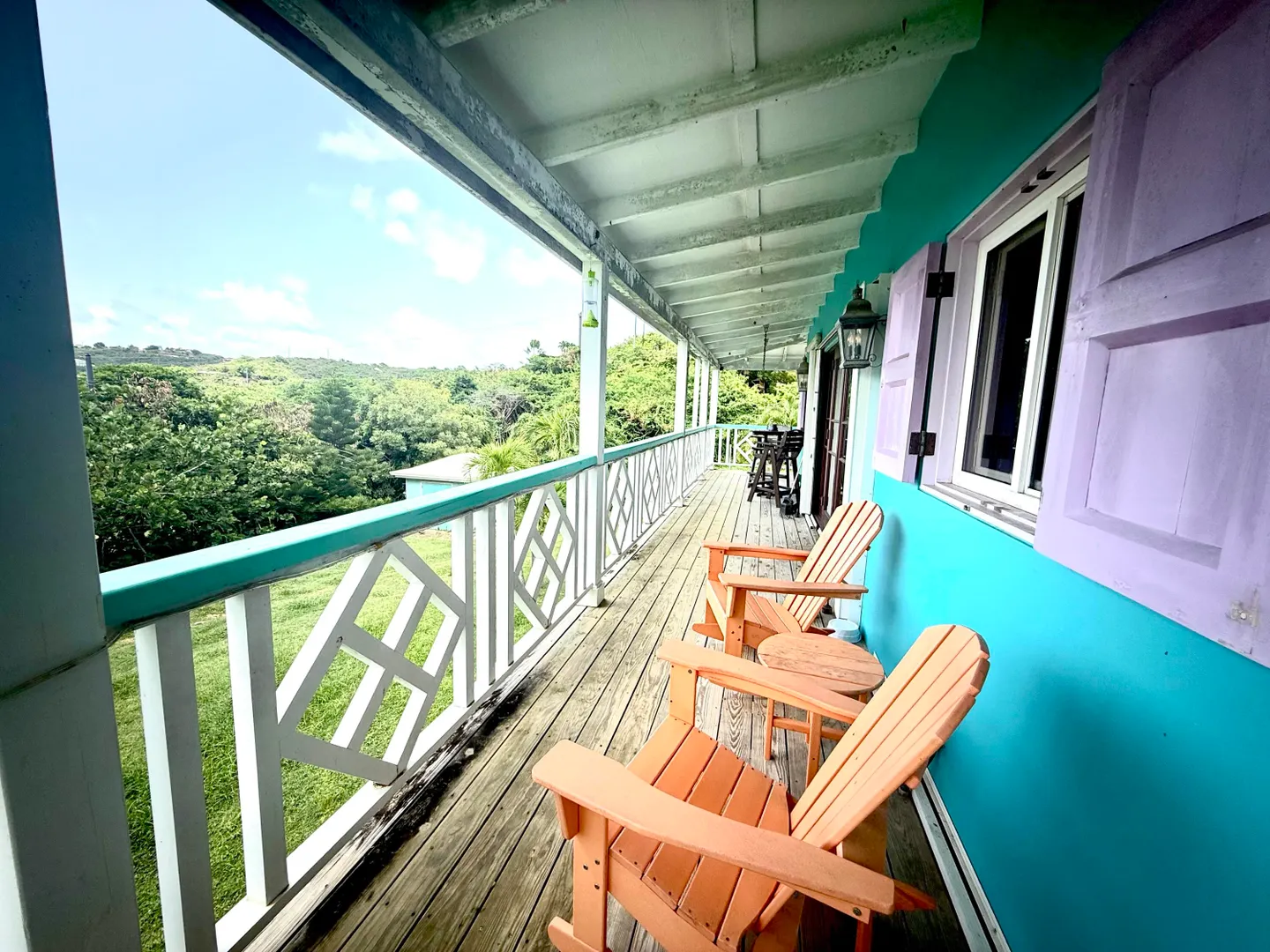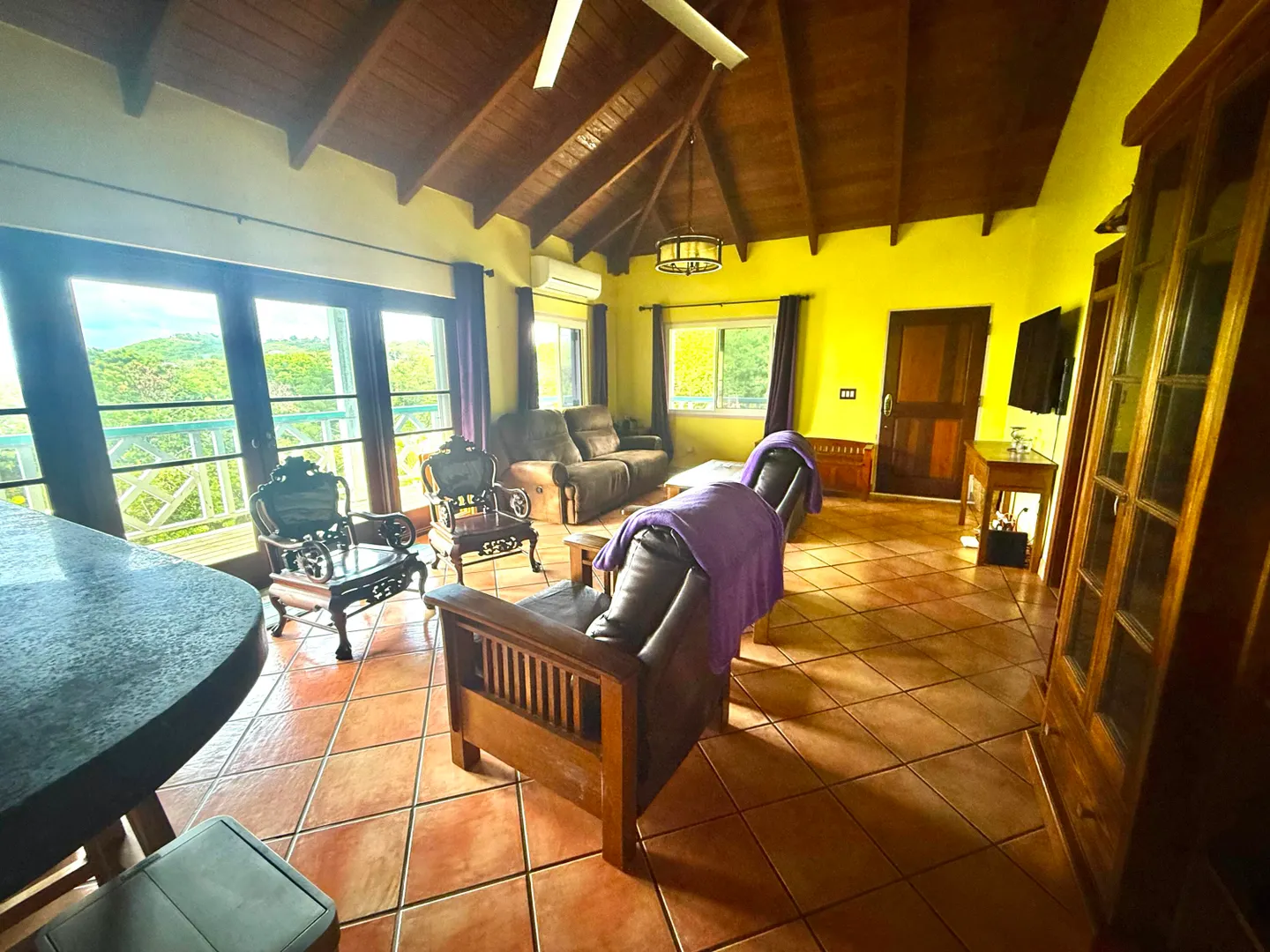 Embrace the beauty of the Caribbean in this upper-level home, offering sea views and an array of high-end amenities. Open concept living/kitchen area (with AC or enjoy the fresh air) that seamlessly connects to a wraparound deck. The gourmet kitchen boasts a Wolf gas stove, wine fridge, dishwasher, refrigerator, plus a gas grill on deck--ideal for home chefs. The two generously sized bedrooms with Split AC's provide comfort and tranquility, each complemented by a modern, well-appointed bathroom. Home has solar power with battery backup plus WAPA included up to $50/month and includes VIYA internet. Up to 2 animals allowed with deposit.