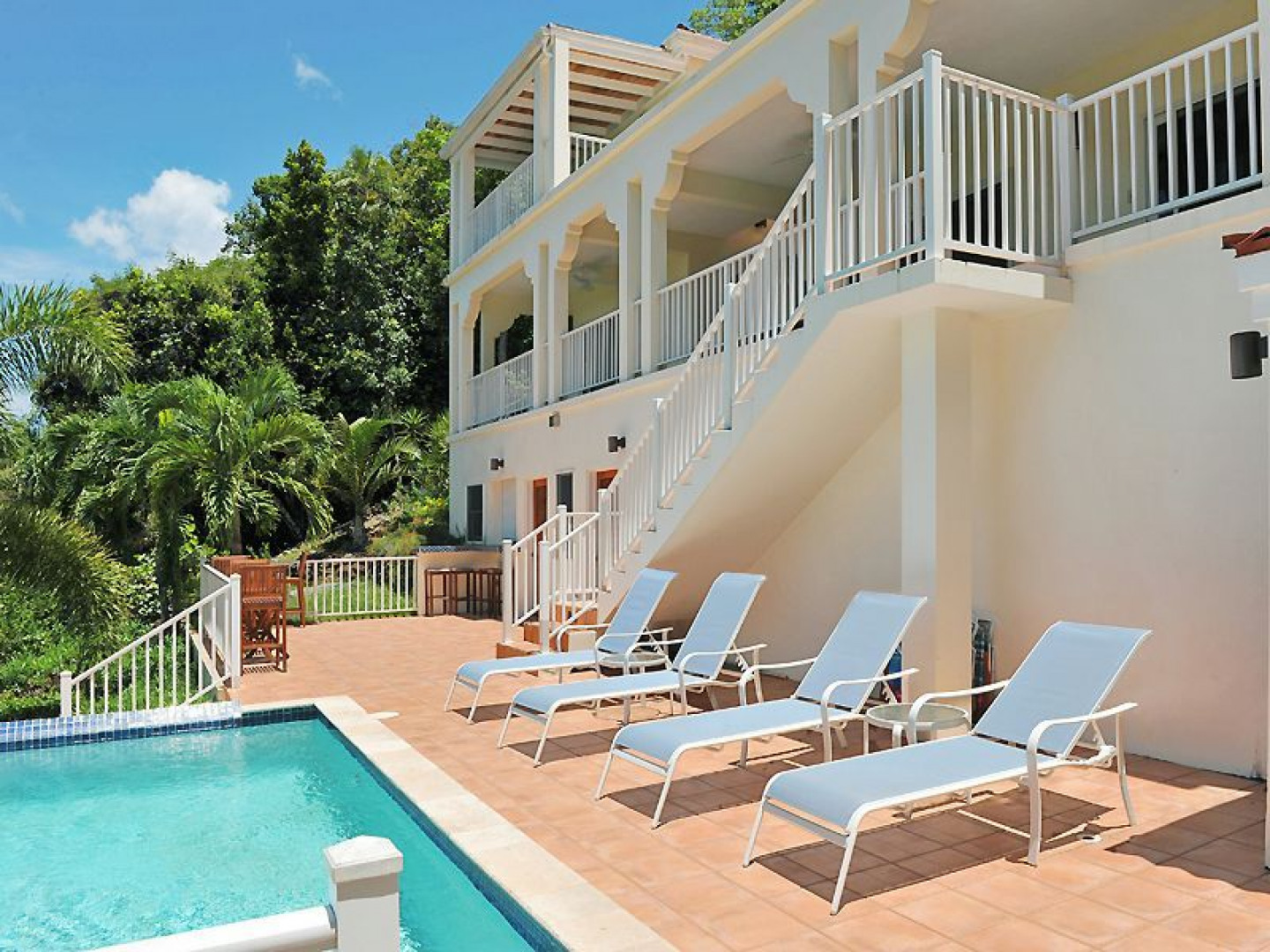 ''Ellison'' is a beautiful, modern, three bedroom masonry pool villa in the upscale Virgin Grand sub division with great views over Great Cruz Bay & beyond. Features include new appliances, easy access, granite counters, native stone garden showers, pool side wet bar, air conditioning, 3 king en-suite bedrooms and fully furnished. Ellison is a very popular short term rental villa. Buyer to honor rental reservations
