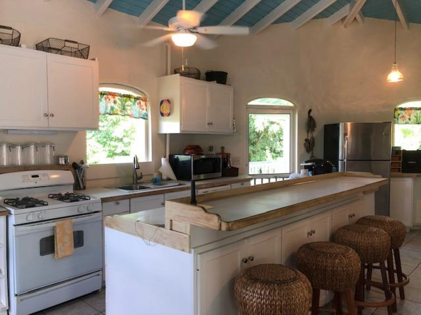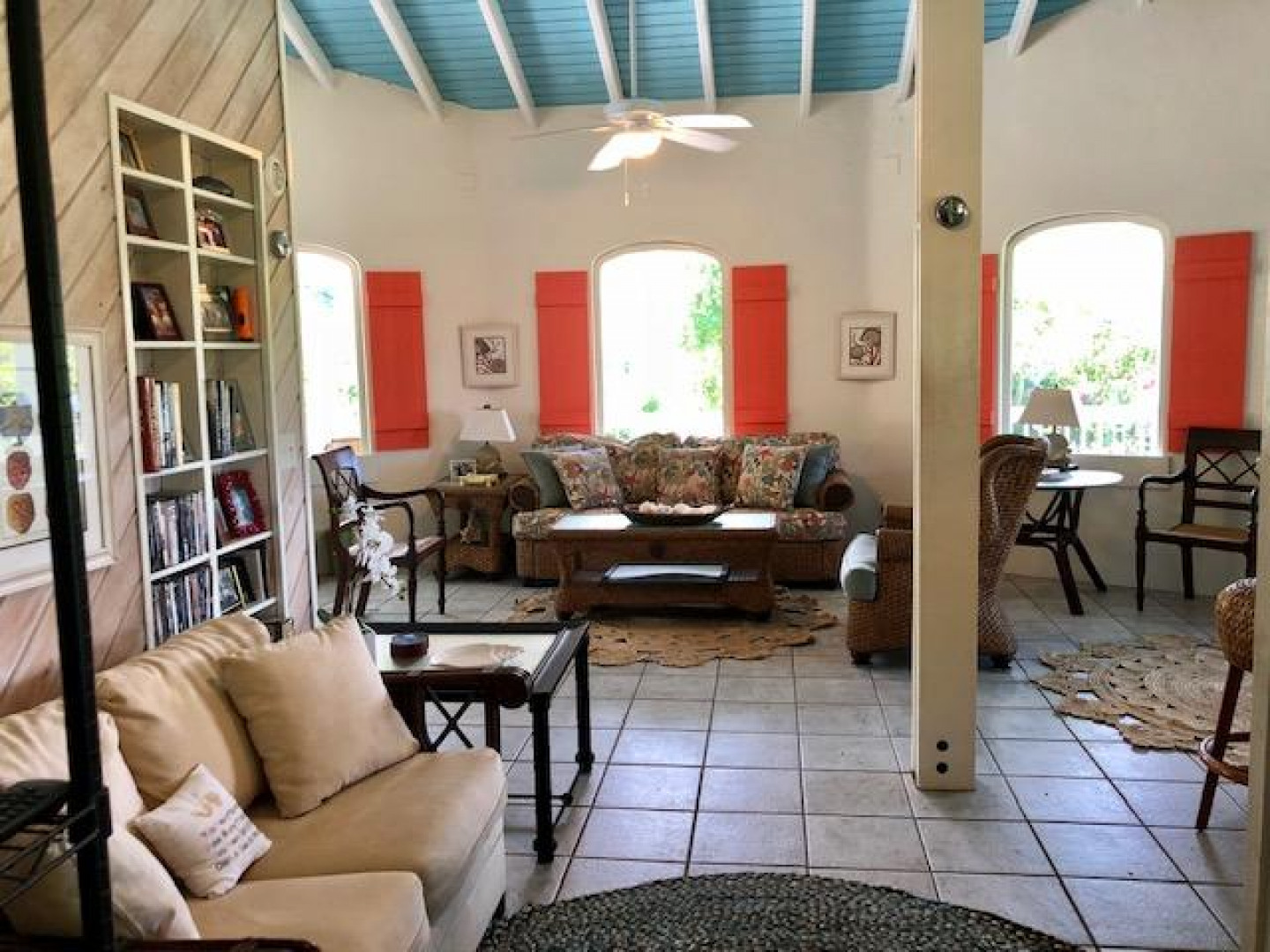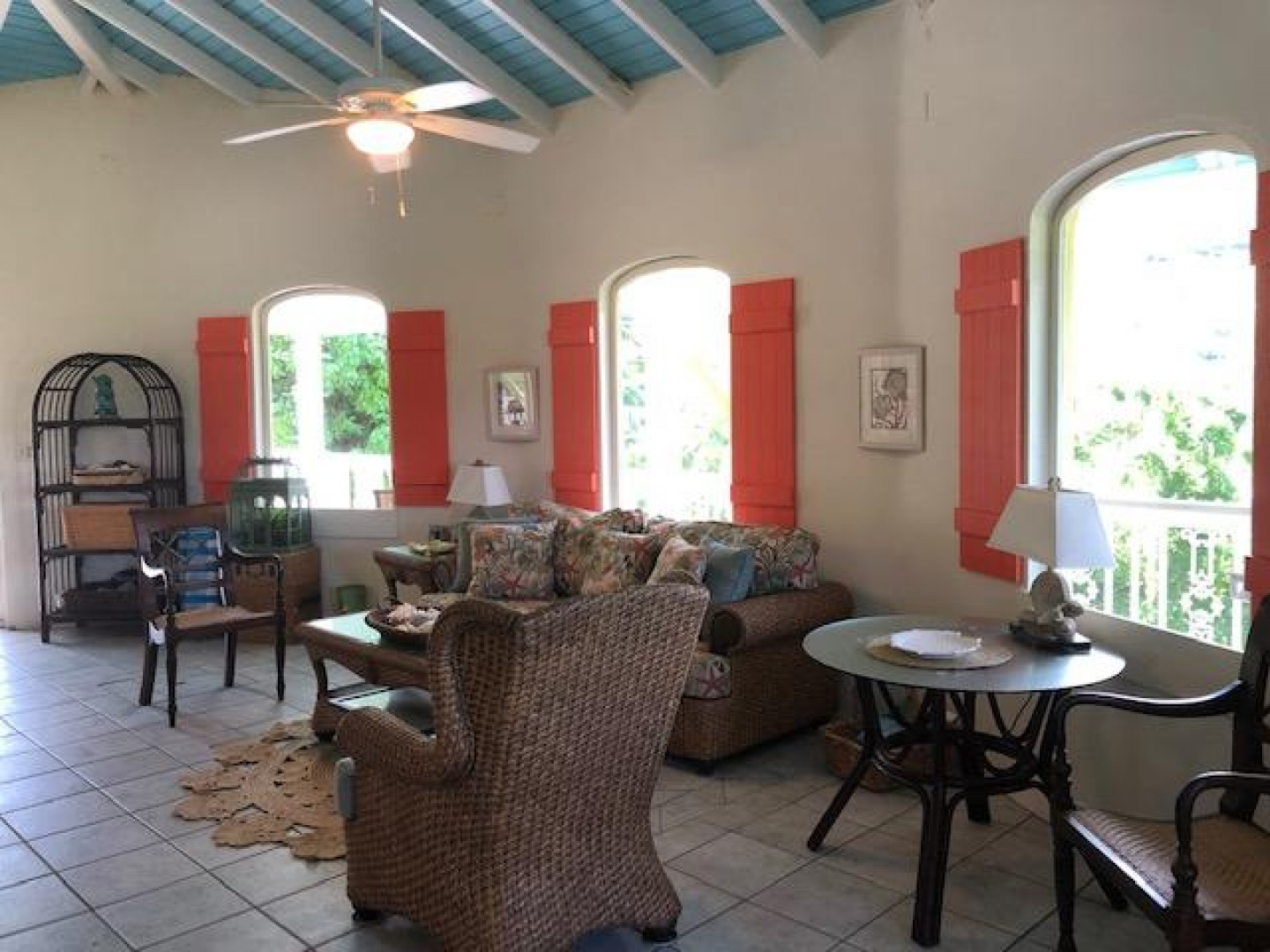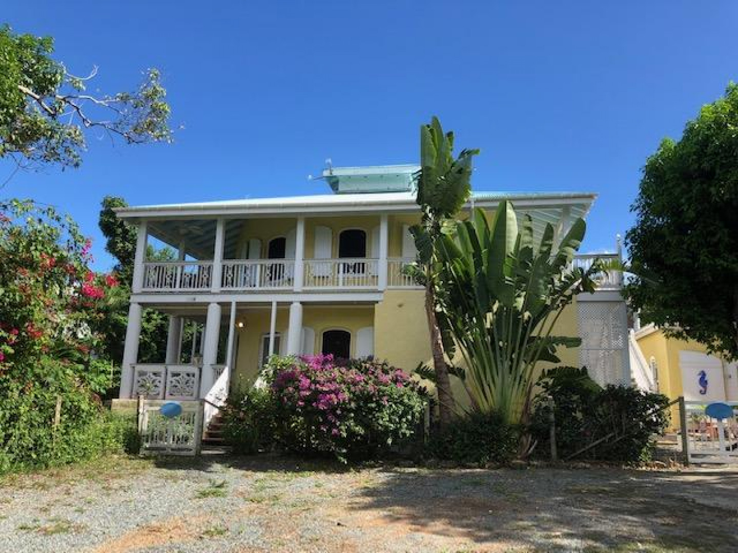 Rose Island Villa is located in the quaint sea side neighborhood of Johnson Bay Estates. A uniquely flat parcel with lush well maintained gardens & grounds overlooking the common beach parcel of Johnson Bay Estates & offering water access! This two story masonry main house is currently configured as 2 independent units. There is also anadditional guest cottage. Rose Island offers charming Caribbean decor & has been well maintained. Fenced yard, paved roads & underground utilities. This income property withstood hurricanes Irma & Maria (category 5) within 14 days of one another w/less than $1,000 in damage. Built by an engineer for himself & his wife to be ''a fortress in paradise''. Strong long rental income. Buyer & Seller to split stamp tax. 90 days notice for tenants to vacate