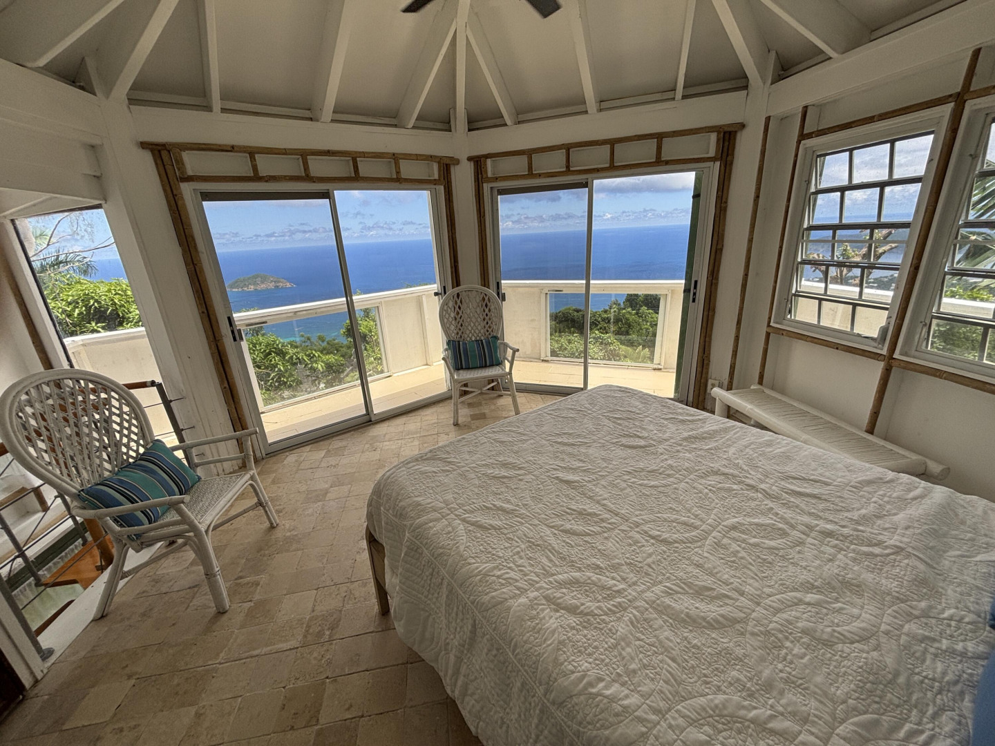 Charming cottage with stunning views over the Atlantic Ocean from the Brasses including Magens Bay and Hans Lollick. Cool and comfortable, perfect for quiet enjoyment by resident or B&B visitor.