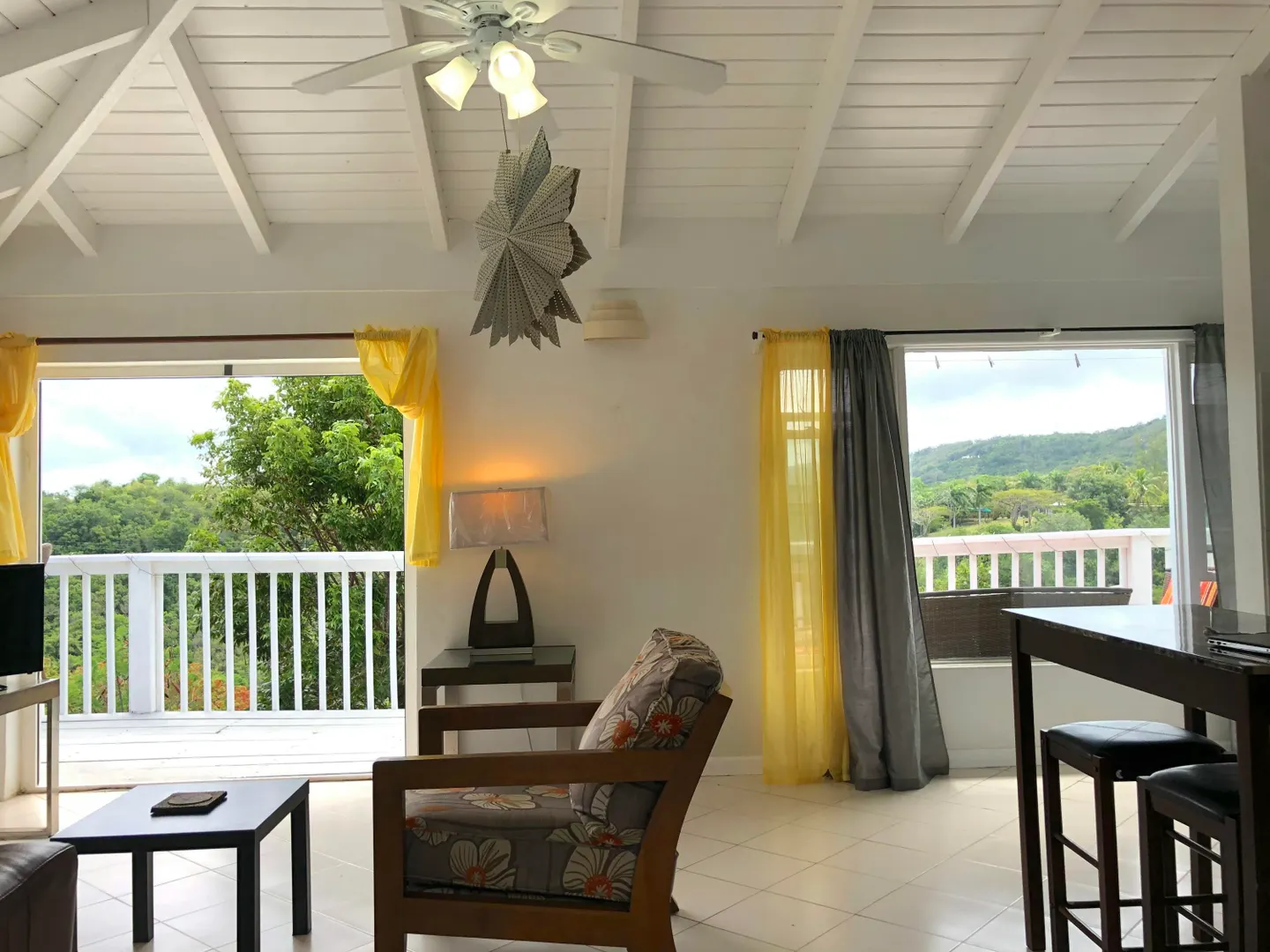 1 Bedroom furnished pet friendly apartment with sea view, A/C, washer/dryer, complimentary water, & private balcony overlooking North shore and pastoral breeze.