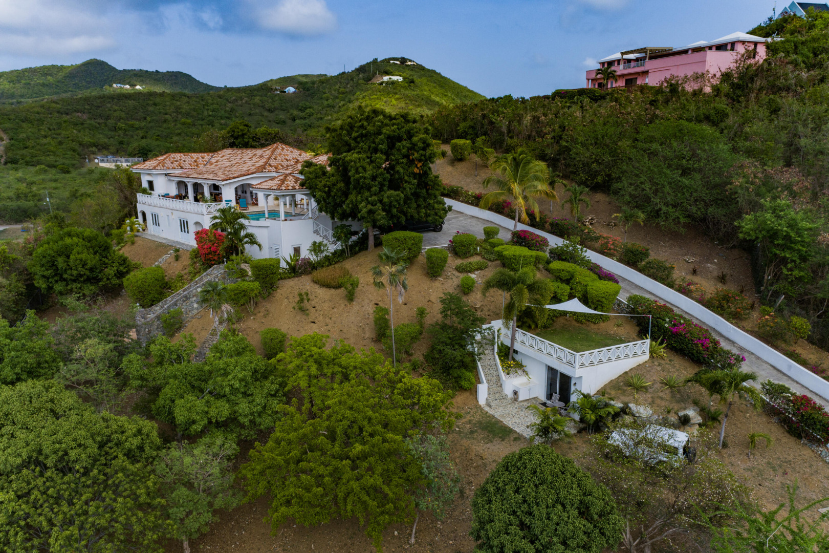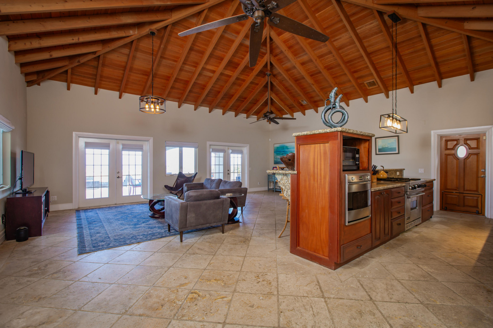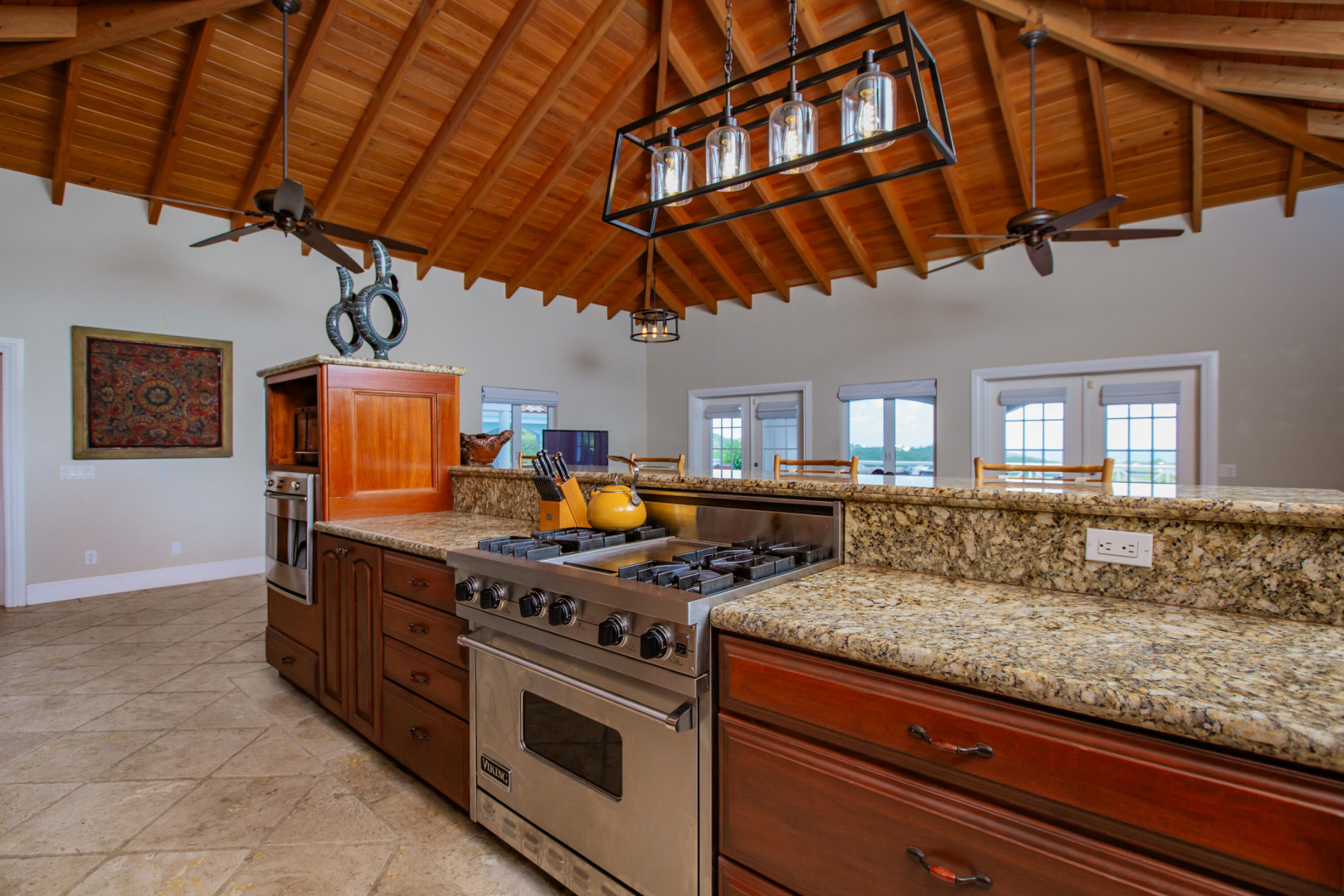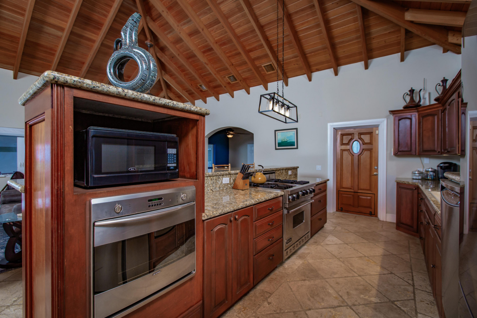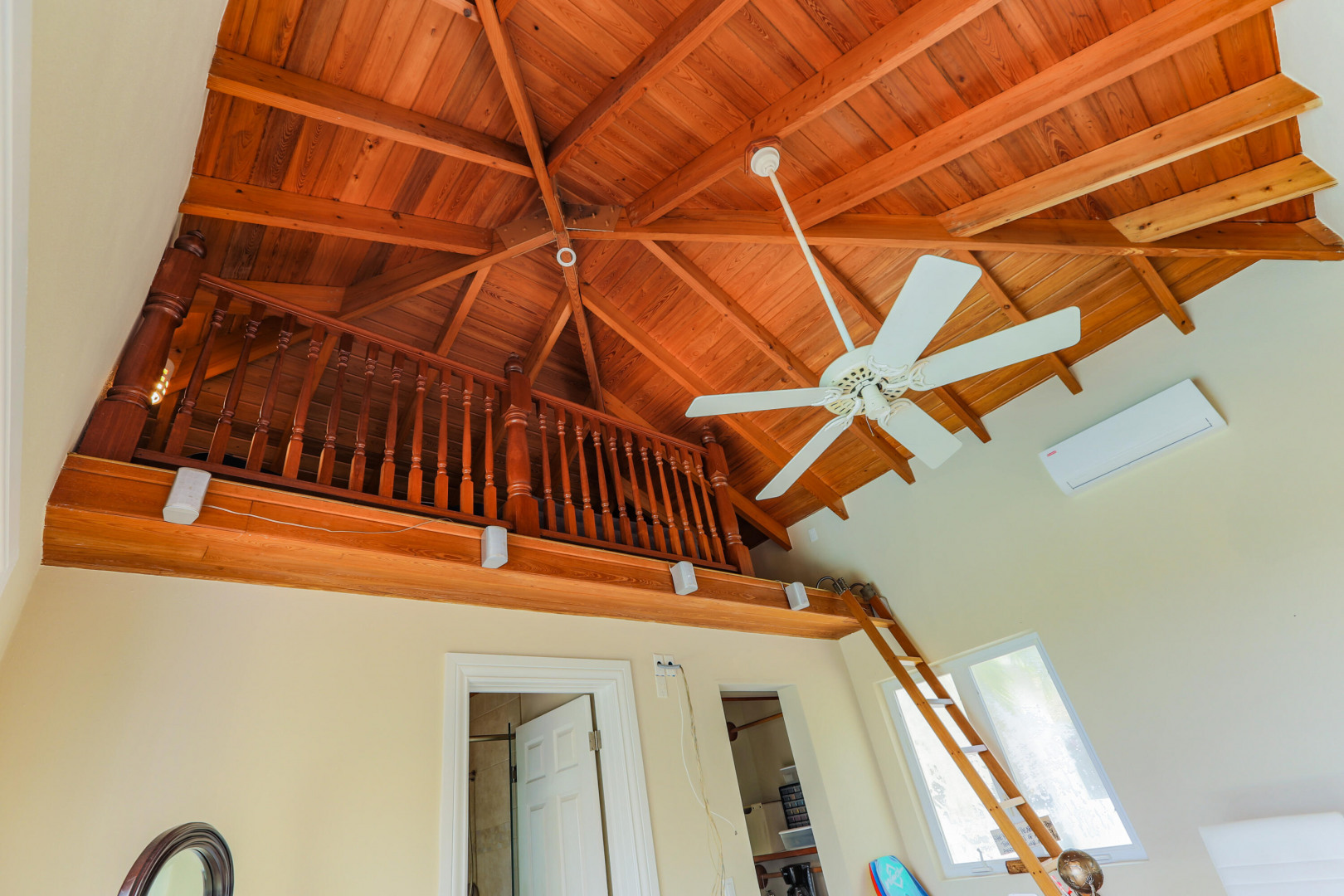 Experience the epitome of island living in this meticulously crafted and thoughtfully designed estate, where luxury and resilience come together seamlessly. Offering breathtaking views of Green Cay and the Caribbean Sea, this gated estate is highlighted by the soaring, vaulted cypress ceilings and an open layout that invites in the beauty of the surroundings views.Safety is not a concern in this home designed by the original owner, a structural engineer from the Army Corps of Engineers. Steel-reinforced concrete and masonry mean this house can withstand a Cat 5 hurricane and simultaneous earthquake up to 8 on the Richter scale. With additional off-grid features including an auto-start generator, 30,000-gallon fresh water cistern, 10,000-gallon gray water cistern (cont. in supplement)