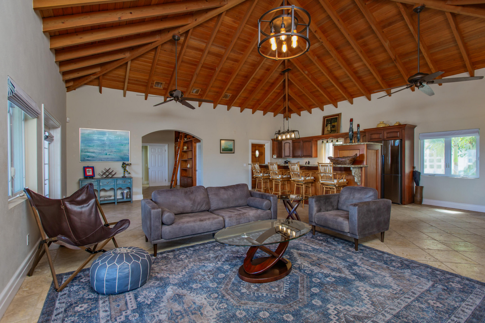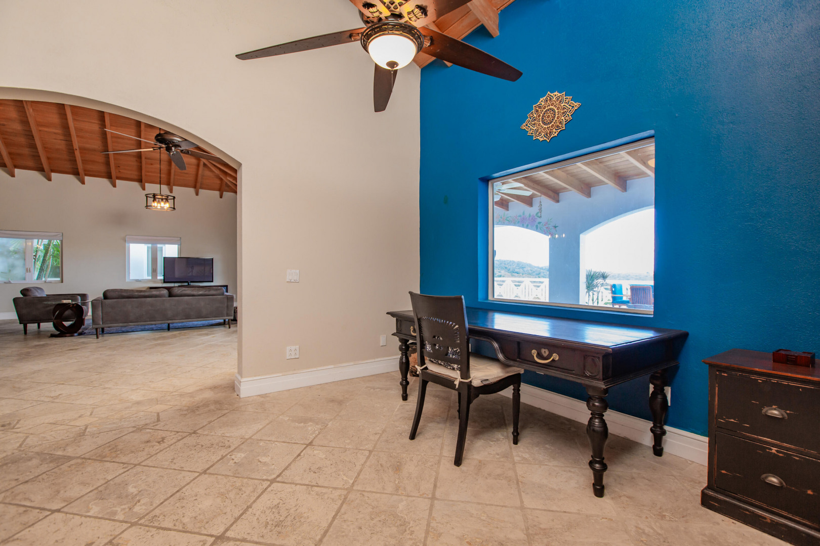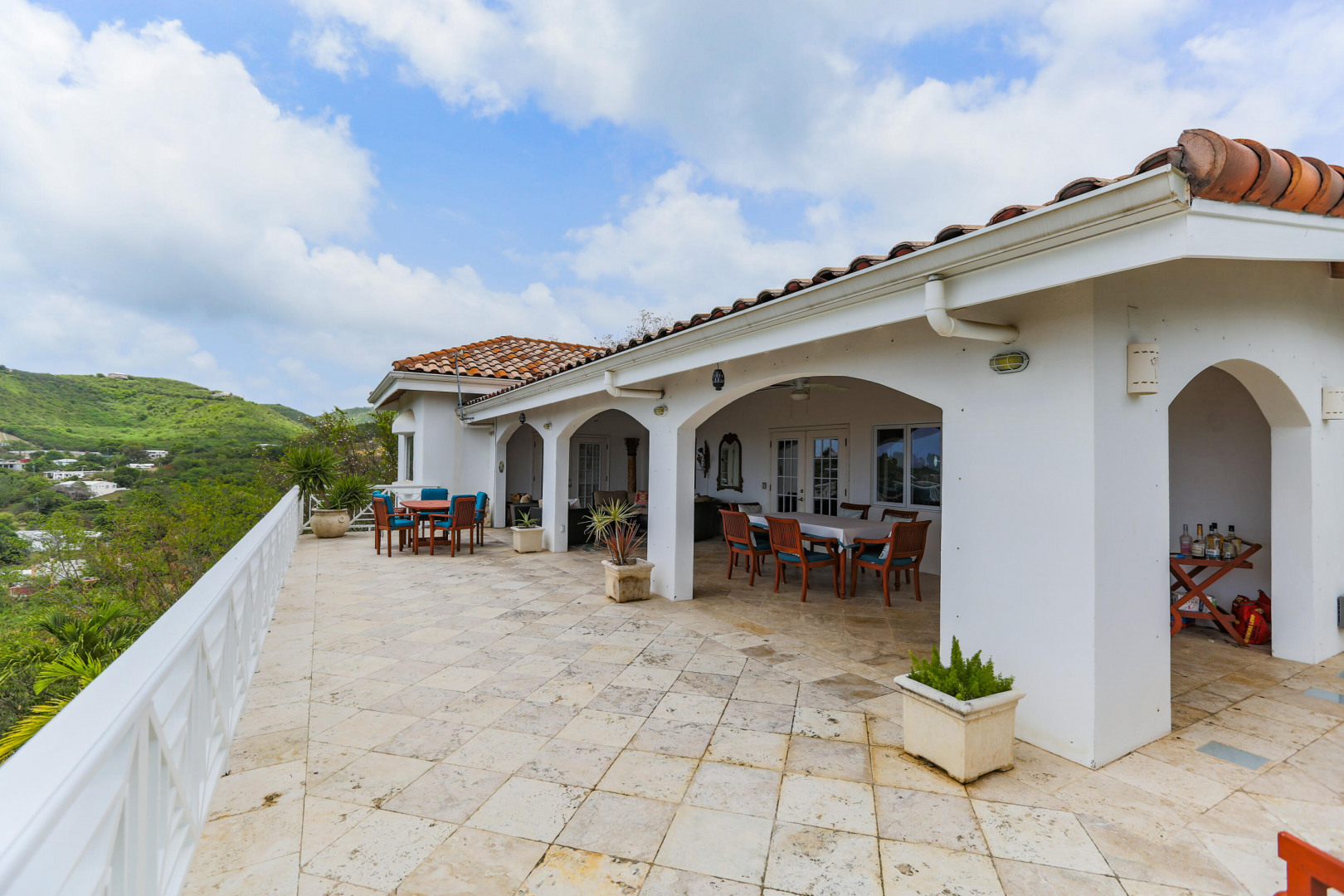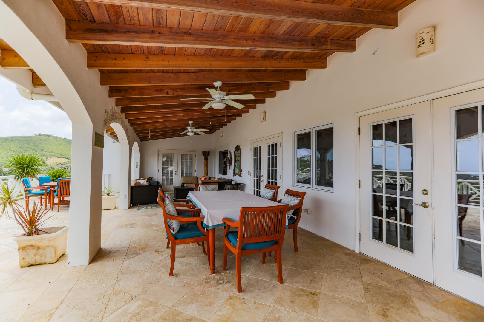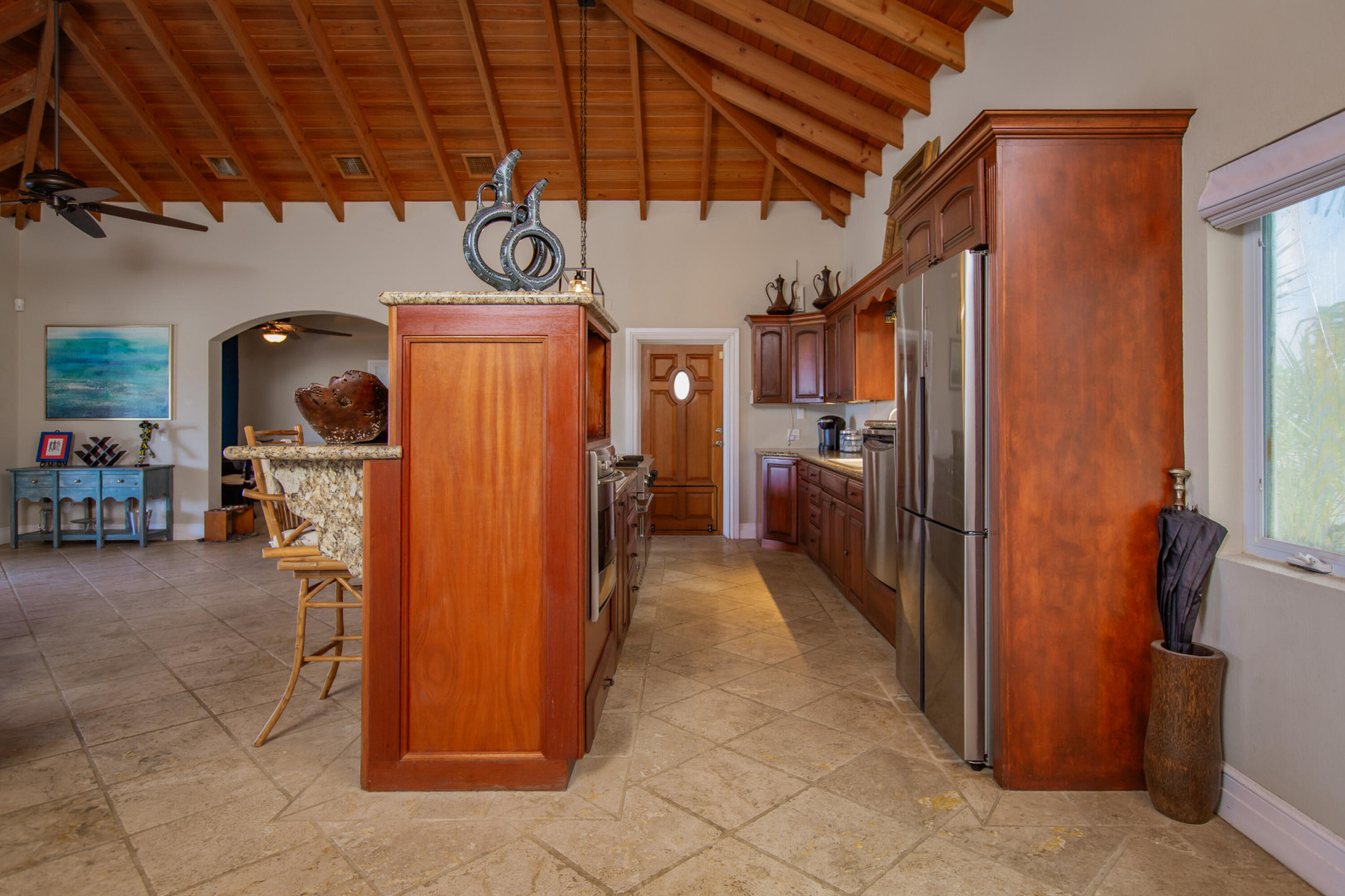 Experience the epitome of island living in this meticulously crafted and thoughtfully designed estate, where luxury and resilience come together seamlessly. Offering breathtaking views of Green Cay and the Caribbean Sea, this gated estate is highlighted by the soaring, vaulted cypress ceilings and an open layout that invites in the beauty of the surroundings views.Safety is not a concern in this home designed by the original owner, a structural engineer from the Army Corps of Engineers. Steel-reinforced concrete and masonry mean this house can withstand a Cat 5 hurricane and simultaneous earthquake up to 8 on the Richter scale. With additional off-grid features including an auto-start generator, 30,000-gallon fresh water cistern, 10,000-gallon gray water cistern (cont. in supplement)