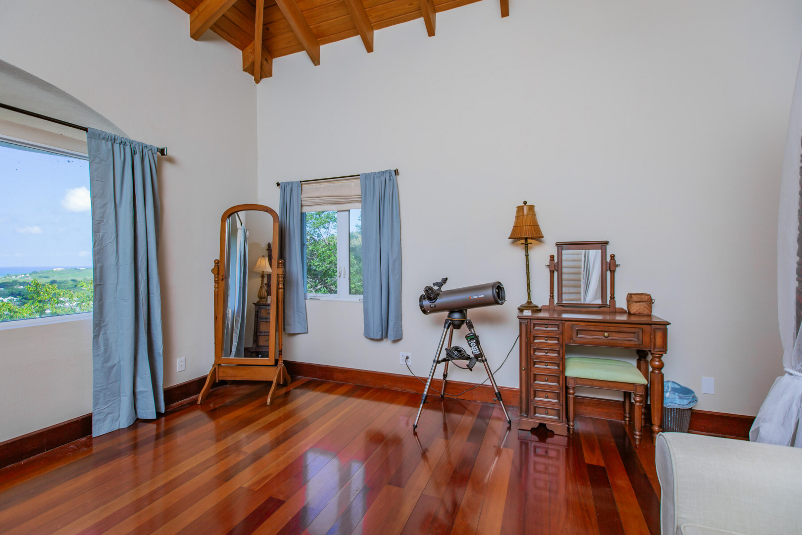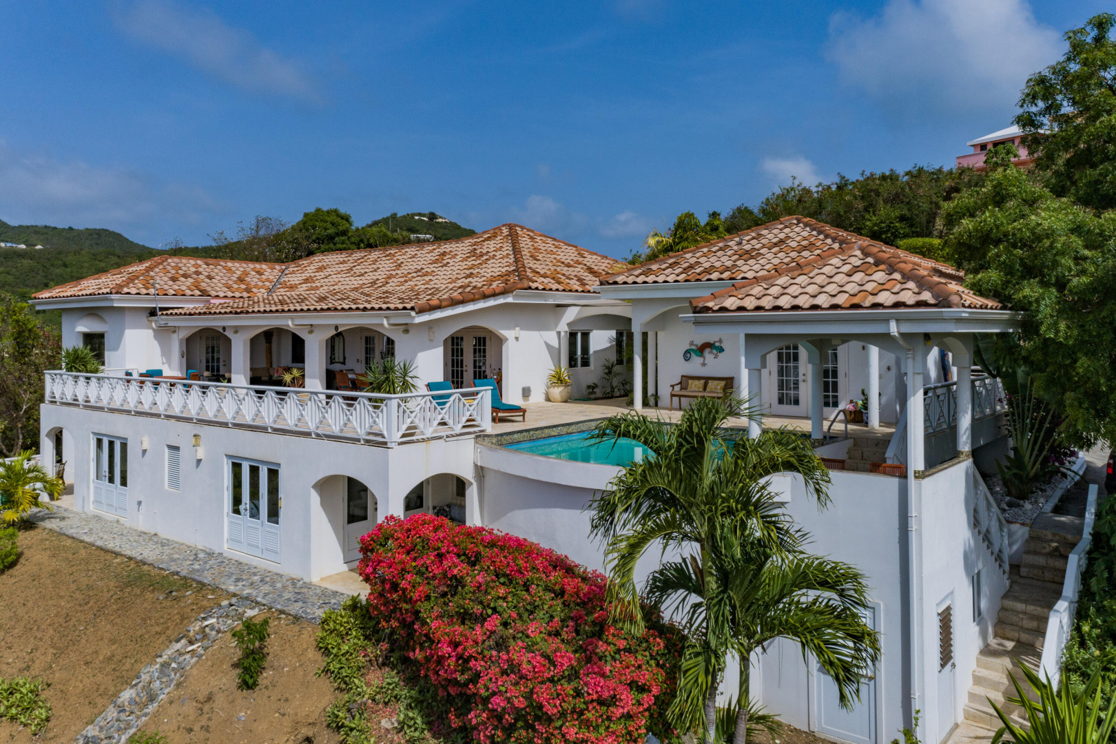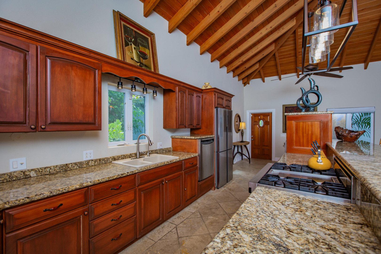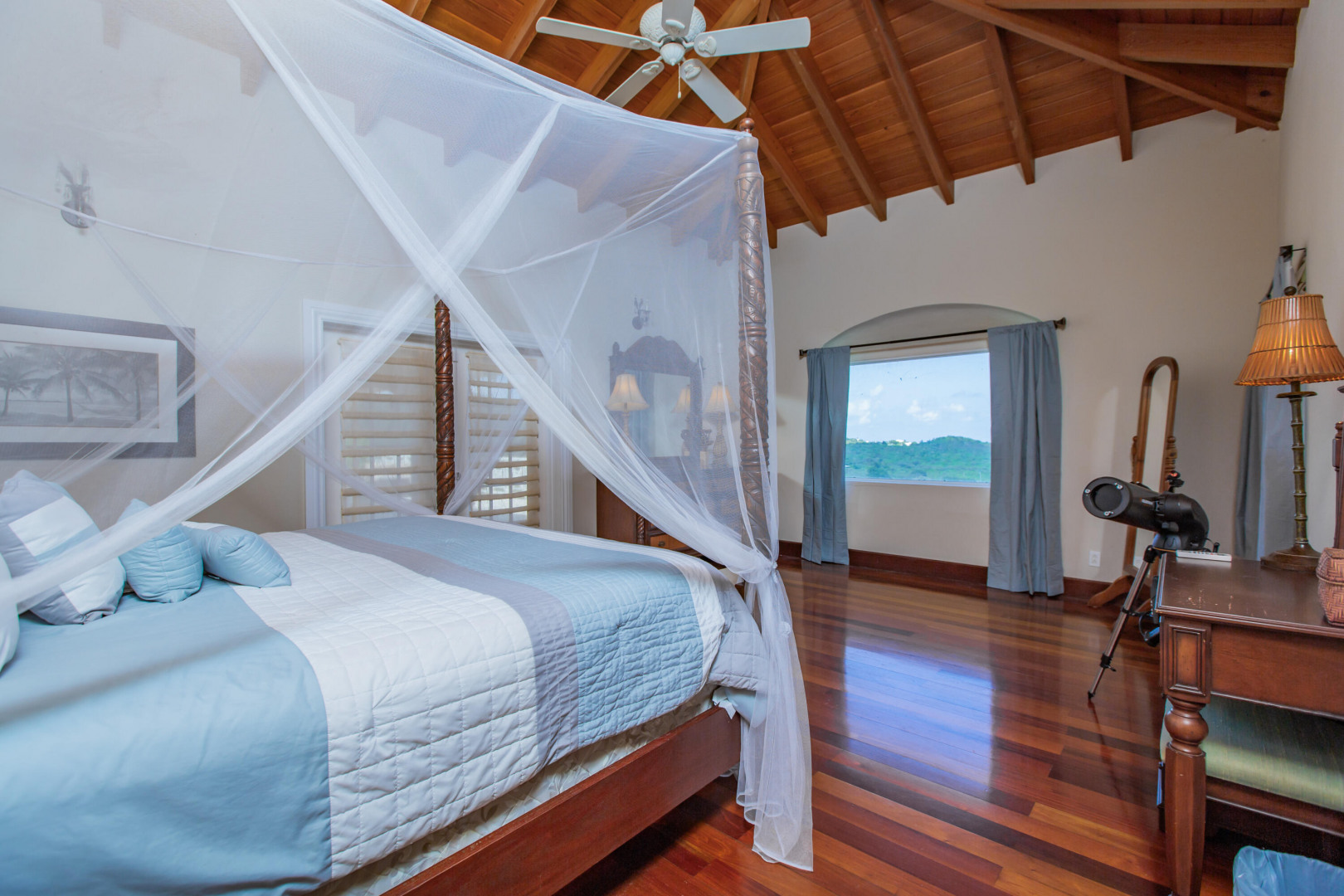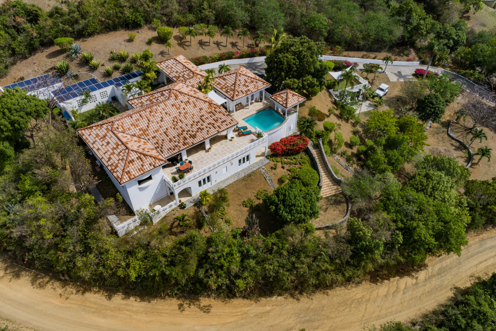 Experience the epitome of island living in this meticulously crafted and thoughtfully designed estate, where luxury and resilience come together seamlessly. Offering breathtaking views of Green Cay and the Caribbean Sea, this gated estate is highlighted by the soaring, vaulted cypress ceilings and an open layout that invites in the beauty of the surroundings views.Safety is not a concern in this home designed by the original owner, a structural engineer from the Army Corps of Engineers. Steel-reinforced concrete and masonry mean this house can withstand a Cat 5 hurricane and simultaneous earthquake up to 8 on the Richter scale. With additional off-grid features including an auto-start generator, 30,000-gallon fresh water cistern, 10,000-gallon gray water cistern (cont. in supplement)