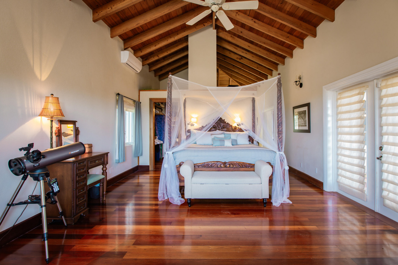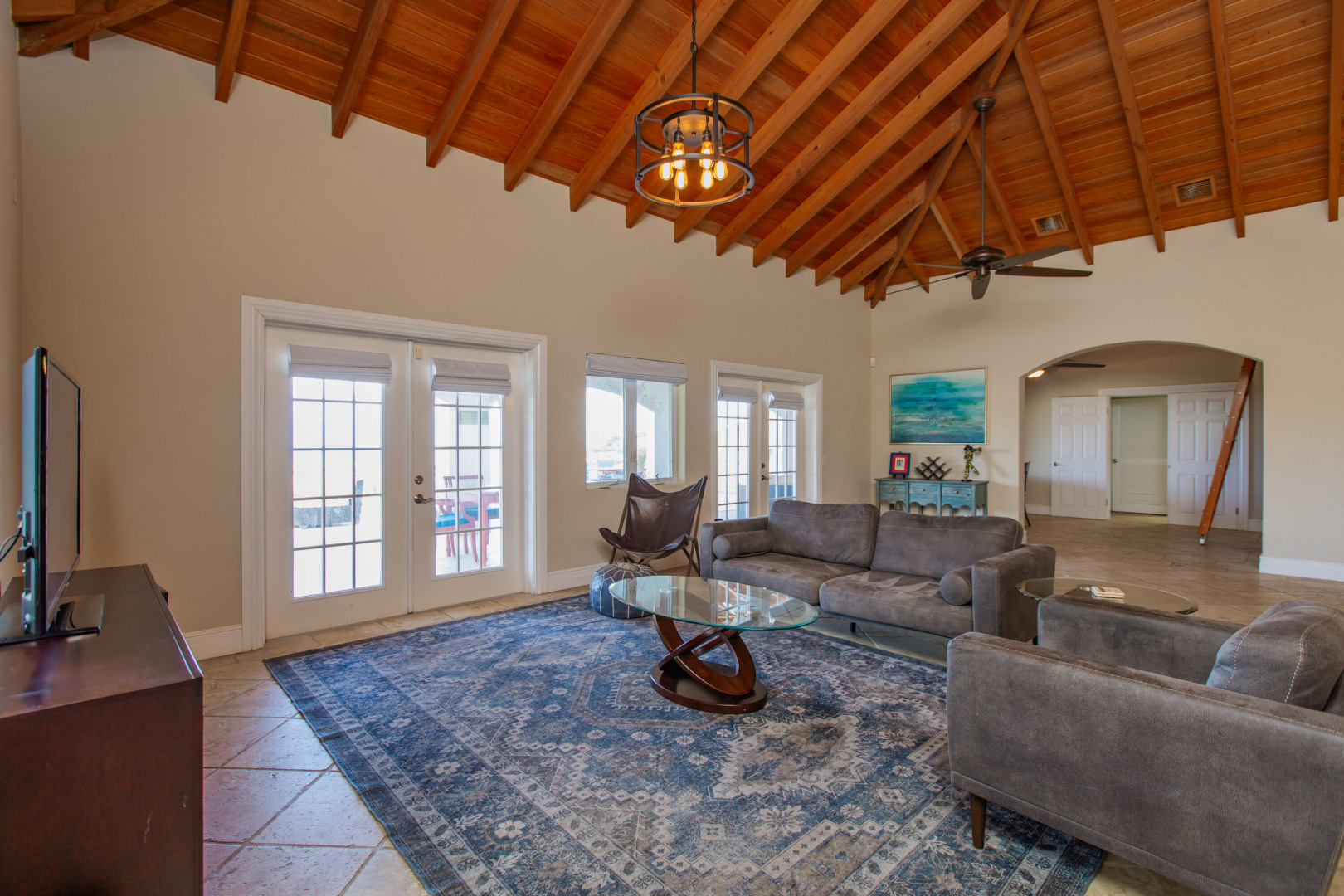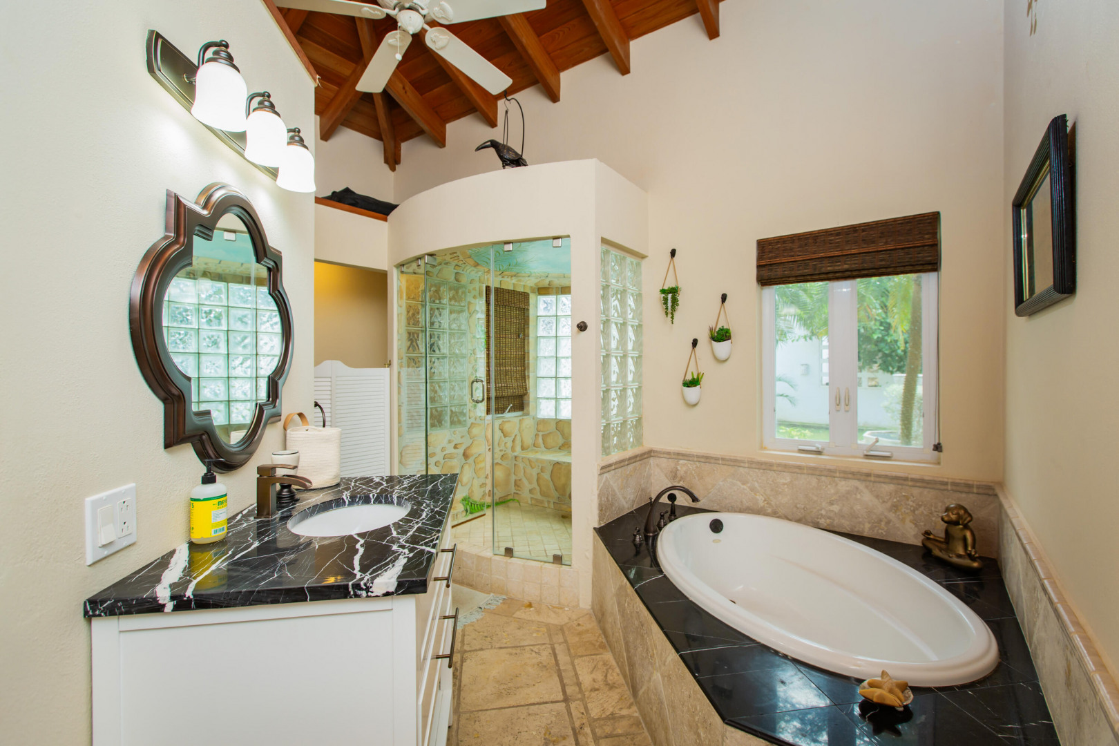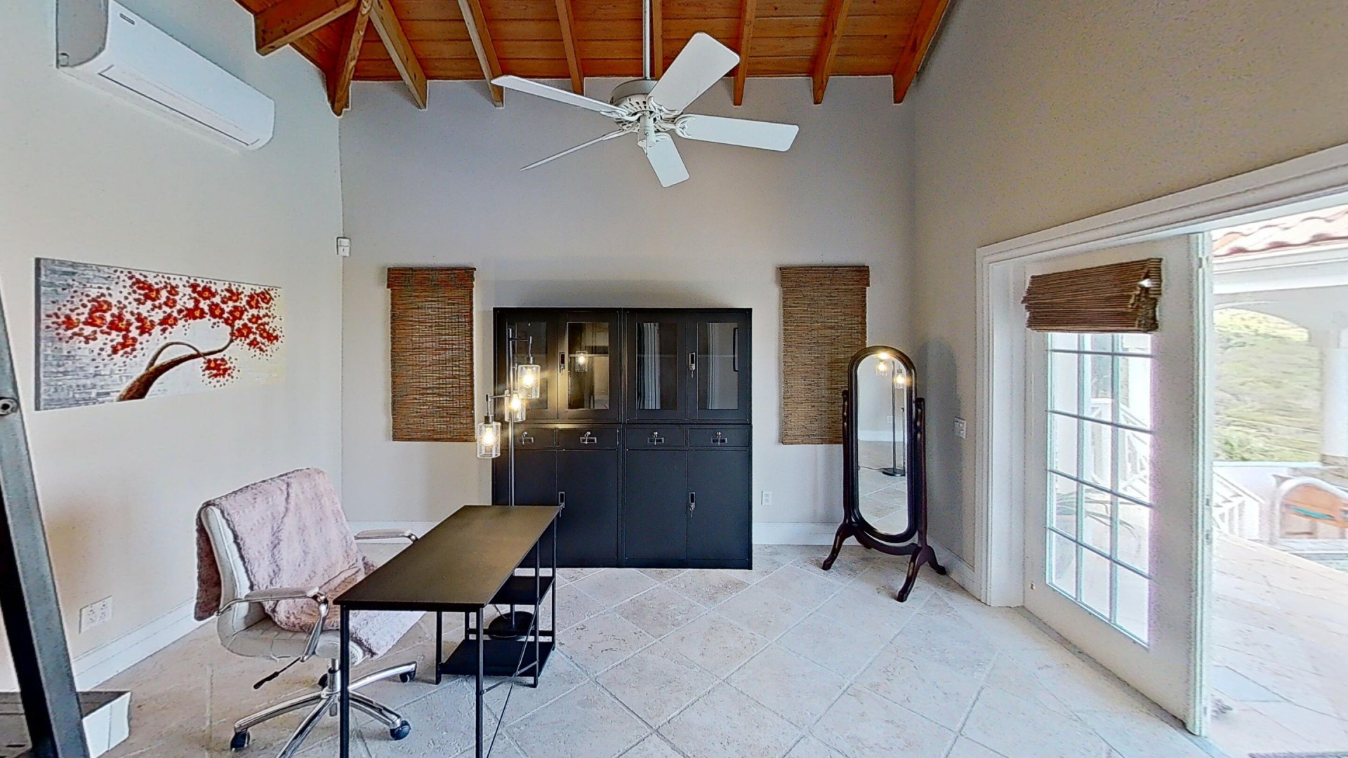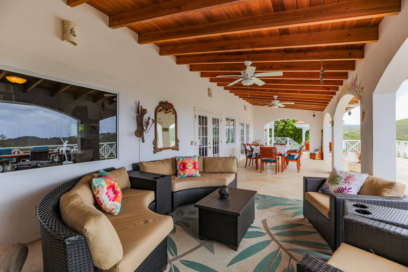 Experience the epitome of island living in this meticulously crafted and thoughtfully designed estate, where luxury and resilience come together seamlessly. Offering breathtaking views of Green Cay and the Caribbean Sea, this gated estate is highlighted by the soaring, vaulted cypress ceilings and an open layout that invites in the beauty of the surroundings views.Safety is not a concern in this home designed by the original owner, a structural engineer from the Army Corps of Engineers. Steel-reinforced concrete and masonry mean this house can withstand a Cat 5 hurricane and simultaneous earthquake up to 8 on the Richter scale. With additional off-grid features including an auto-start generator, 30,000-gallon fresh water cistern, 10,000-gallon gray water cistern (cont. in supplement)