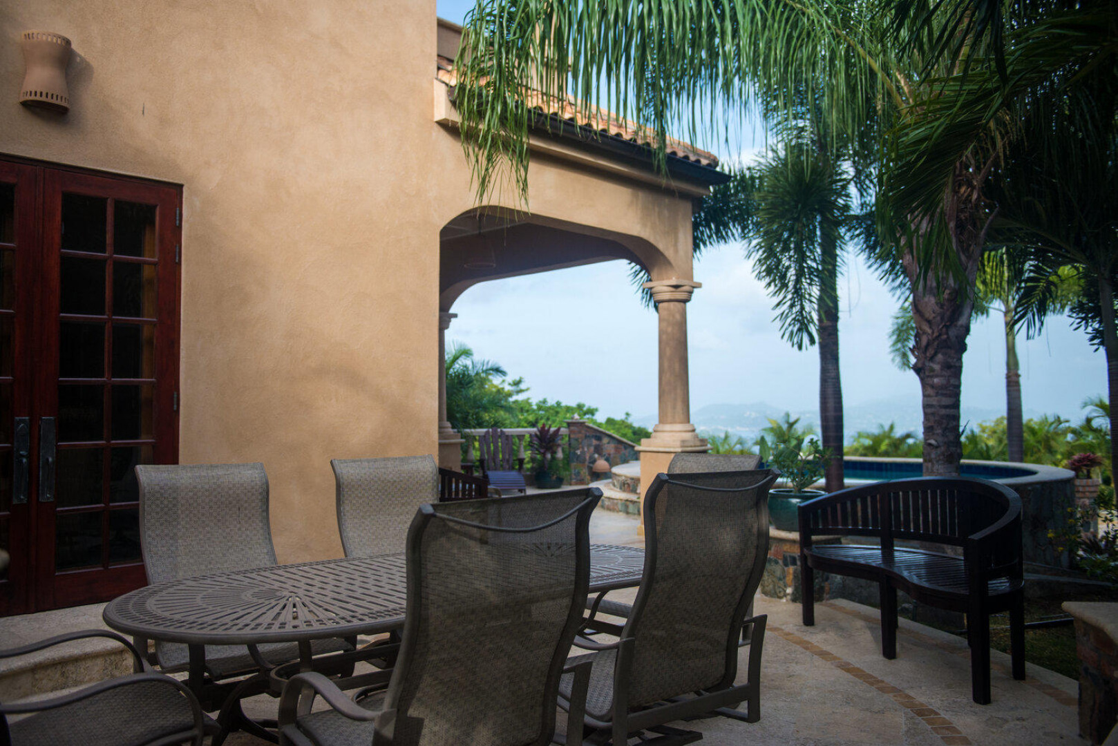 Top of the line luxurious pool villa designed by noted architect Michael Oxman and located in the gated, upscale subdivision of Virgin Grande Estates. Sweeping south to westerly views from St. Croix and over Pillsbury Sound to St. Thomas ensure great sunsets year round. Features include custom mahogany cabinets, doors and windows, coral stone floors and decks throughout, pool and spa, game and media room and fine furnishings. Buyer to honor confirmed rental reservations. See supplement for more details.