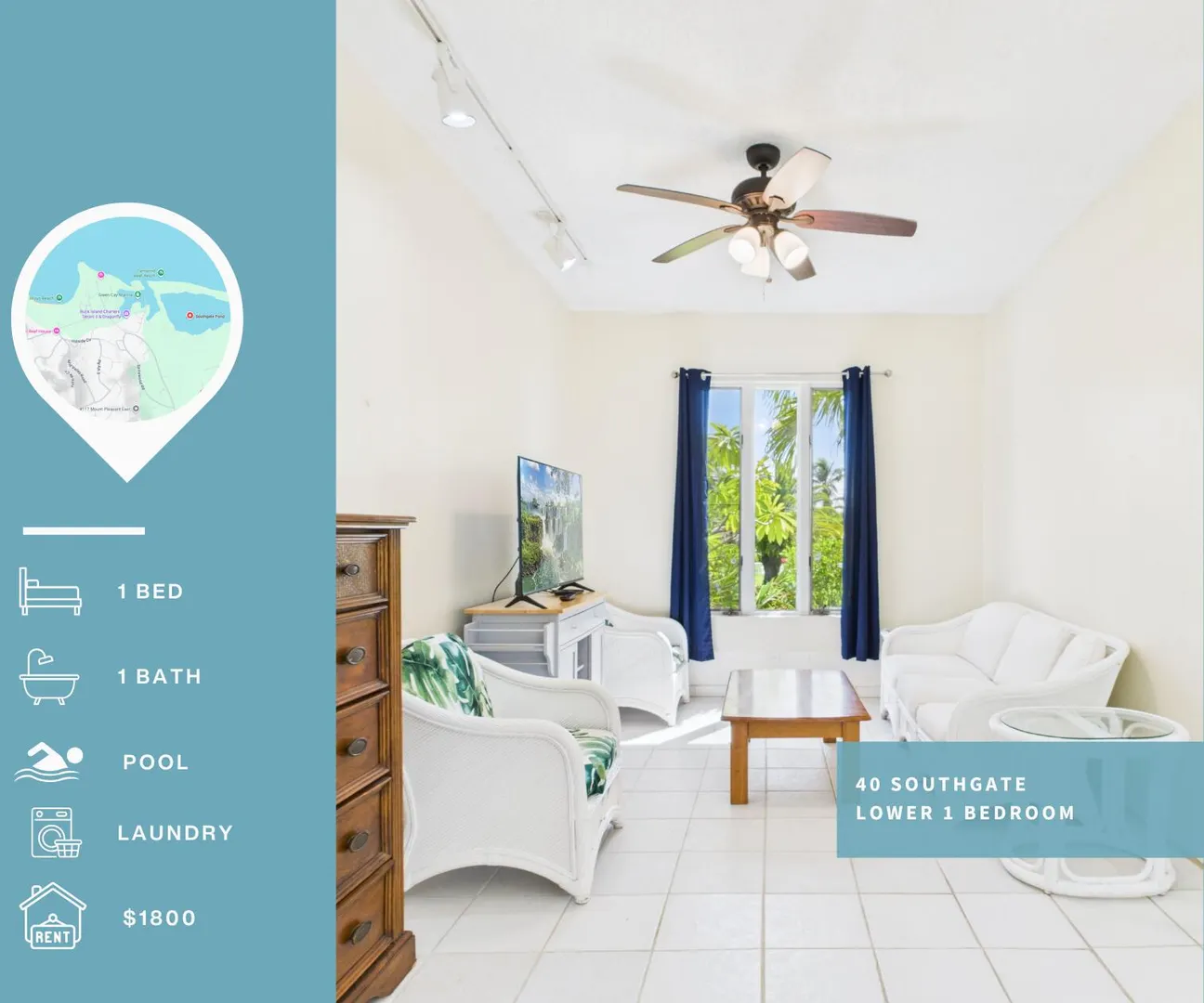 Island living at its best! This one-bedroom, one-bath rental in Southgate is just minutes from Tamarind Reef Resort. Bright, open living area with a functional kitchen, comfortable bedroom, and updated bathroom. Enjoy a sparkling pool and tropical surroundings, plus quick access to beaches, tennis, marina, and waterfront dining. Christiansted's shops and restaurants are only a short drive away. Rent includes a $200 monthly electric allowance, on-site parking, A/C, and laundry access. Schedule your showing today!