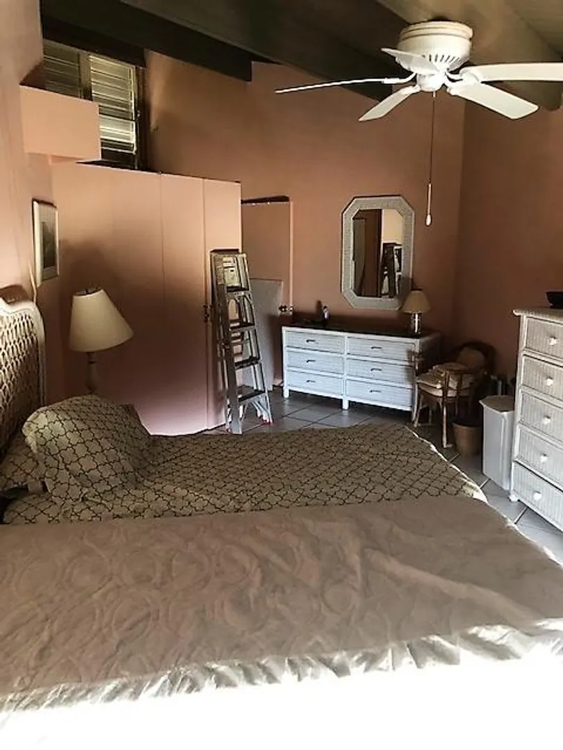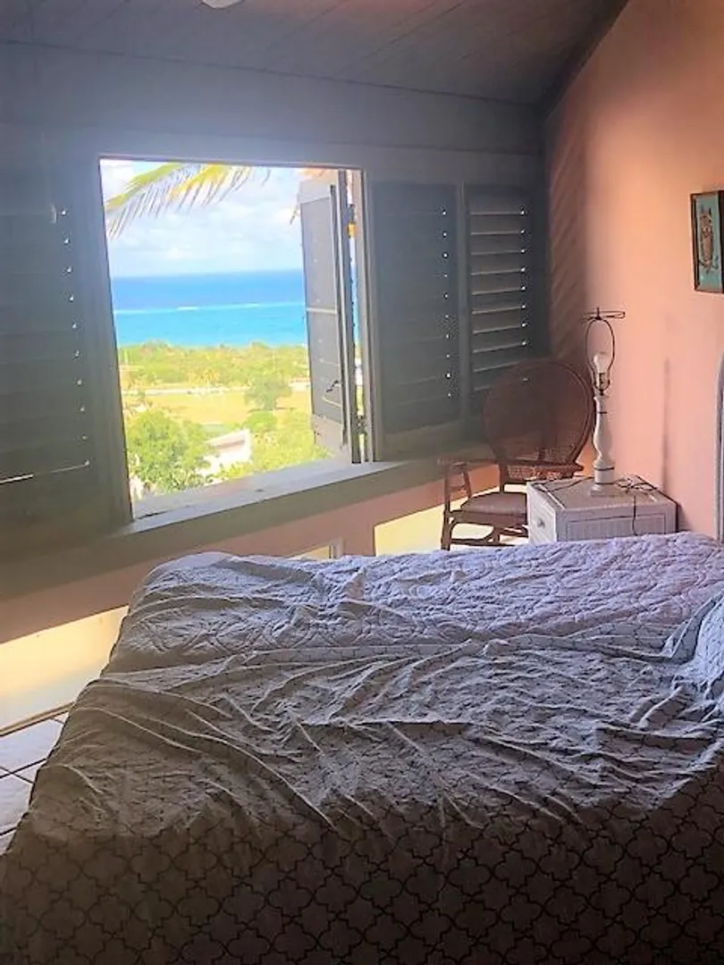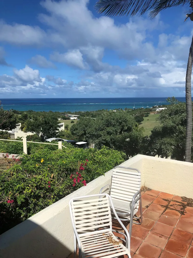 Perfectly situated upper-level two bed/two bath unit features unobstructed views of Teague Bay from Buck Island to the Yacht Club, proximity to the community pool, a spacious square patio, and a consistent breeze - the bugs won't bother you here. Uniquely equipped with a private atrium shaded by a mature grapetree for those days where you want a little shade. Original features like charming terra-cotta floors in the living space and wood-framed windows evoke a rustic island feel, true to the early days of The Reef. Very well spaced to neighboring villas ensuring fantastic privacy for the complex. Quick walk or drive to the Reef Beach, Duggan's Reef restaurant or the on-premise 9-hole golf course and tennis courts. What else could you ask for?This unit has been owned by a single family for the last 37 years and is now available as the ideal canvas on which to create your own dream home or sought-after rental property. Priced to sell, make this unit yours before the ground thaws stateside.