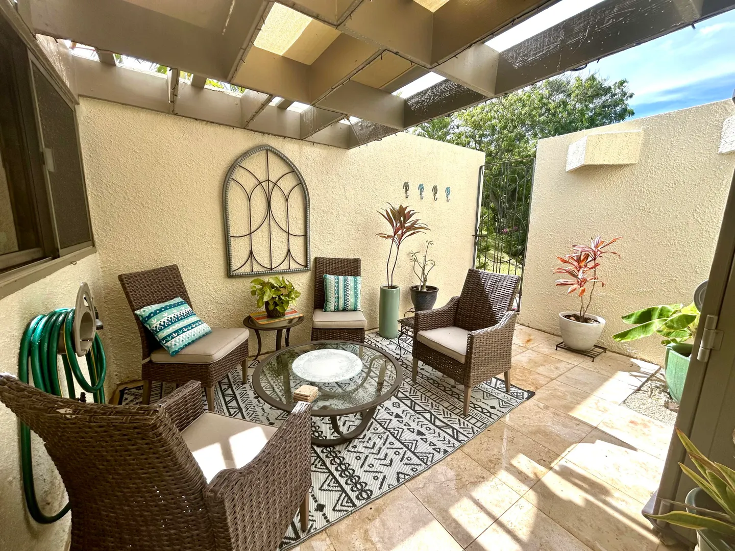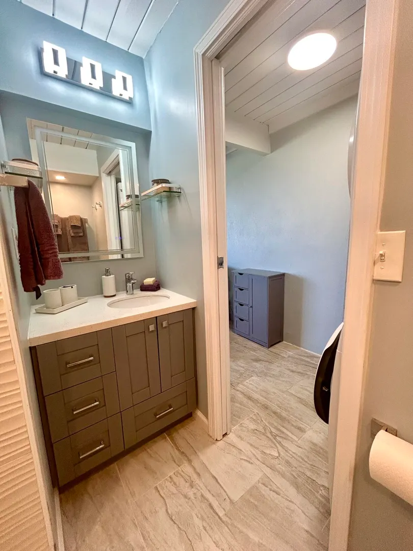 Welcome to your dream home! This stunning stand alone two-bedroom condo has been meticulously updated from floor to ceiling, offering you a modern and luxurious living experience. Every detail has been carefully considered, ensuring the highest quality finishes and top of the line amenities. The open concept living space is flooded with natural light, offering a warm inviting atmosphere. High ceilings and sleek tile floors add a touch of elegance to the interior, creating an ideal setting for relaxation or entertaining guests. The gourmet kitchen is equipped with top of the line appliances, custom cabinetry, and a large island. The bedrooms are situated on their own level, providing a sense of privacy and separation, and they feature beautifully renovated ensuite bathrooms and largewindows with scenic views. The condo boasts an array of home enhancement features designed to elevate comfort and value. Embrace sustainable living with the installation of solar panels that adorn the rear patio cover. These environmentally friendly features not only help decrease your energy costs but also contribute to a significant reduction in your carbon footprint. Newly installed storm doors, provide enhanced protection against the elements while also improving energy efficiency. A modern gas stove not only elevates your cooking experience but also contributes to a greener planet and reduced electricity bills. Step outside to discover a beautifully landscaped yard that enhances the charm of the home. The welcoming outdoor areas feature not just one, but two patios, perfect for hosting gatherings or enjoying quiet evenings. With lush greenery and vibrant flowers, these serene spaces offer breathtaking views, creating peaceful retreats right at your doorstep.The Reef Condominium Community is a lively and inviting neighborhood that perfectly balances relaxation and recreation. Residents can take advantage of the many community amenities, including a 9-hole golf course, a driving range, disc golf, and pickleball and tennis courts. The community also features a hilltop pool with stunning views, a cafe and convenient beach access just across the street. This magnificent condo at The Reef is more than just a home, it's a lifestyle. Experience the perfect blend of luxury, sustainability and island living!