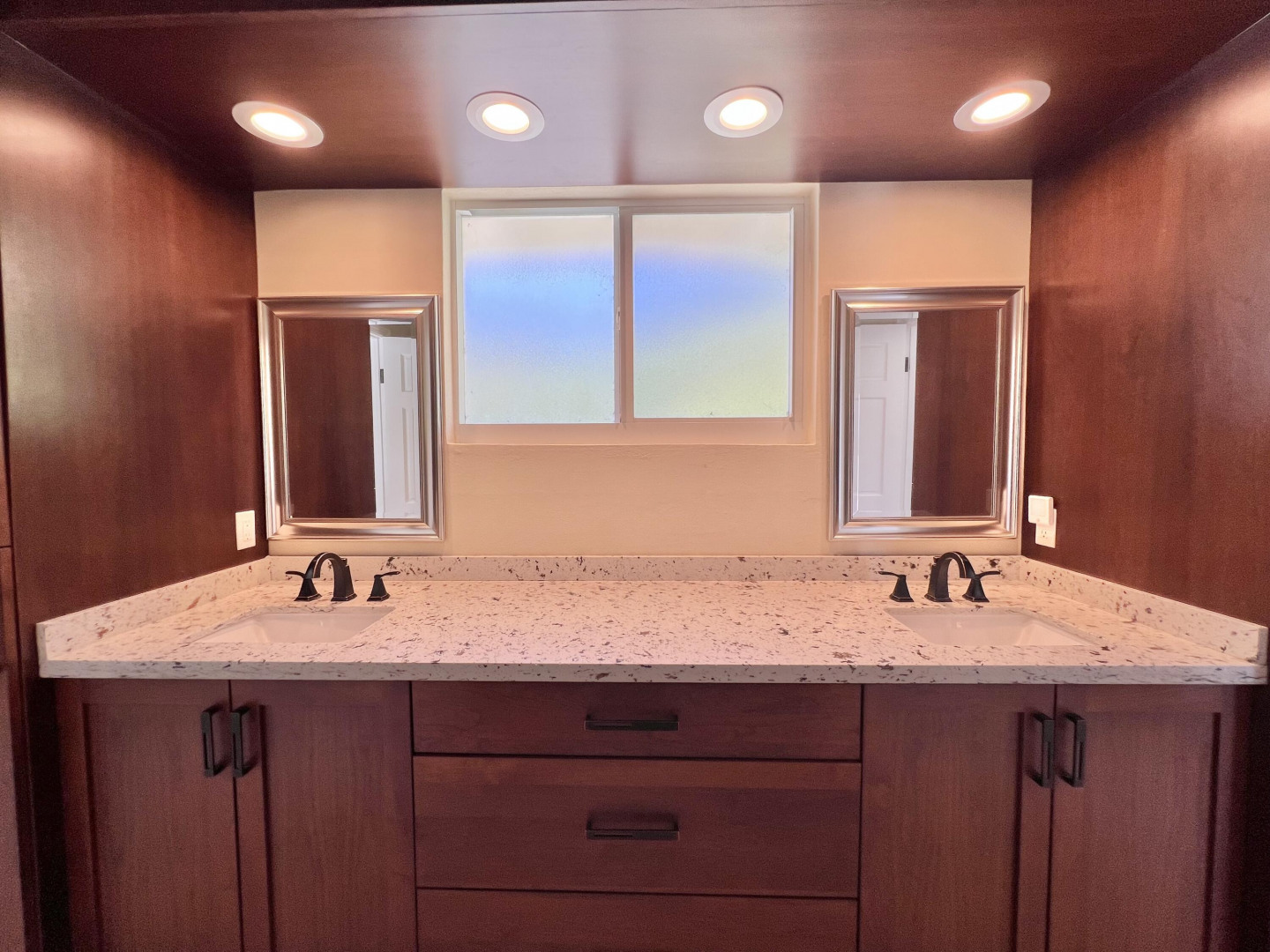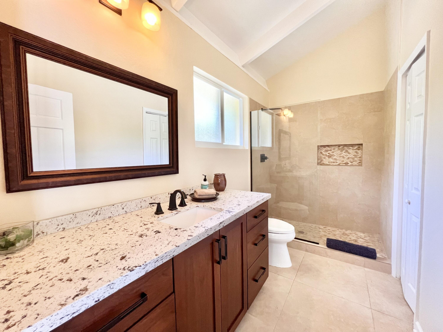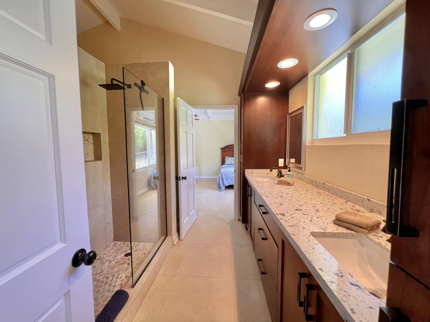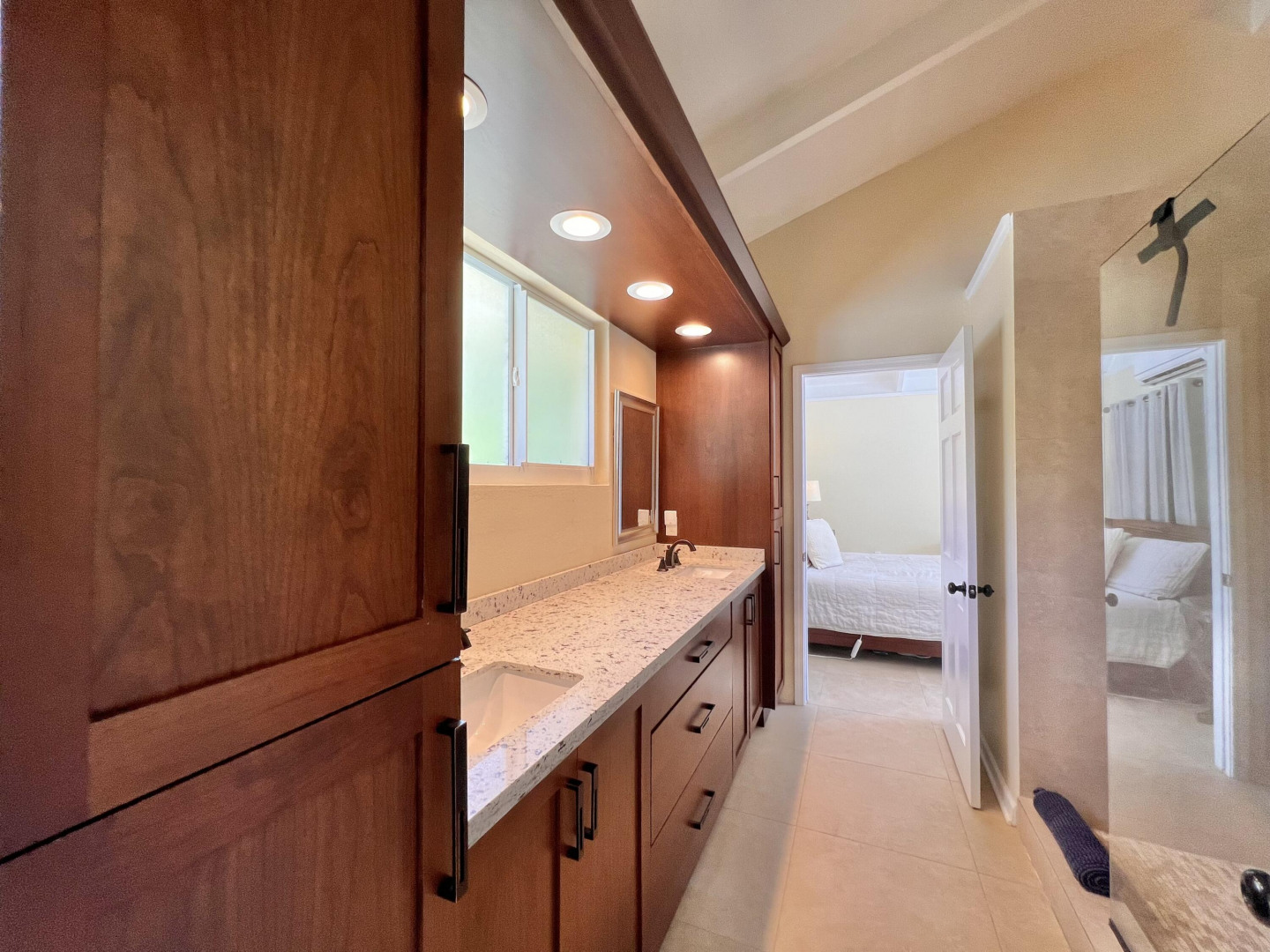 Discover the ultimate Caribbean retreat at Coral Reef Villa, a stunning three-bedroom, two and a half-bath home with SOLAR net-metering, a pool and a one-bedroom recently renovated apartment. Located on the east end with straight-on Buck Island views and a refreshing salt-water swimming pool, this move-in ready villa embodies the very essence of Caribbean living, complete with high-quality finishes and expert craftsmanship throughout. The V-shaped design seamlessly connects indoor and outdoor living spaces, immersing you in spectacular views from every angle. All bedrooms are situated under one roof, framing the living room and newly poured concrete pool deck. Step into the beautiful kitchen complete with Italia granite countertops, stainless steel appliances, and custom cabinetry.