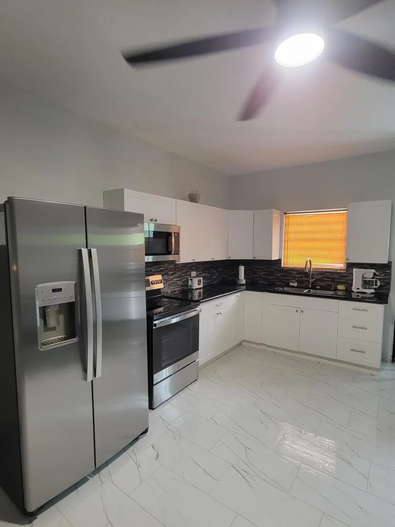 Welcome home to this gorgeous, fully furnished 3-bedroom, 2-bath apartment which offers the perfect blend of comfort and luxury, Simply bring your clothes and settle in. Updated with modern touches, this nearly brand-new unit features a stylish kitchen, beautifully renovated bathrooms, new air conditioning units, windows, flooring, furnishings, and appliances. The apartment is equipped with an electric gate for added convenience and security. Enjoy easy access to a nearby beach, restaurants, grocery store, medical offices, and public transit, making this an ideal location for both relaxation and everyday convenience. Lawn care is included. Tenants are responsible for utilities.