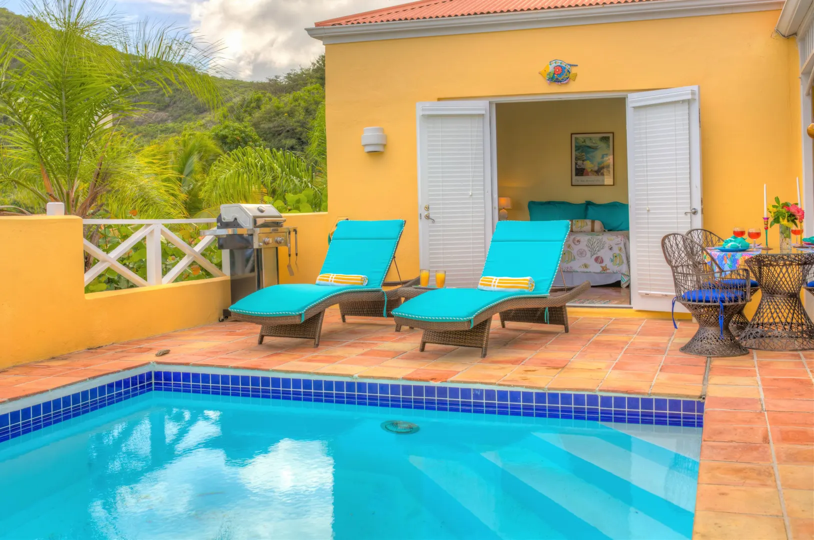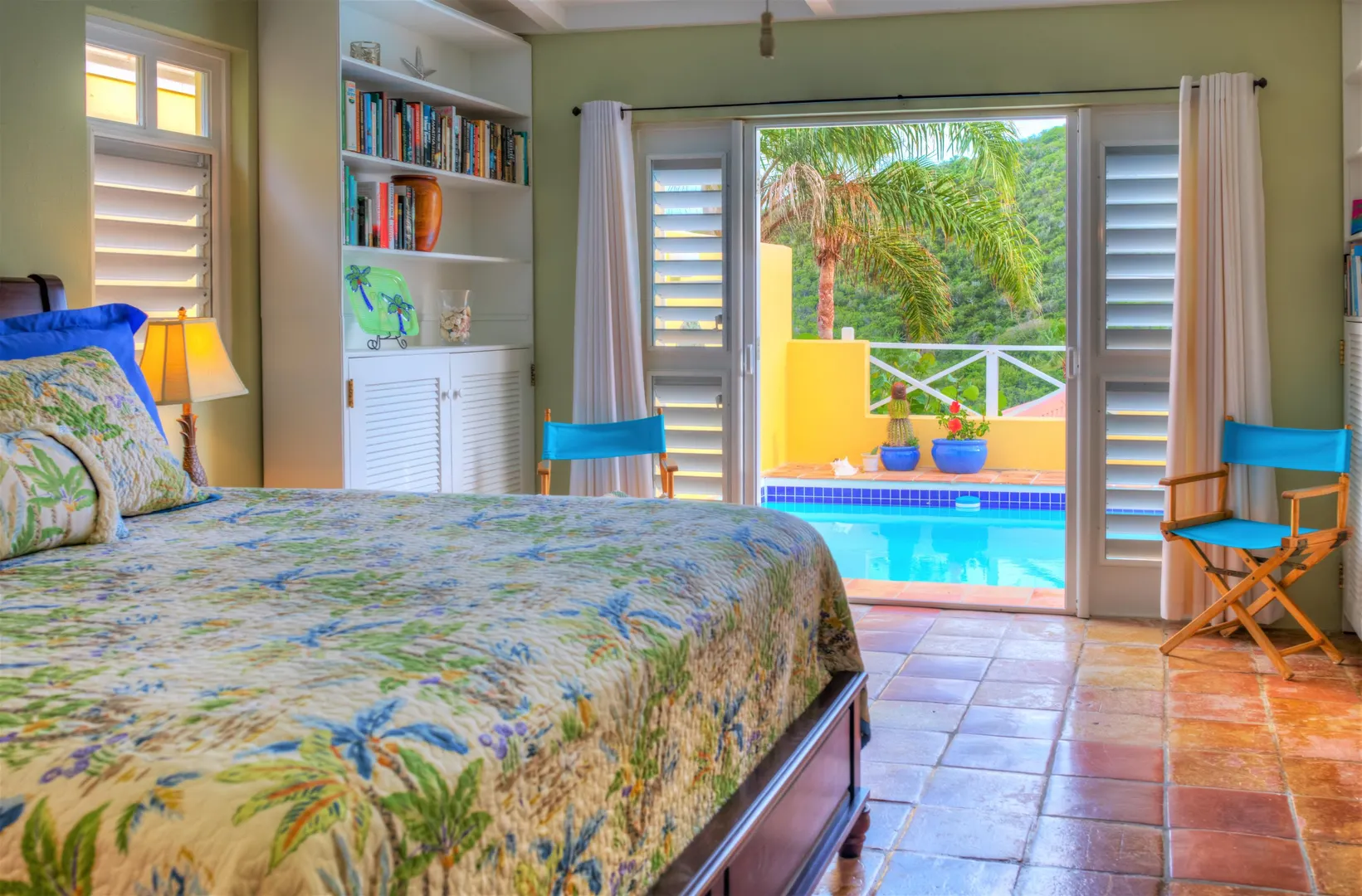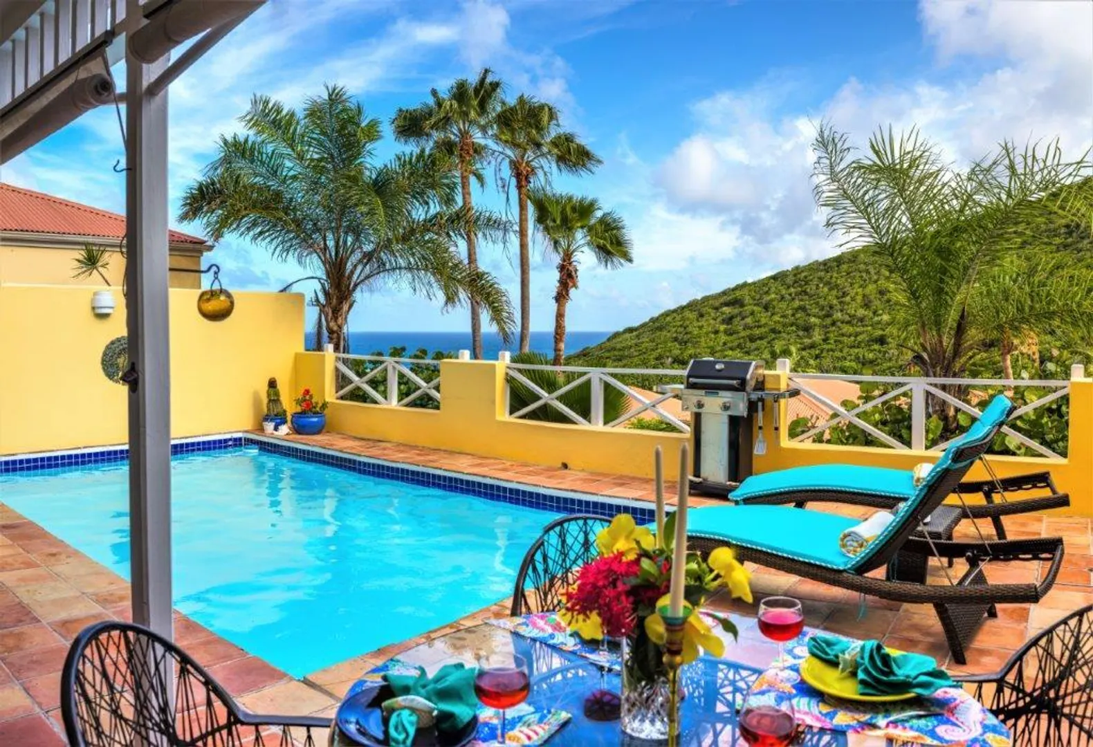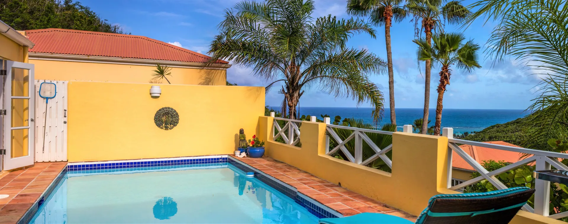 ''Villa Tropical Daze'' Located hillside w/ 2BR/2BA's, lovely pool & large sunning & dining deck! This property has expansive southern views over the Caribbean Sea. Within walking distance to fabulous white sand beaches & a nine-hole golf course. Beautifully decorated w/ amazing breezes, this villa has a lovely private pool w/ a spacious private gallery for relaxing or entertaining. Gated entrance and on-site management make for a safe, secure and easy lifestyle.*Condo fees include full insurance coverage inc windstorm, weekly pool maintenance including chemicals and repair including replacing pool and water pumps, newly installed fiber optic cable, phone & Internet service, cistern maintenance (not including water), grounds keeping, monthly pest service, trash removal, night security.