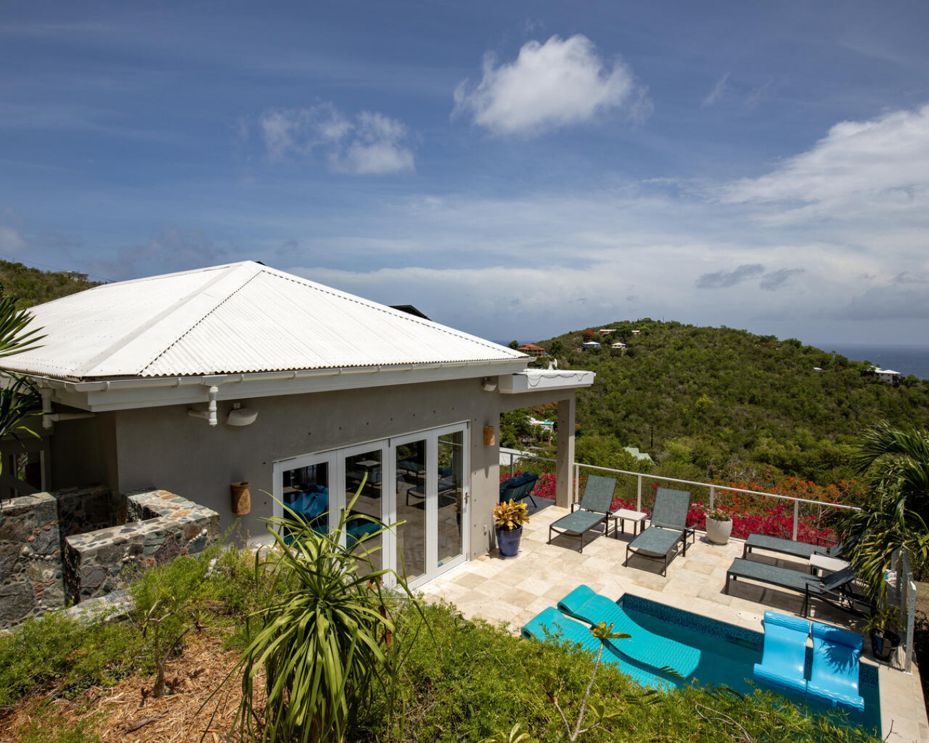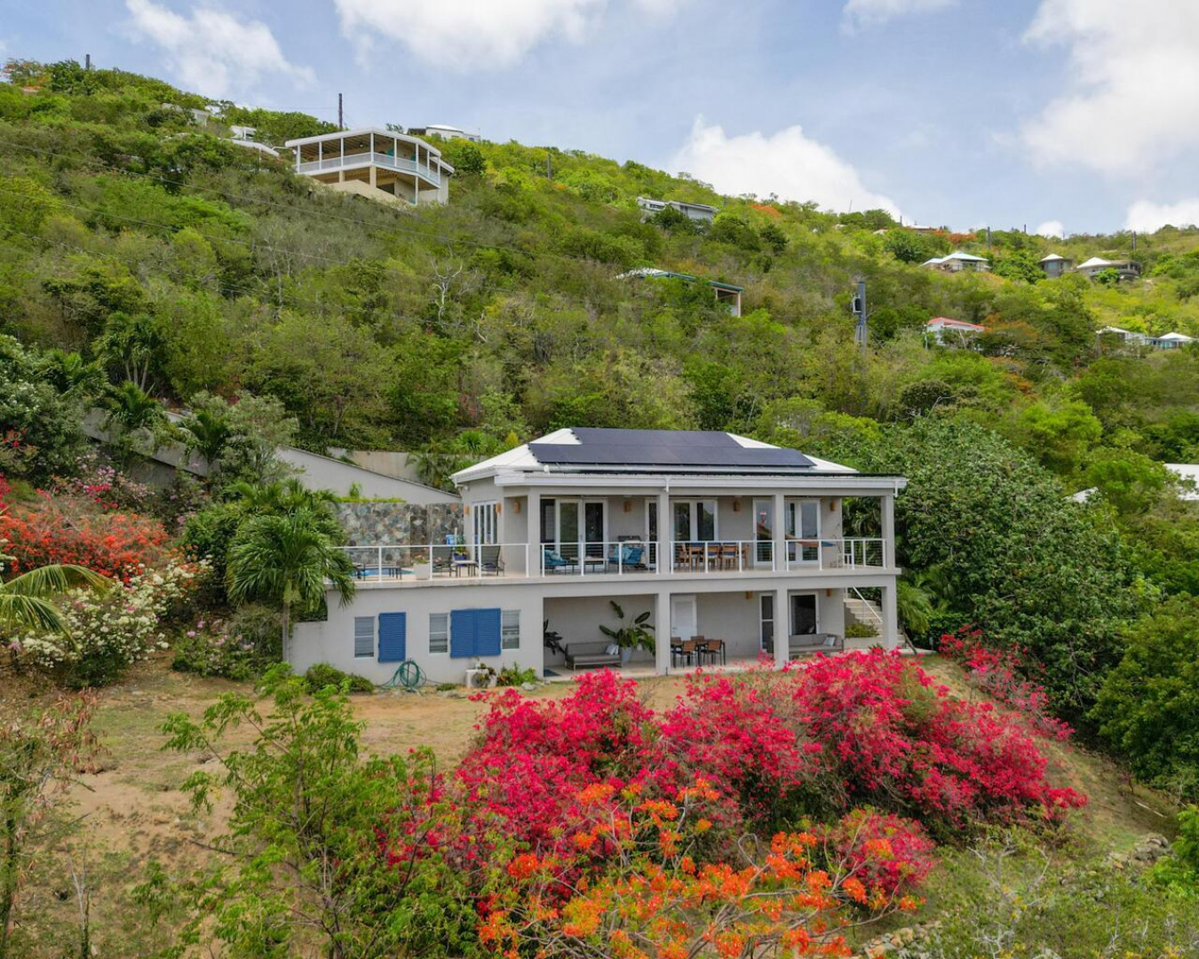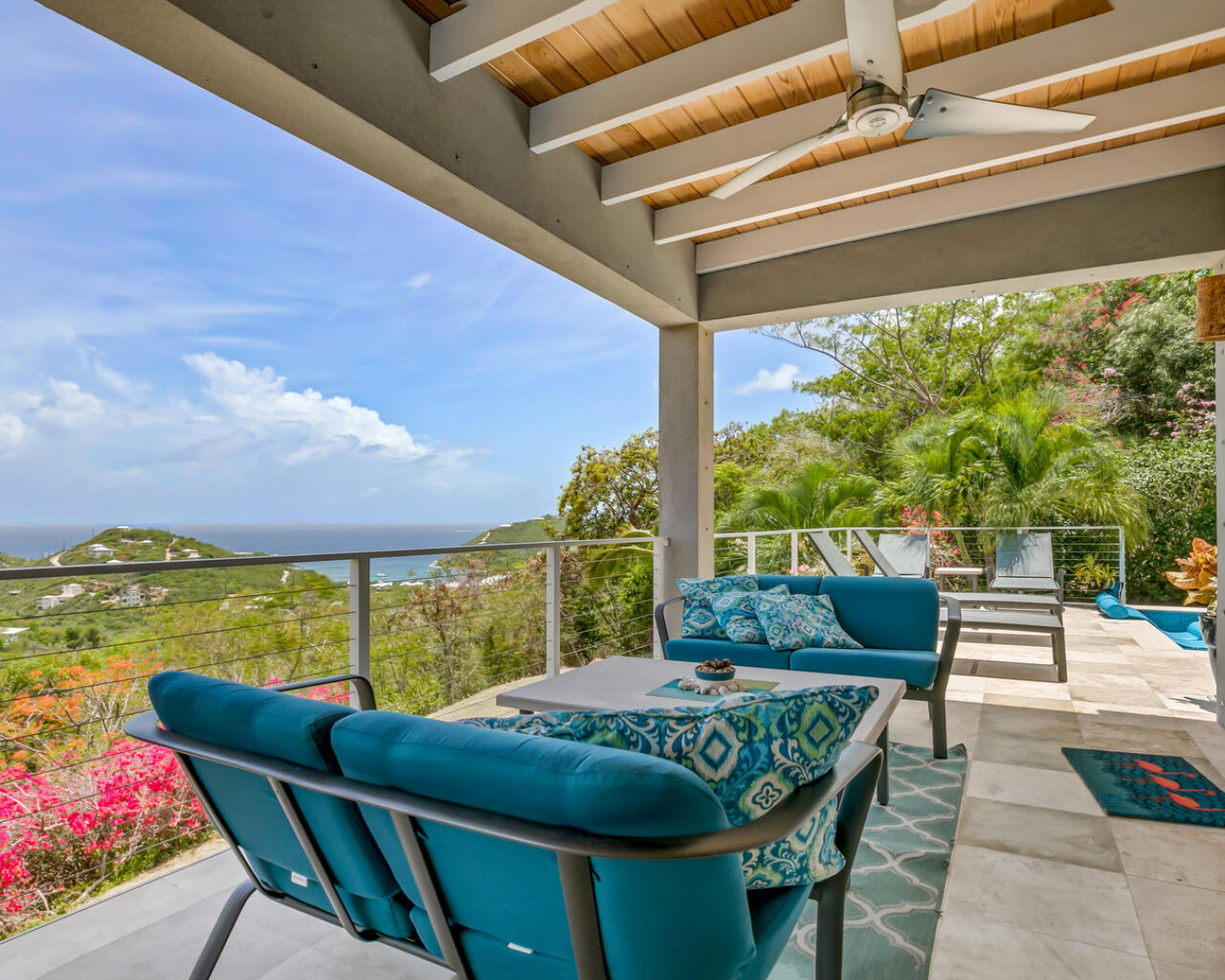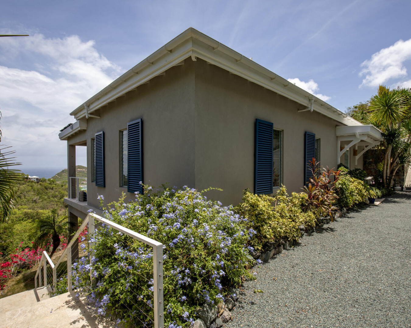 Layin' Lowe is a very popular Contemporary styled rental villa sited on a beautifully landscaped grassy knoll in Chocolate Hole North. this villa's sleek design features multi-folding doors to provide a seamless flow from indoor to outdoor living. The open layout ensures that from each air conditioned room, you can enjoy beautiful views of the Caribbean Sea. Featuring high end finishes of Travertine tile floors, Caeserstone quartz countertops and custom mahogany cabinetry. A bonus is a Solar system with battery backup ensuring no power interruptions and zero to low power bills. Additional items include; laundry facilities on both levels, UV water filtration, cistern level monitoring, impact glass doors and custom designed hurricane shutter/screening system.