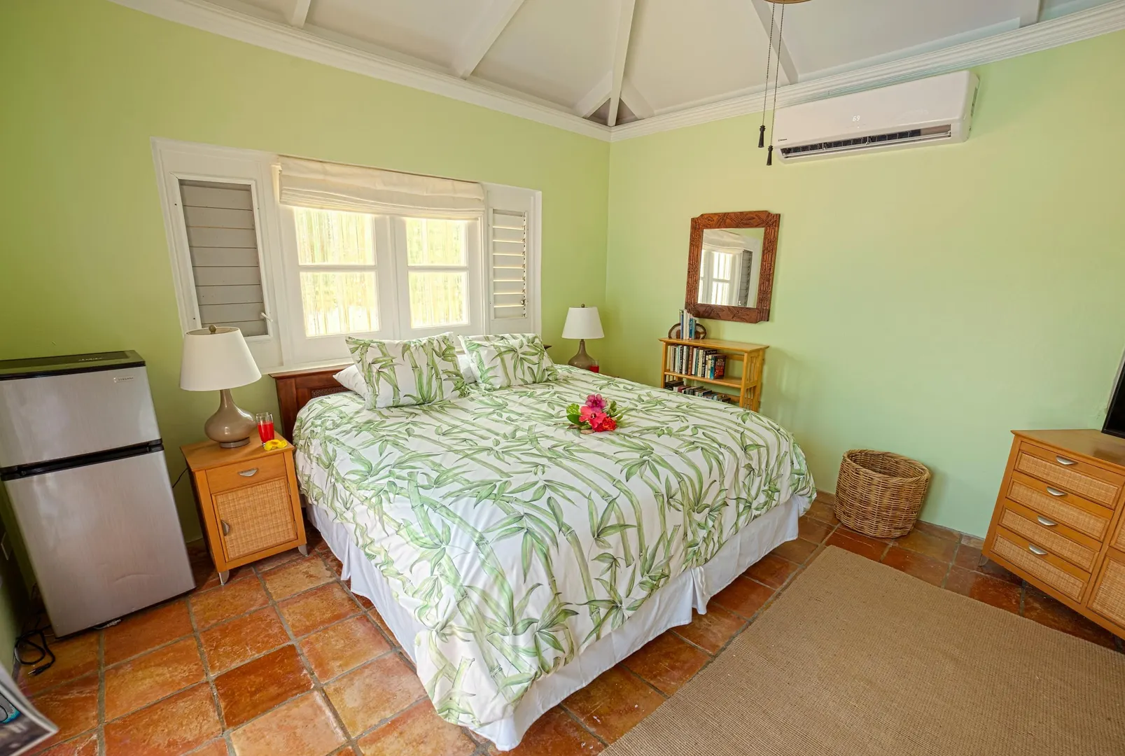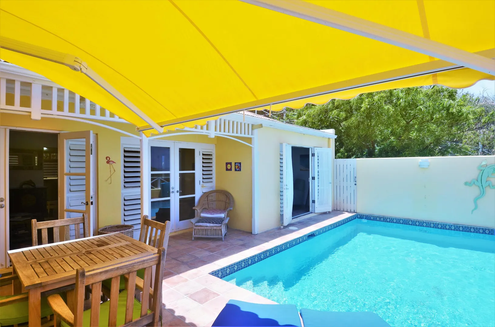 'BAMBOO VILLA' One of the finest villas in the Villa Madeleine community; newly renovated granite kitchen w/ maple cabinetry & SS appliances, new cabinetry in master bath, custom retractable awning on gallery w/ expansive southern views over the Caribbean Sea. Within walking distance to fabulous white sand beaches and a nine-hole golf course. Beautifully decorated with amazing breezes, this villa has a lovely private pool with a solar powered pool pump and a spacious outdoor private gallery for relaxing or entertaining. Located on the end of a pergola walkway,offering maximum privacy and easy one level access including a bonus egg-rock front yard plus a spacious backyard area! Gated entrance and on-site management make for a safe, secure and easy lifestyle.