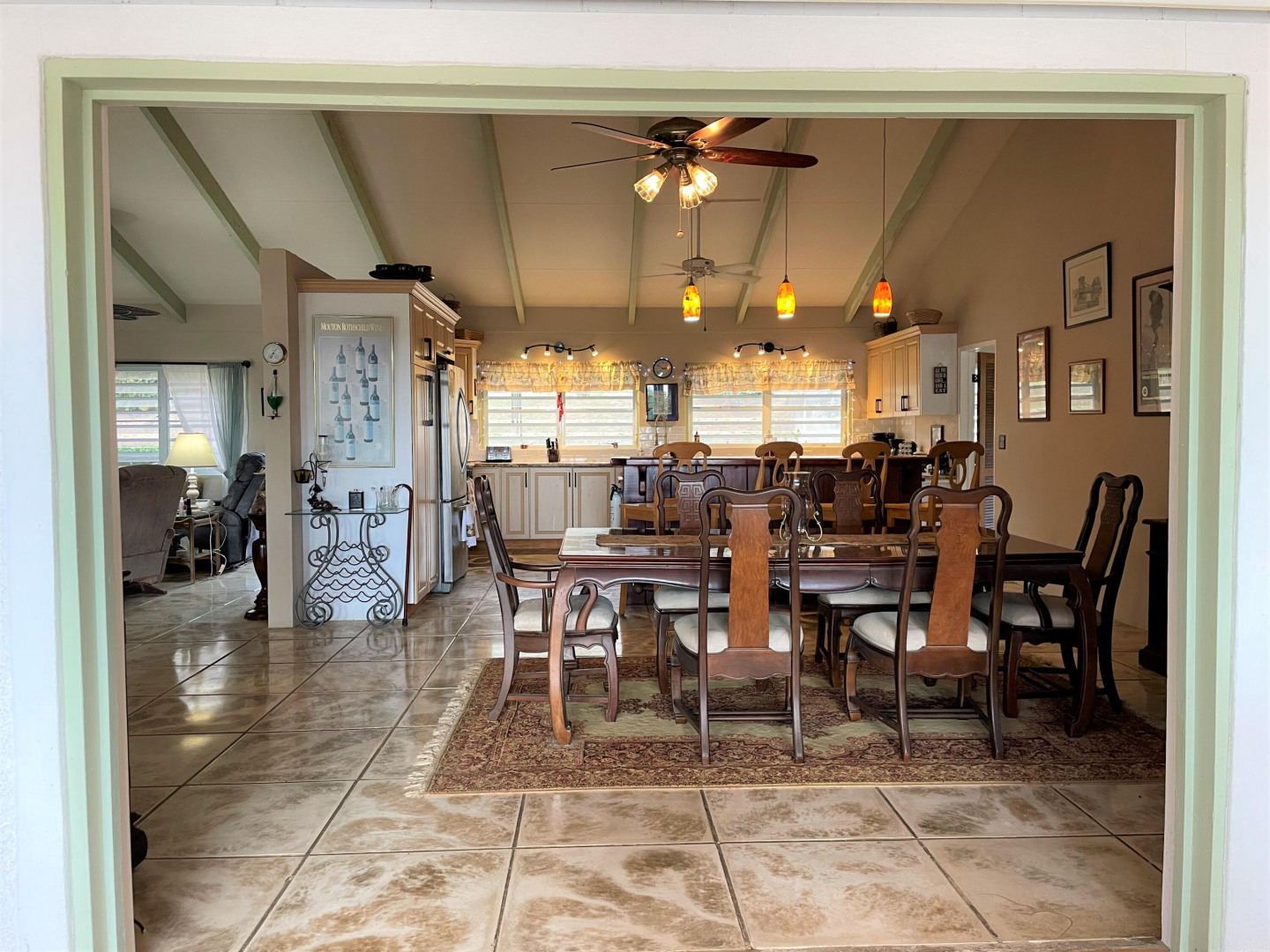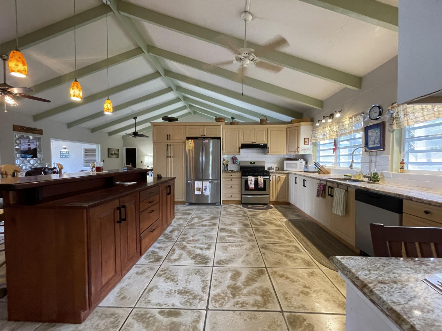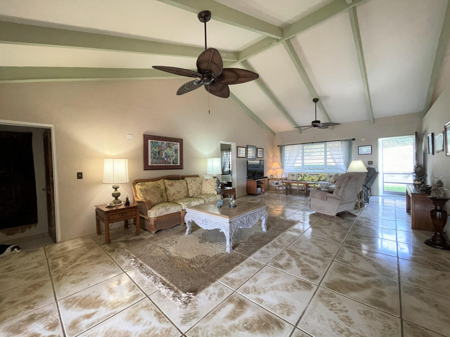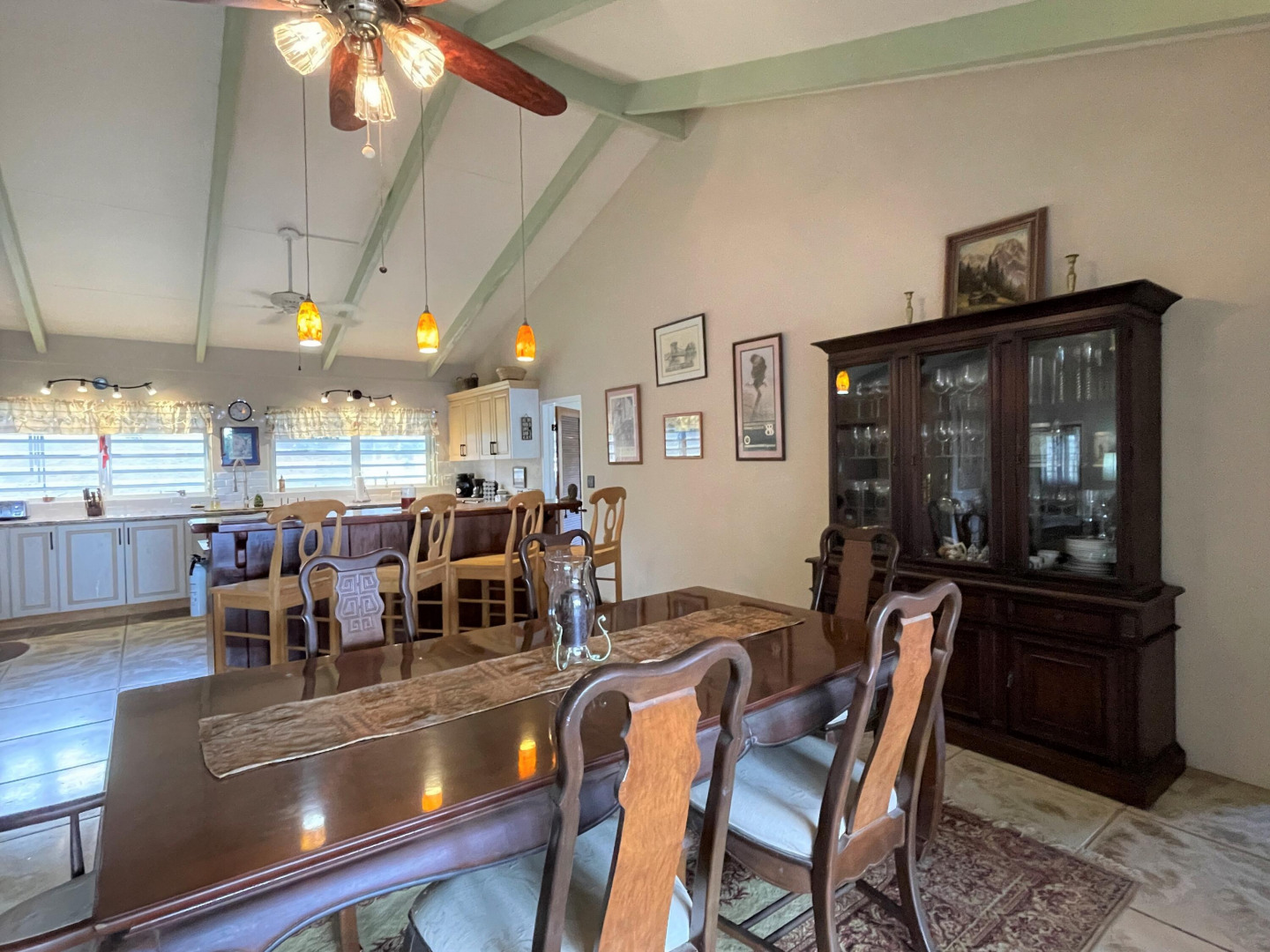 Large open living spaces make this lovely home comfortable and inviting. Located in the Prosperity neighborhood across the road from Rainbow Beach, the nice, fenced yard, pool and sea view offer lots of options for those who love the water and enjoy the beautiful West End beaches. Inside, the large veranda has been screened and secured to be fully appreciated as living space. Vaulted ceilings and fans throughout complement the cool sea breezes. Four bedrooms offer flexibility. Plenty space for a large family, or enjoy the sea view from the large master bedroom and convert extra bedrooms into office, studio or play space. Tool shed, solar hot water, security bars in windows, two cisterns, fruit trees, and a large whole house generator add to the comfort and security of this beautiful home.