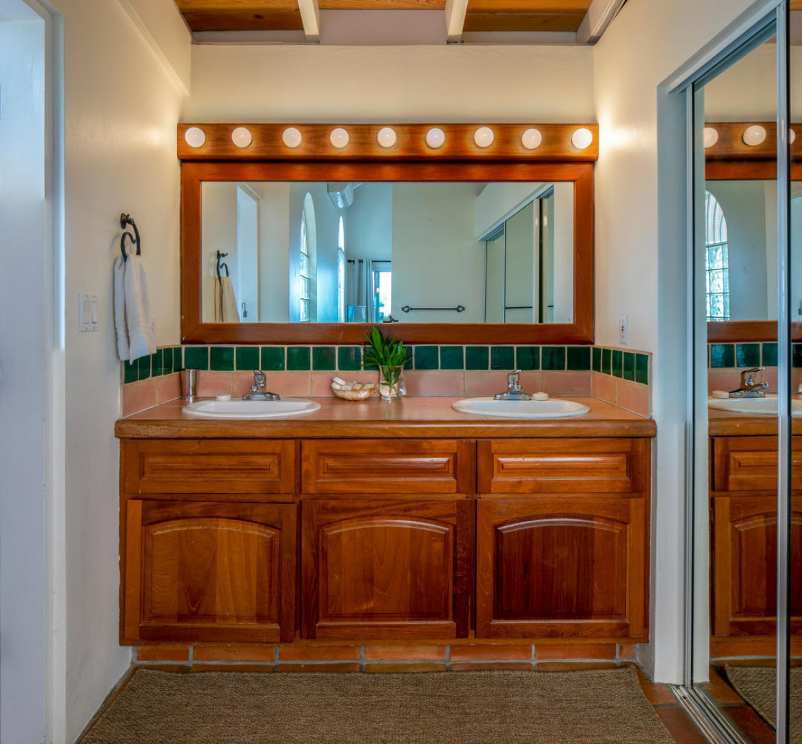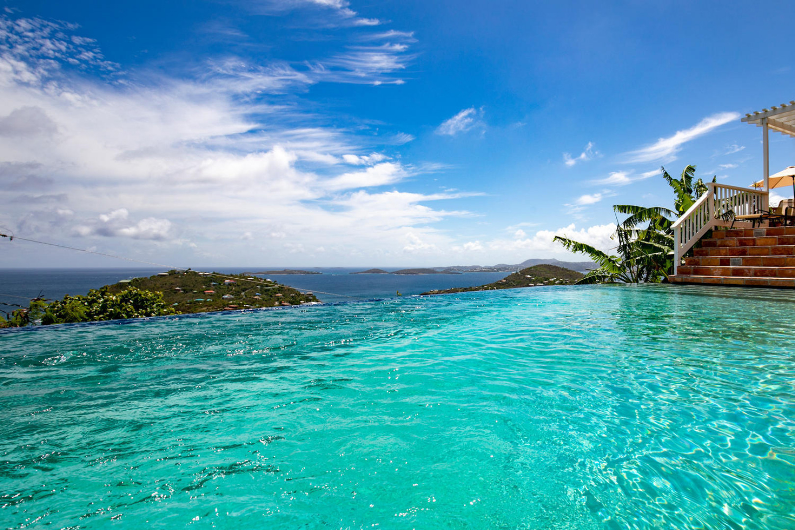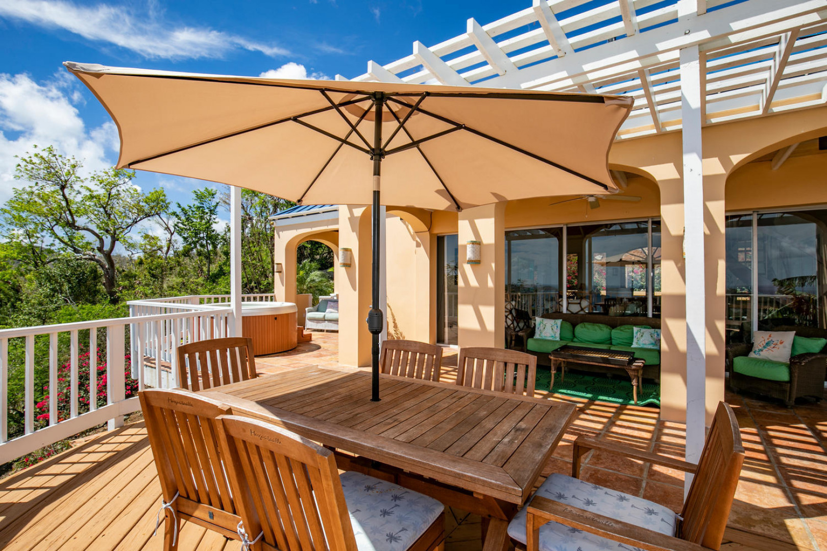 The very name of this home, Villa Ambiance makes a statement. This very successful short term rental villa located minutes drive from town and north shore beaches. Beautifully decorated throughout, the home features a state of the art kitchen, spacious living and dining areas, four large and fully air conditioned master suites plus a loft bedroom. Spacious open and covered decks link the indoors with the out. A large infinity edge pool and private hot tub face the magnificent view panorama.