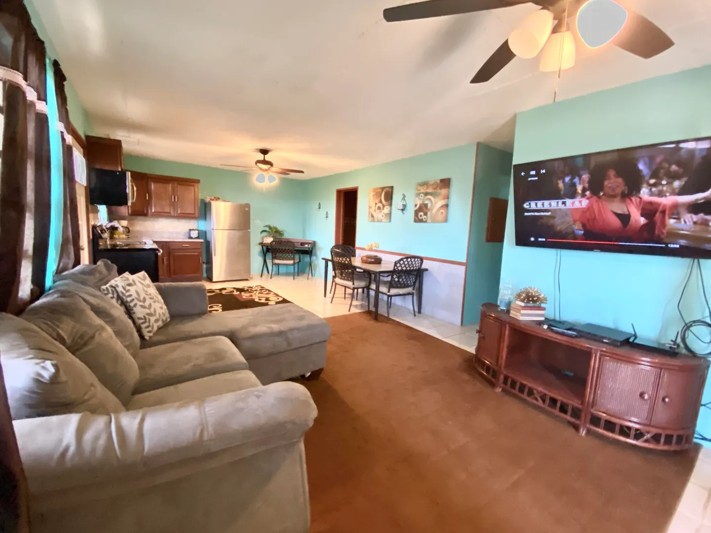 Two bedroom/two bathroom downstairs updated apartment located in a quiet neighborhood and centrally located mid island. Covered porch with beautiful view of the south shore.WIFI included. Tenant to pay WAPA.