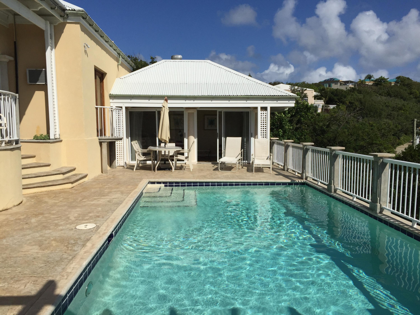 Villa Divertimento is a beautiful custom built home facing east into Chocolate Hole Harbor. This successful short term rental is an all masonry & stone villa offers on one level, two AC bedrooms w) ensuite bathrooms w) outdoor stone showers. A great room, dining room, kitchen, laundry and half bath. There is a sleeping loft in the great room which offers two additional twin beds for guest overflow. Pool cabana room located off the 30 foot swimming pool which offers an additional sitting area & potential easy 3rd bedroom / bath conversion. Custom mahogany windows and doors, poured concrete counter tops are just some of this villa's features. The insulated roof has a solar net metering system on it to greatly reduce and zero out your electric bills. Buyer and seller to split the stamp taxDivertimento had no structural damage from either Hurricane Irma and Marie!!
