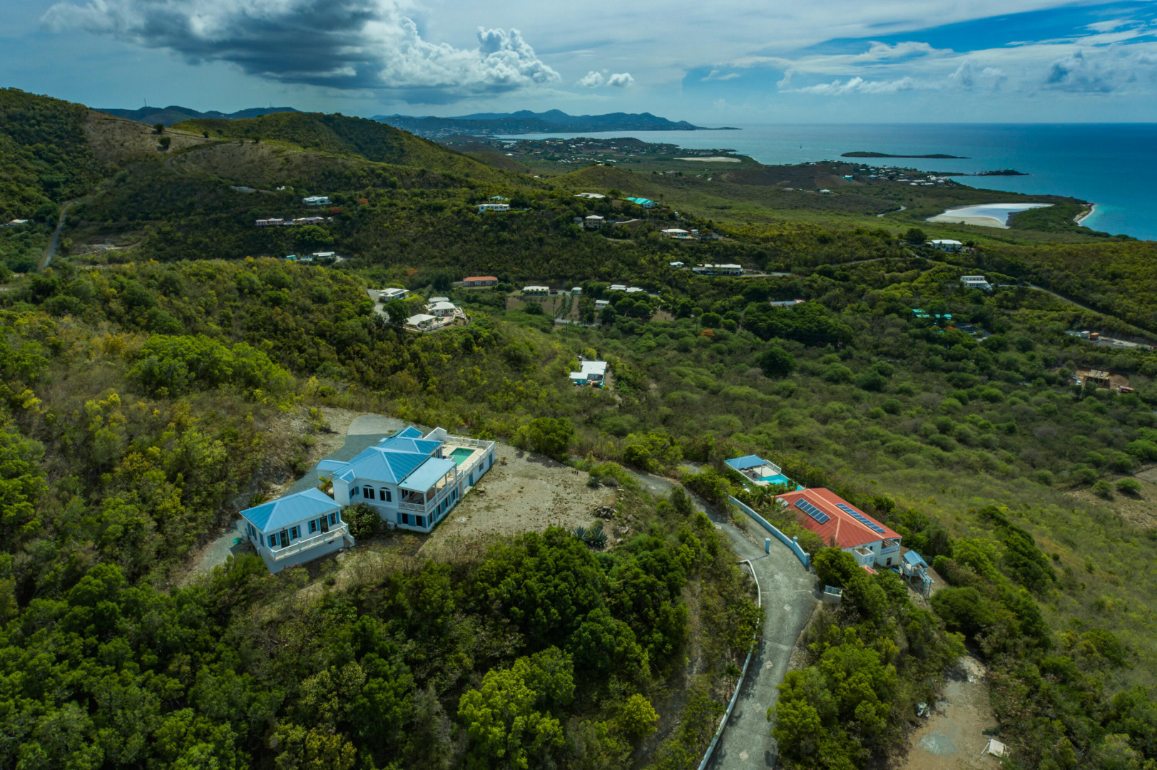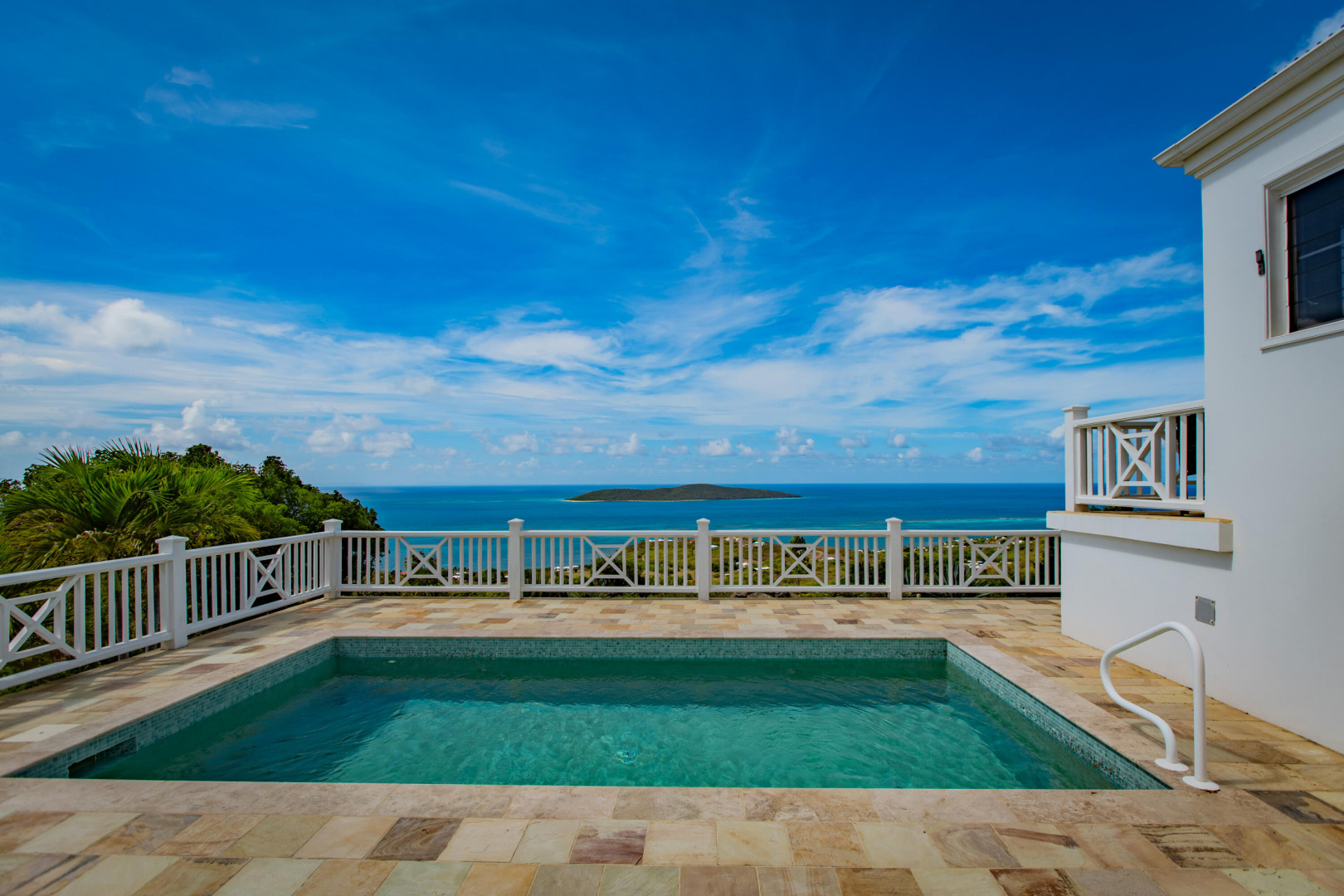 ''Tradewinds Villa'' a stunning 4-bedroom, 4.5 bath hilltop home on almost an acre with the biggest Buck Island views and breezes you've ever dreamed of! Large great room w/ living & dining areas, half-bath for guests, custom kitchen w/ Cherry wood soft-close cabinets and drawers, granite countertops, covered gallery w/ outdoor dining off, pool w/ outdoor shower, cathedral ceilings throughout, custom marble tile floors, main BR with private gallery overlooking pool & view, main bath features double water closets & dual entry shower! 2nd & 3rd bedroom suites located adjacent to main house, each w/ its own private galleries facing that amazing sea view. 4th guest suite located on lower level with a cozy sitting room and en-suite bath. Solar hot water & large storage room.