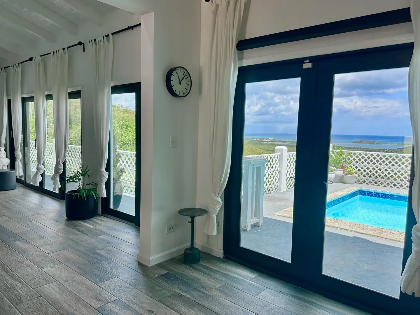 Enjoy STUNNING Caribbean sea views from this gorgeous East End rental. The property is located just ten minutes from Christiansted and five minutes from Green Cay marina, beaches and restaurants. Two of the bedrooms are located downstairs and the primary bedroom is upstairs for added privacy. The house has solar and a new 12KW Generator with automatic transfer switch. The property has been recently updated with a freshly painted interior and exterior, updated kitchen with Stainless Steel appliances, updated bathrooms, and hurricane impact windows/sliders throughout. The house has split AC unit in the bedrooms as well as the living room.