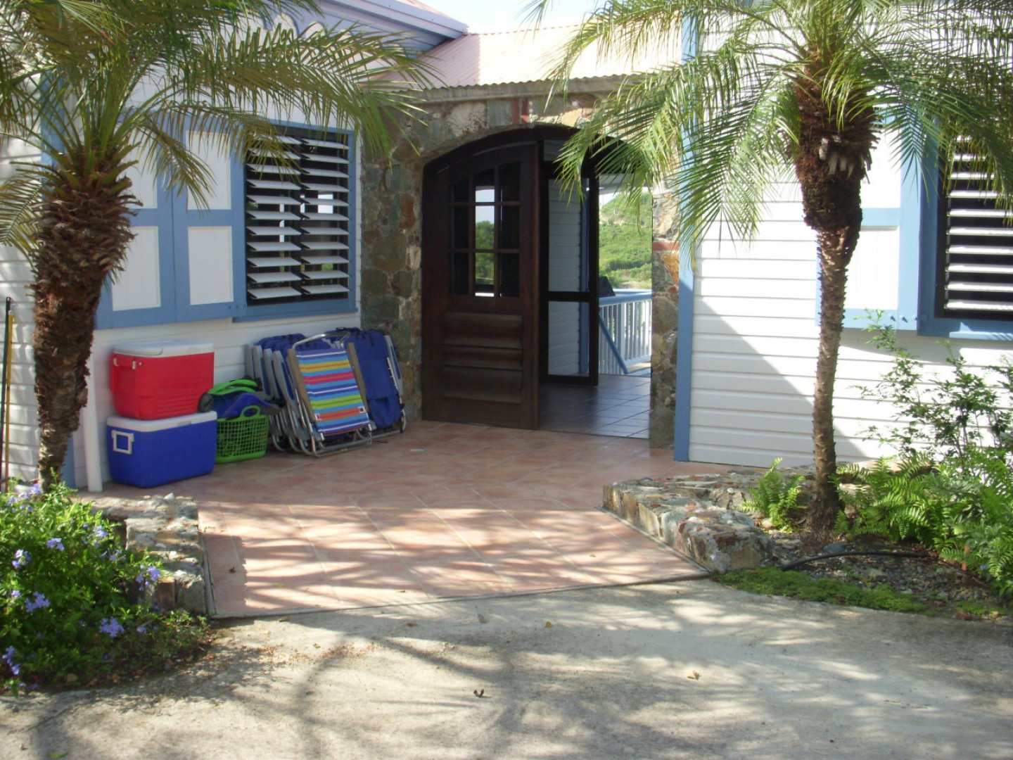 This charming 5 bedroom, Caribbean style home features a very private & sunny pool plus decks in a quiet, breezey location in Chocolate Hole convenient to Cruz Bay's shops and restaurants. Beautifully finished Brazilian hardwood home with native stonework arched entry, 2 island stone showers, classic mahogany floors, A/C in all bedrooms, and inside-outside tropical living in common areas. Deeded rights to 2 beaches (within walking distance) plus dinghy landing area in Chocolate Hole; Excellent value for turn key short term rental. Upper road with paved driveway as well as lower road parking and separate entry path. Buyer to split Transfer Tax equally with Seller. Buyer shall agree in writing to honor all future rentals committed to by Seller.Flexible floor plan would also lend itself well to becoming 2 dwelling units for 2 income sources with second kitchen area in a potential lower apartment.