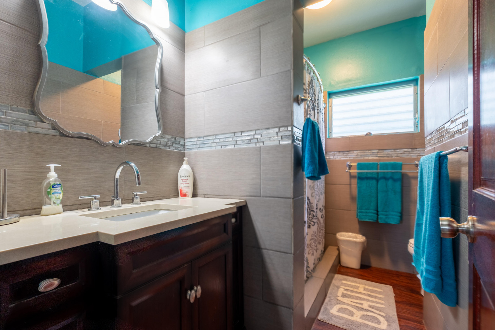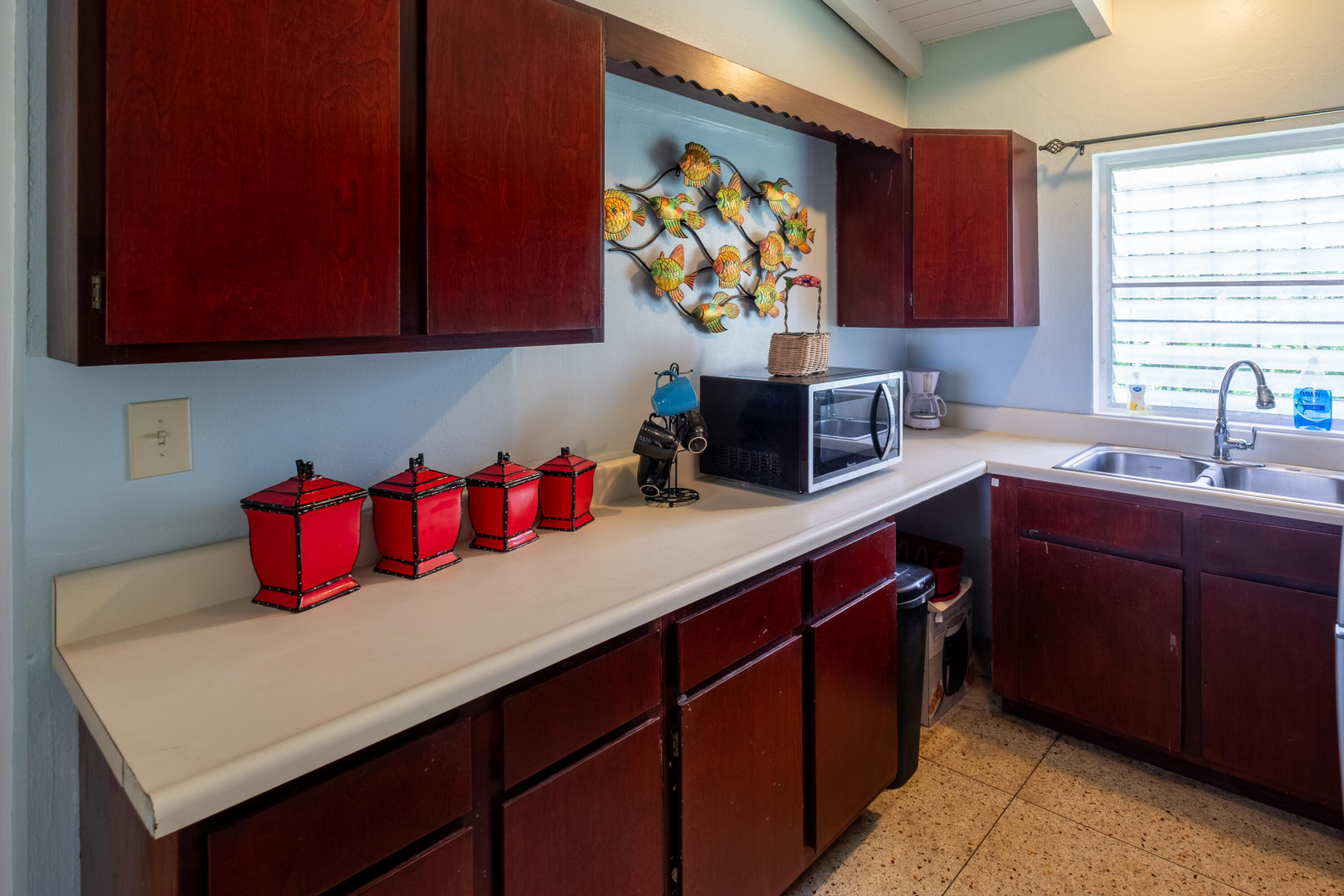 This stunning multi-unit home offers a unique blend of investment opportunity and island-living. Situated on a generous 1.2-acre lot and zoned R3, this property provides endless possibilities for business, expansion, or additional dwelling units.Upstairs Unit: Currently being used as a short term rental, the upper unit features 2 spacious bedrooms and 1 modern bathroom. Guests will love the private entrance and outdoor patio, ensuring a seamless and enjoyable stay. The updated kitchen features mahogany cabinetry and sleek finishes to complement the recently remodeled bathroom. Gorgeous terrazzo floors add a touch of elegance and ease of maintenance.Downstairs Unit: Owner-occupied, the lower unit mirrors the charm and sophistication of the upstairs.