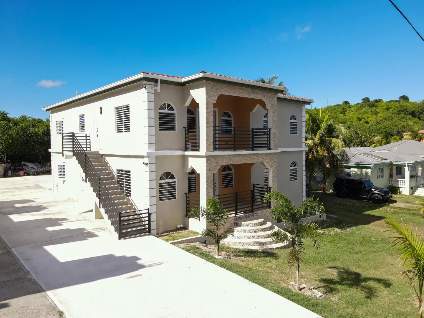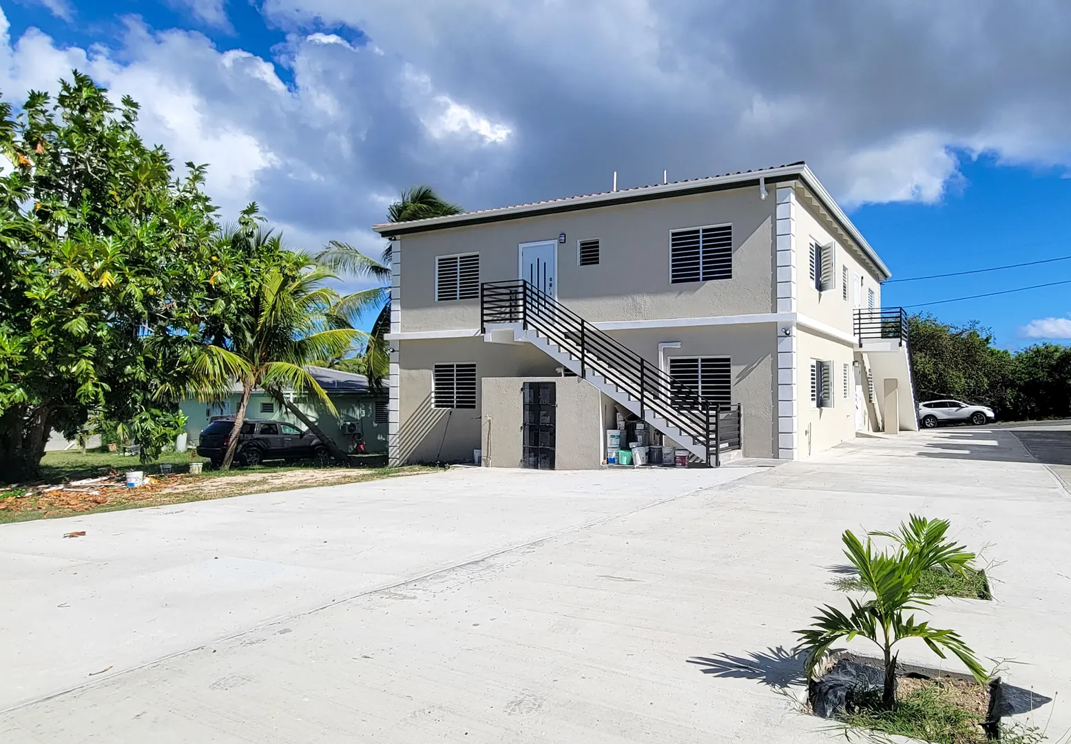 This BRAND NEW - never been lived in airy upstairs unit located in Barren Spot -3 bedrooms and 2 bathrooms. You will love the beautiful arches, decorative walls, cooling breezes. The kitchen is equipped with stainless steel appliances including a dishwasher. A tiled backsplash and granite counter tops with an island leads to the open concept living/dining area. Ceiling fans throughout the house (total of 6) and split AC's in bedrooms. There is plenty of storage and a laundry room. Property management done by builder/owner. Other details include curtain rods on each window; tile moulding on the floors, beautiful lighting, built in toiletry storage in showers; electric outlets in kitchen island. Concrete driveway and parking slab at the rear of the building.